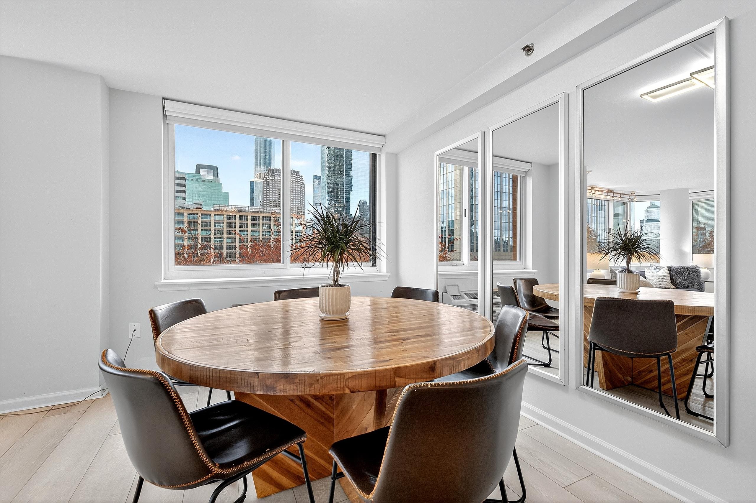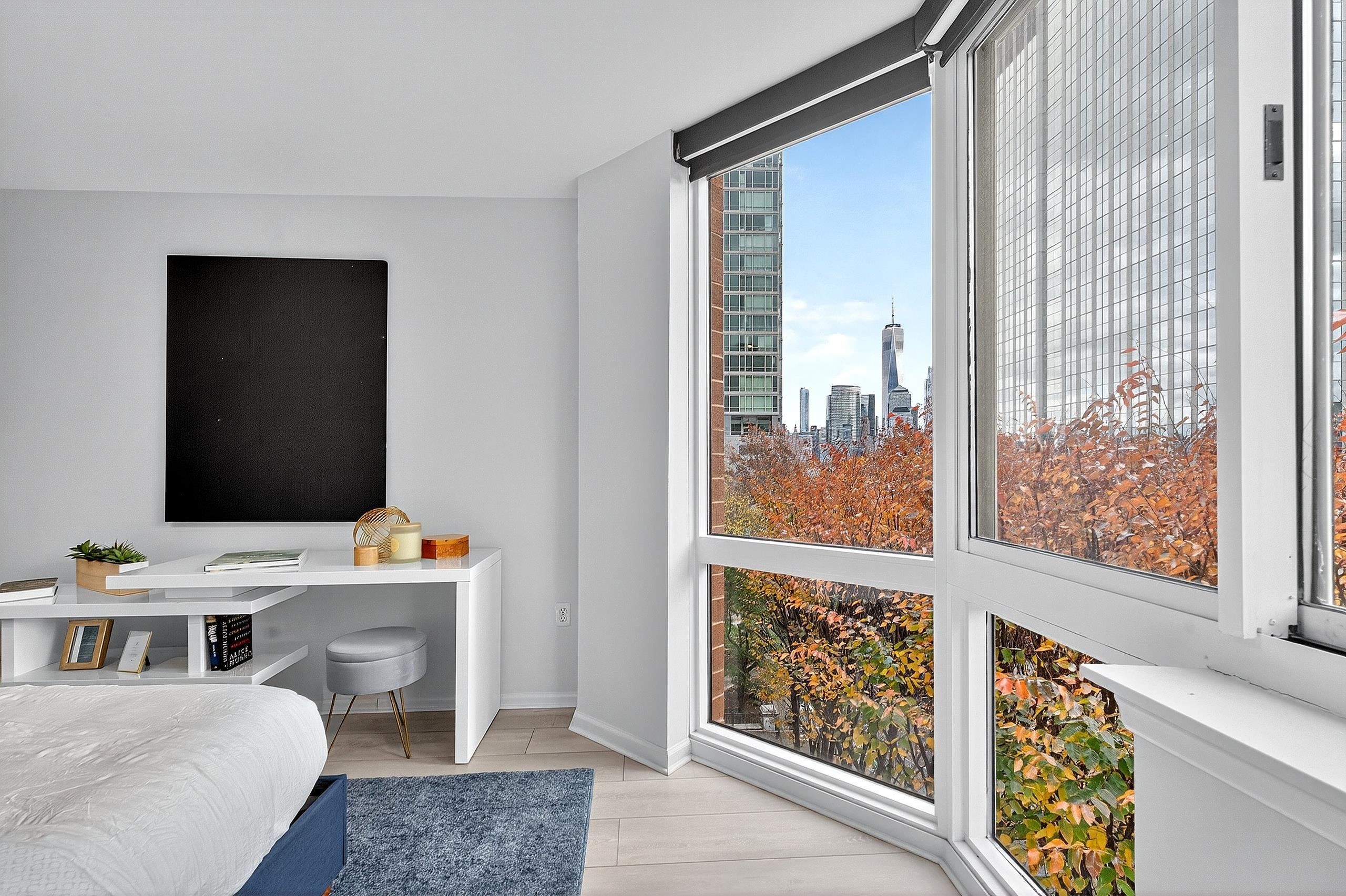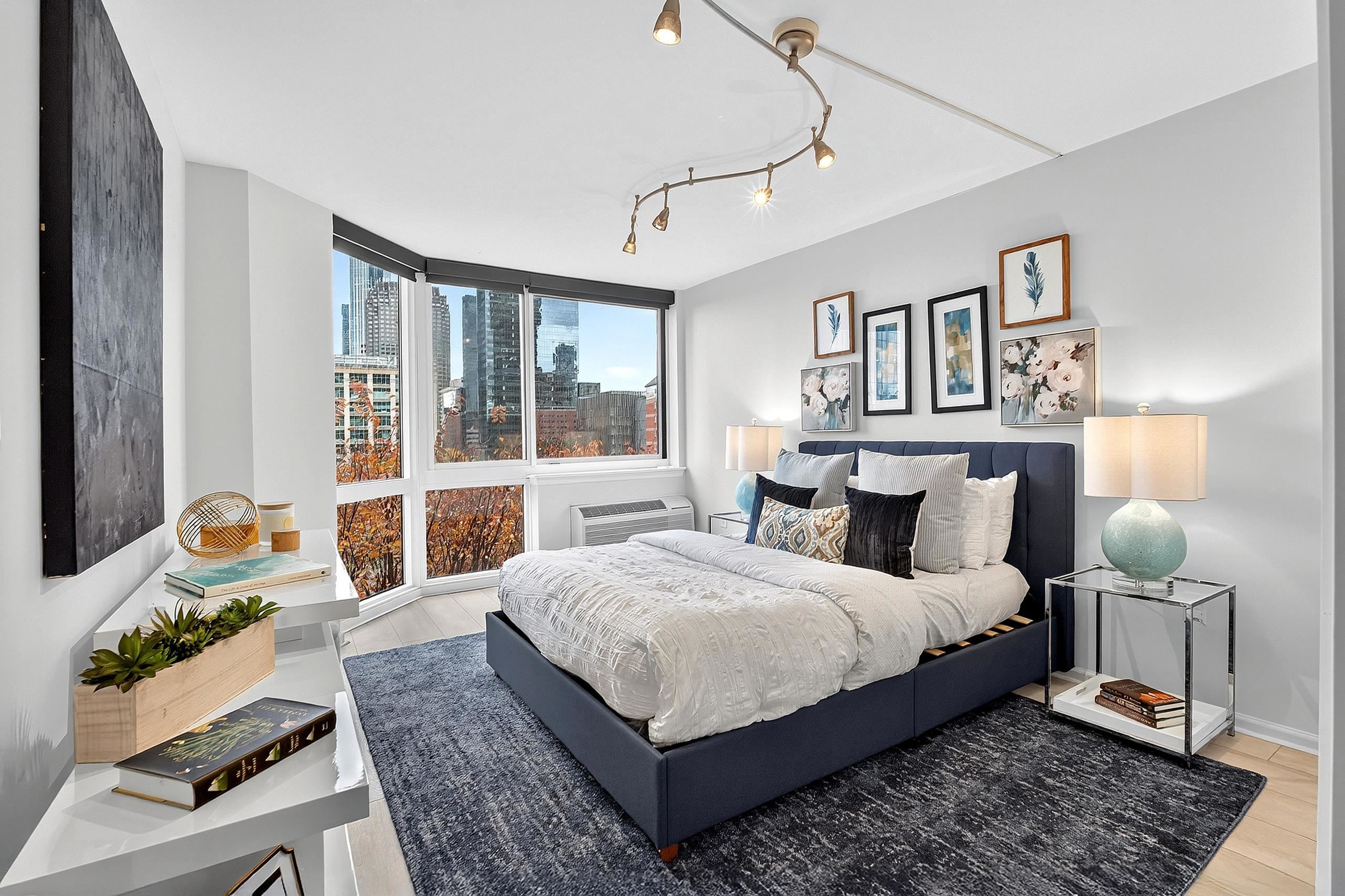 Sophisticated living on the waterfront with this renovated & expansive 3 bedroom, 2 bathroom condo in Mandalay on the Hudson, one of Jersey City’s premier waterfront buildings. The coveted 09 line, with its picturesque glass windows and prime south & east exposure, is flooded with sunlight all day long. This 1,456 sq. ft. luxurious home is well appointed will contemporary lighting, closet organizational systems, built in Murphy beds in one of the bedrooms & custom window treatments throughout the home. A key feature of the home is the open-concept kitchen with stainless appliances, a brand new Samsung Bespoke Refrigerator, quartz countertops, breakfast bar, contemporary finishes & water filtration system. The sleek and contemporary bathrooms embodies this home’s lavish aesthetic with large format porcelain tile, floating vanities, Glass shower enclosures and heated towel bar. A river-facing balcony, in-unit washer/dryer & deeded garage parking spot helps to complete a picture perfect home! Enjoy the resort-like amenities at The Mandalay, including fitness center, BBQ area, private park, children’s playground, and the largest outdoor pool in Jersey City. All of this and only minutes walk to the lightrail, Exchange Place & Newport PATH, and the Harborside ferry makes for a quick and easy commute to the city. Renderings are of new lobby under construction.