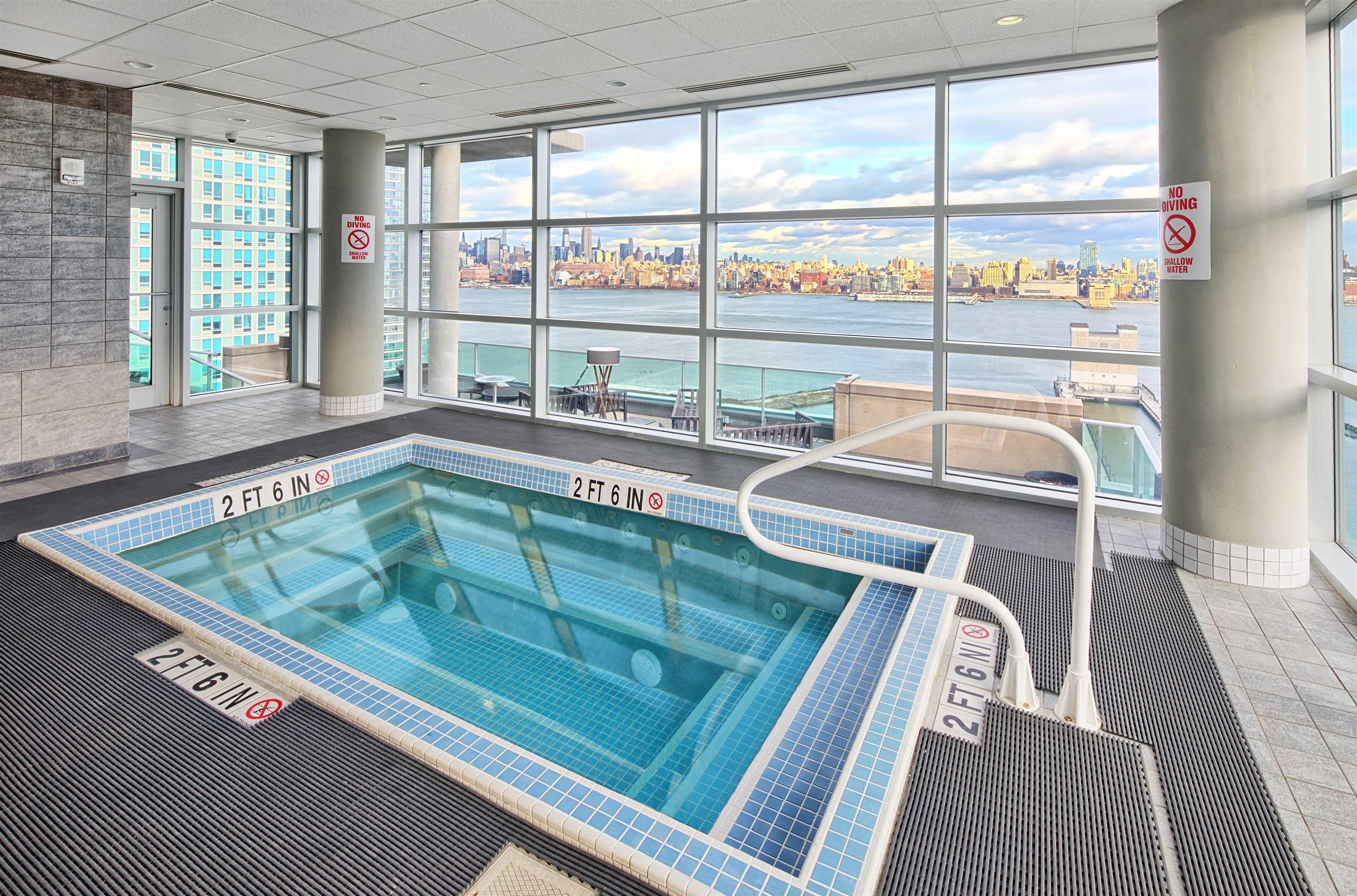 This lovely southwest-facing corner home flaunts gorgeous NYC views, a spacious private balcony and an abundance of natural light. This 2 beds 2 bath offers open floor plan living space, hardwood floors throughout. Kitchen features ss appliances, granite countertops, and custom oak cabinetry. 24/7 concierge, resident’s lounge, screening room, jacuzzi, sauna/steam room, fitness center, and roof deck with unobstructed direct NYC views. Close to Hoboken and Newport PATH train/lightrail. Morton-William’s supermarket on ground level and restaurants nearby. Move in Date: 3/1/2026.