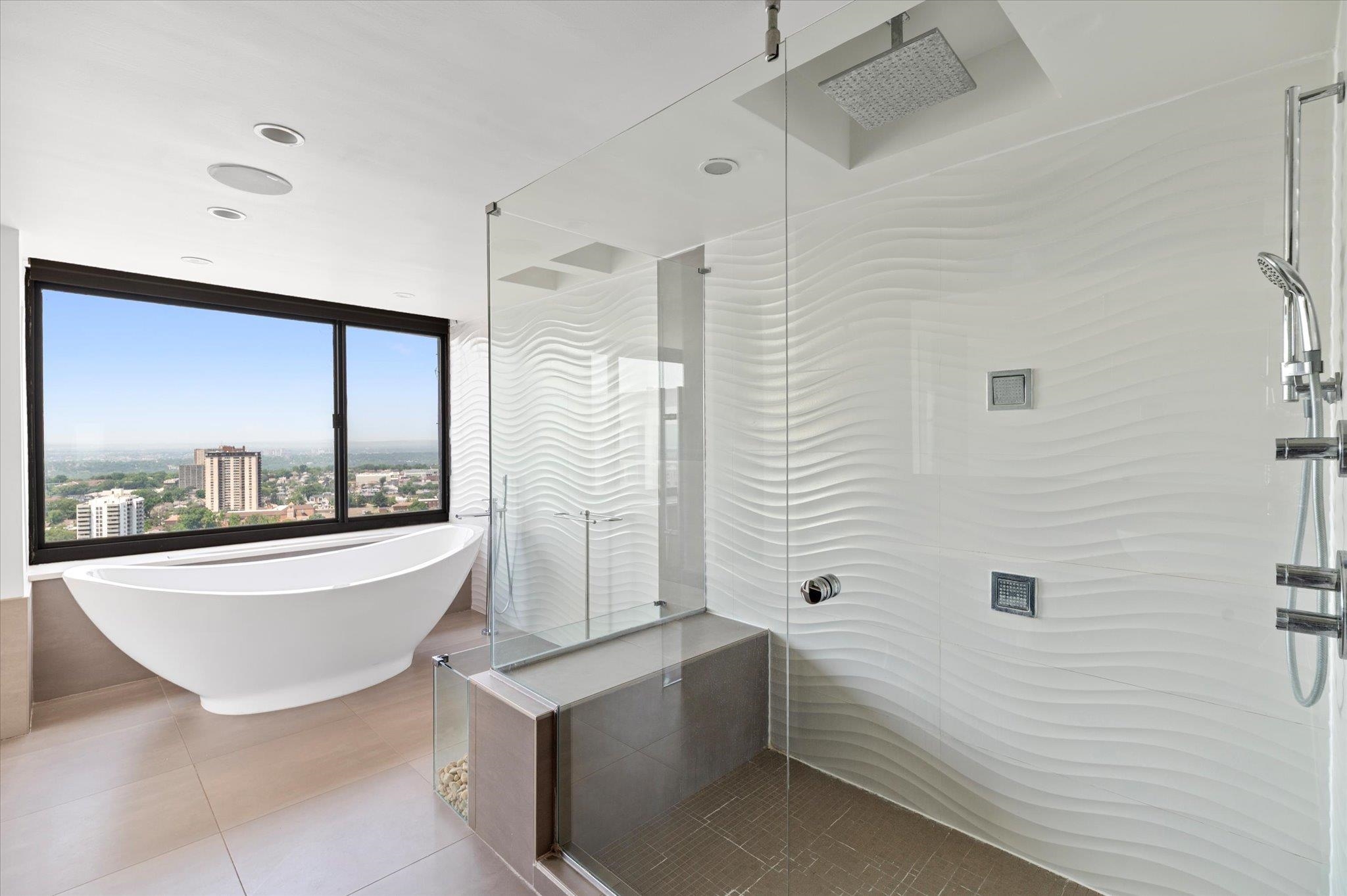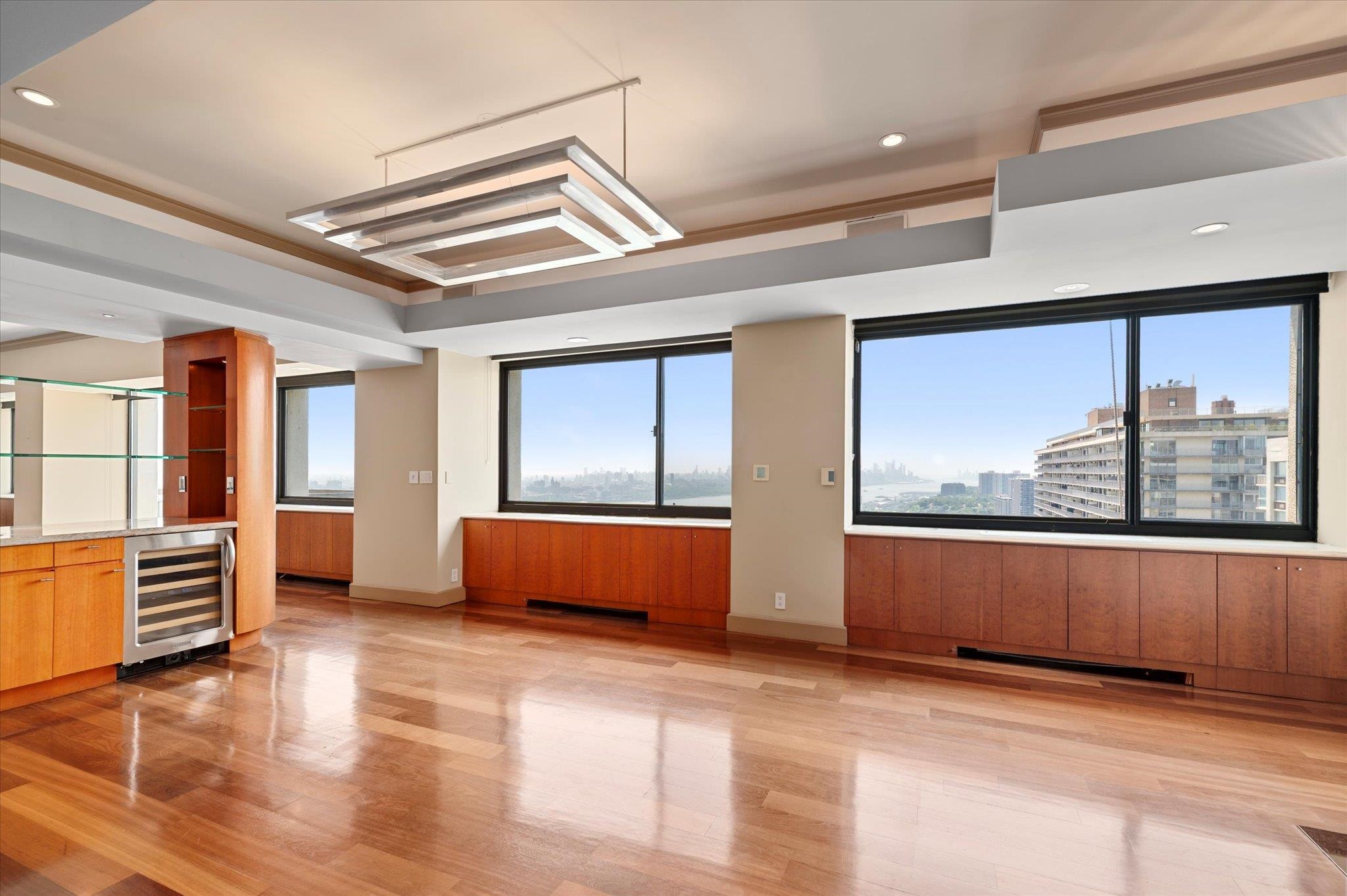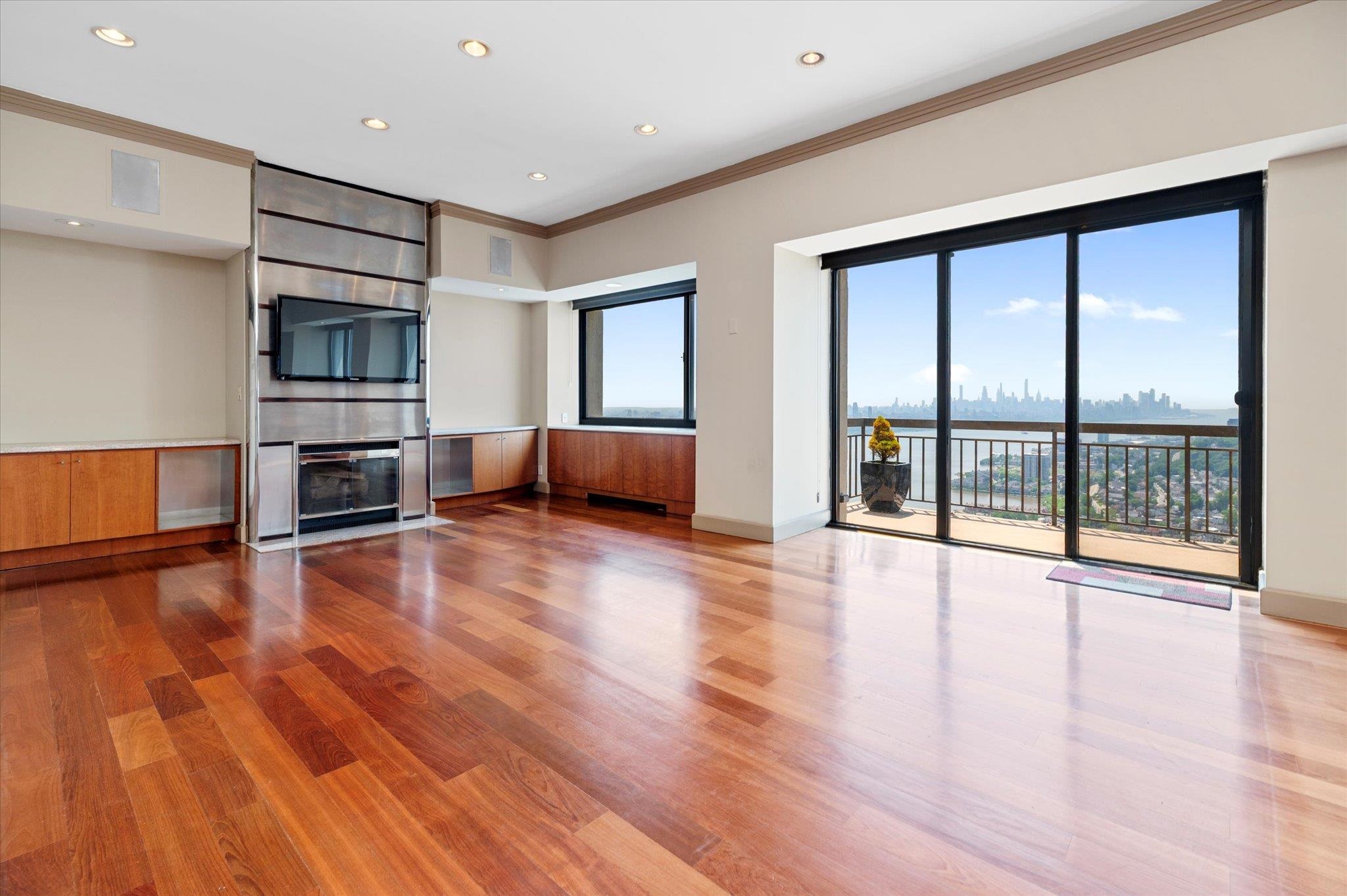 Perched atop the Fort Lee skyline, this 4 bedroom, 3.5 bath Penthouse is the jewel of luxury living boasting outrageous wraparound views of both New York and New Jersey, that stretch as far as the eye can see. Wake up to the panoramic view of the NYC skyline, the Ramapo Mountains and everything in-between. Inside, you’ll find cozy elegance and sleek-designed living spaces; cherry-wood floors and pocket doors. Chef’s kitchen and loads of space to entertain. The Primary suite is like a private retreat with a spa-like bath and two oversized walk-in closets. And, yes, there are two guest suites with full baths for family and friends that would like to stay over. There’s another bedroom and even extra space for a den or office. Lots of storage space throughout and even a separate entry from the main living space. Three fireplaces and more. All the amenities are included: 24 Hr Doorman, separate Bbq lounge areas, Jacuzzi, gym and outdoor pool and 4 indoor parking spaces! All at River Ridge.