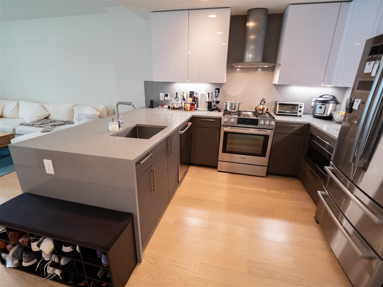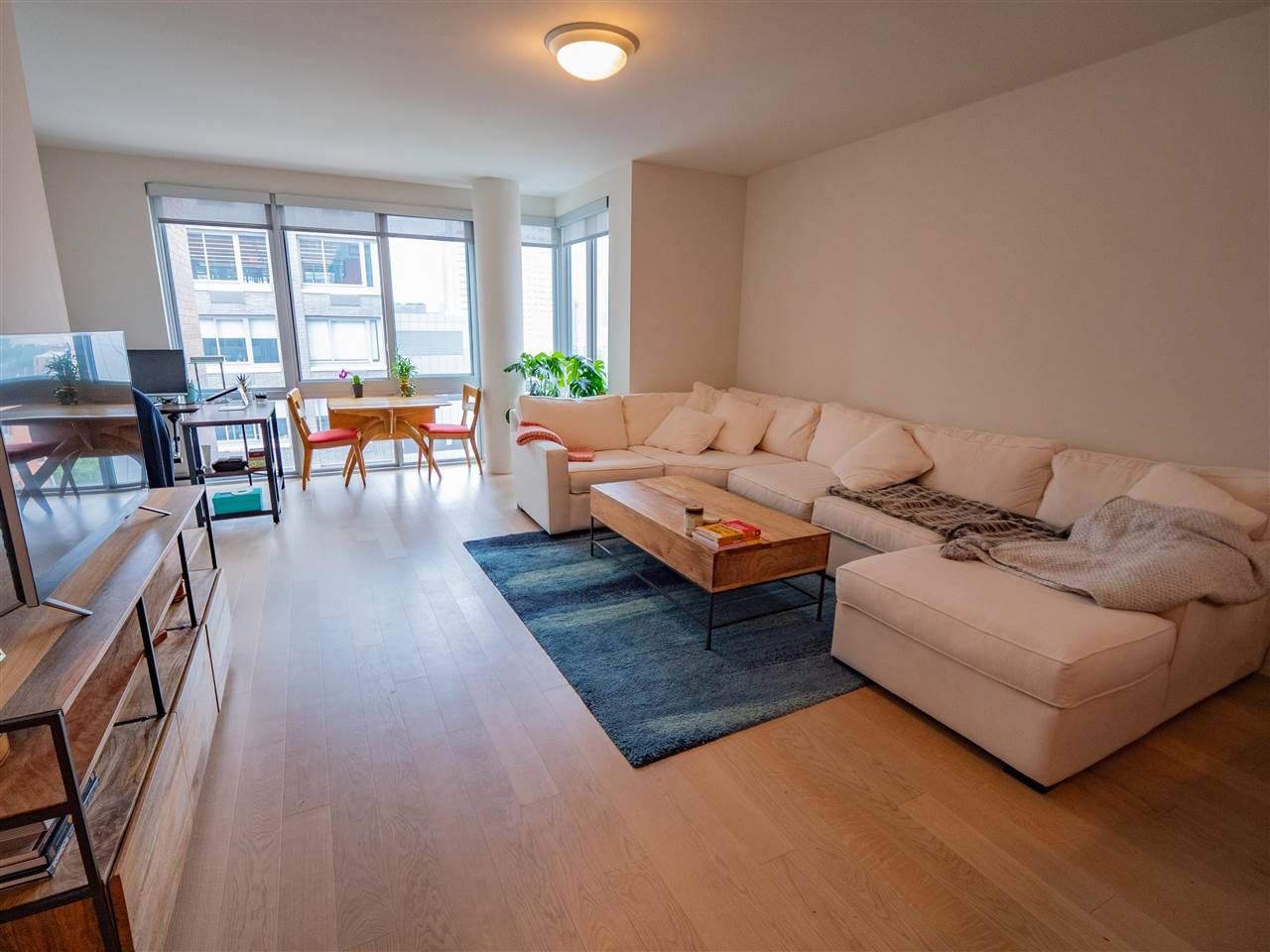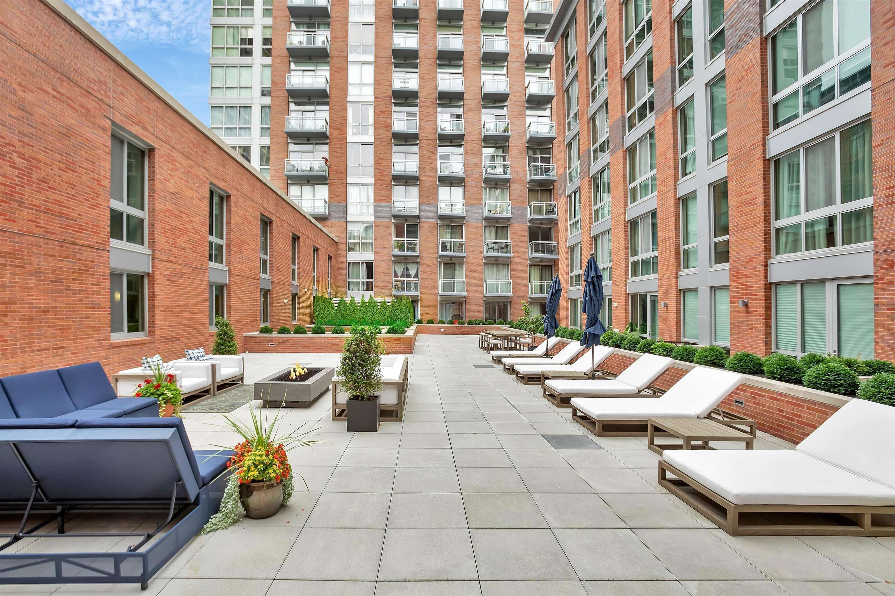 Welcome to Residence #6010, a highly sought-after oversized one-bedroom, one-bath corner unit in the prestigious Gulls Cove Phase 2, perfectly nestled in Jersey City’s vibrant Liberty Harbor neighborhood—just steps from Paulus Hook. This sun-drenched home offers a thoughtfully designed open floor plan with soaring ceilings, a spacious dining area, and a dedicated home office nook—ideal for today’s hybrid lifestyle. The sleek, chef-caliber kitchen is outfitted with premium Bosch stainless steel appliances, quartz countertops, and custom cabinetry, making it a dream for both cooking and entertaining. Wide-plank hardwood flooring flows throughout, complemented by floor-to-ceiling windows that flood the space with natural light. The generous bedroom features a custom walk-in closet, while the spa-inspired bathroom showcases elegant porcelain tile and upscale finishes. An in-unit washer and dryer add everyday convenience. Gulls Cove is a luxury, full-service condominium offering 24-hour concierge, a state-of-the-art fitness center, children’s play area, and a resident lounge. With the PS16 school district, Hudson-Bergen Light Rail at your doorstep, and just minutes to the Grove Street PATH, Exchange Place, Liberty State Park, and a wide array of parks, shops, and dining destinations—including Newark Ave Pedestrian Plaza—this location offers the ultimate blend of lifestyle and convenience. Don’t miss this rare opportunity to own a premier corner unit in one of Jersey City’s most desirable communities