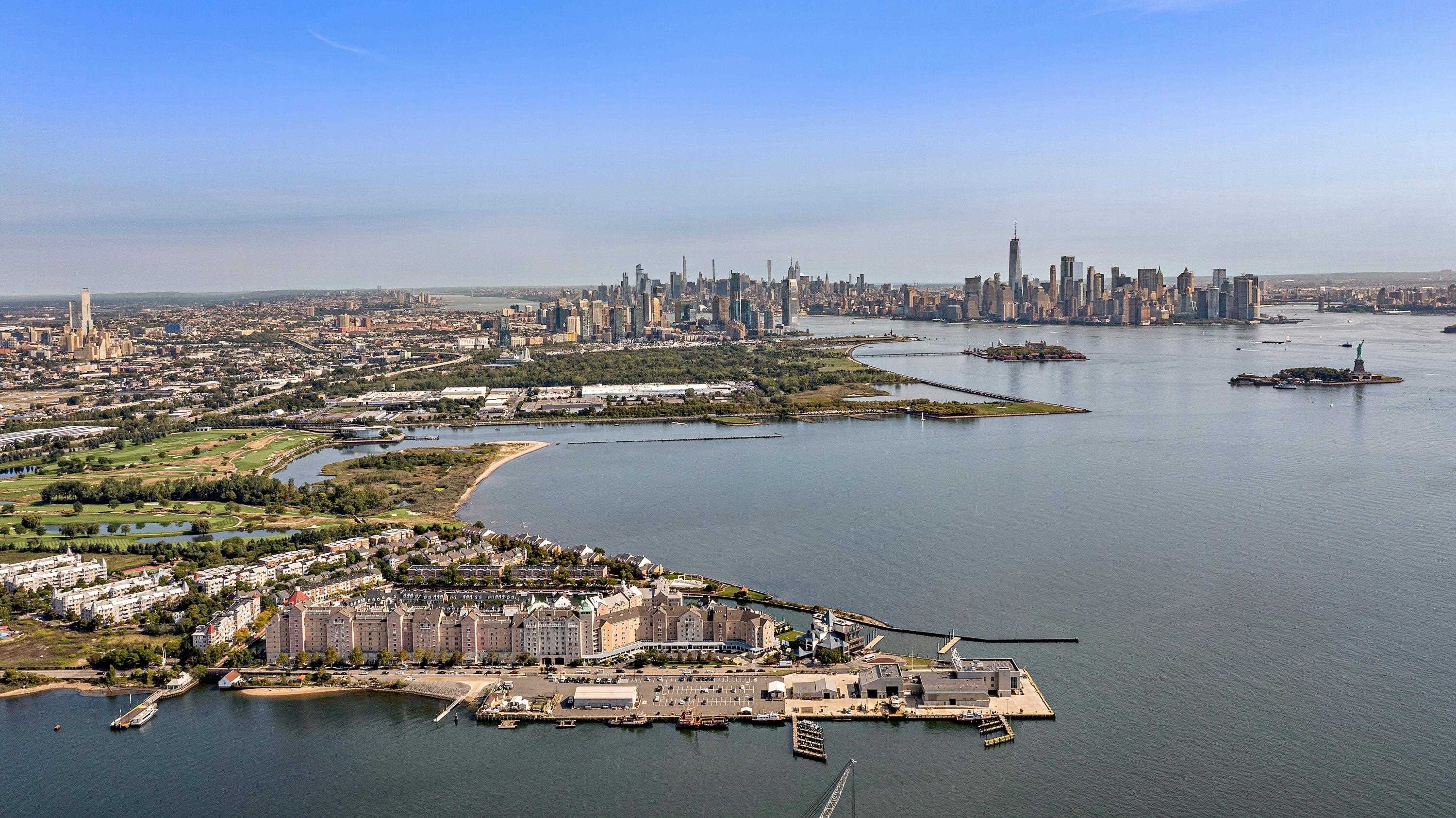Desirable Port Liberté two bed/2bath higher floor 1100 sqft corner unit condo in 206 Shearwater Ct West-with Ferry right outside your door. Bringing desirable functionality and convenience, entryway opens to a comfortable living and dining space with beautiful natural light and an open layout also offers bedrooms at opposite ends of the home. Balcony doors open to your gracious extended private outdoor space from both living area and primary bedroom with partial skyline view. Primary bedroom suite includes a walk-in closet and updated full bath. Comfortable and sunny south-facing 2nd bedroom, also oversees Ferry stop outside. This lovely home offers central AC, wood floors throughout, white kitchen with newer microwave, full size washer/dryer, and one garage parking space in building garage right off the elevator for your convenience. Several Port Liberté amenities include security gatehouse security and onsite management, fitness facility with trainers, sauna and massage; two incredible outdoor pools- one east-facing infinity pool with views, clubhouse, tennis courts, outdoor play area, green space, basketball court, fenced dog run and waterfront promenades. Monthly fee includes heat, water, hot water, management, garage parking space, guest parking and use of all amenities. Also onsite Felina Steak and Hudson House event venue, and Growing Seeds preschool. Effortless commute to NYC with on-site shuttle to Grove St. PATH Station or Ferry terminal outside to Wall St/FiDi, Downtown NYC, and near highways to 78/NJTurnpike, Holland Tunnel and EWR Liberty Int’l airport. Monthly HOA $1392. Call with questions.