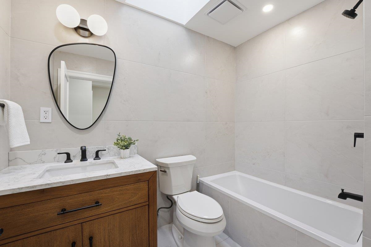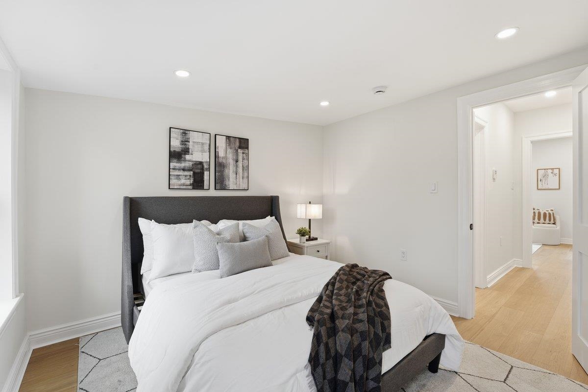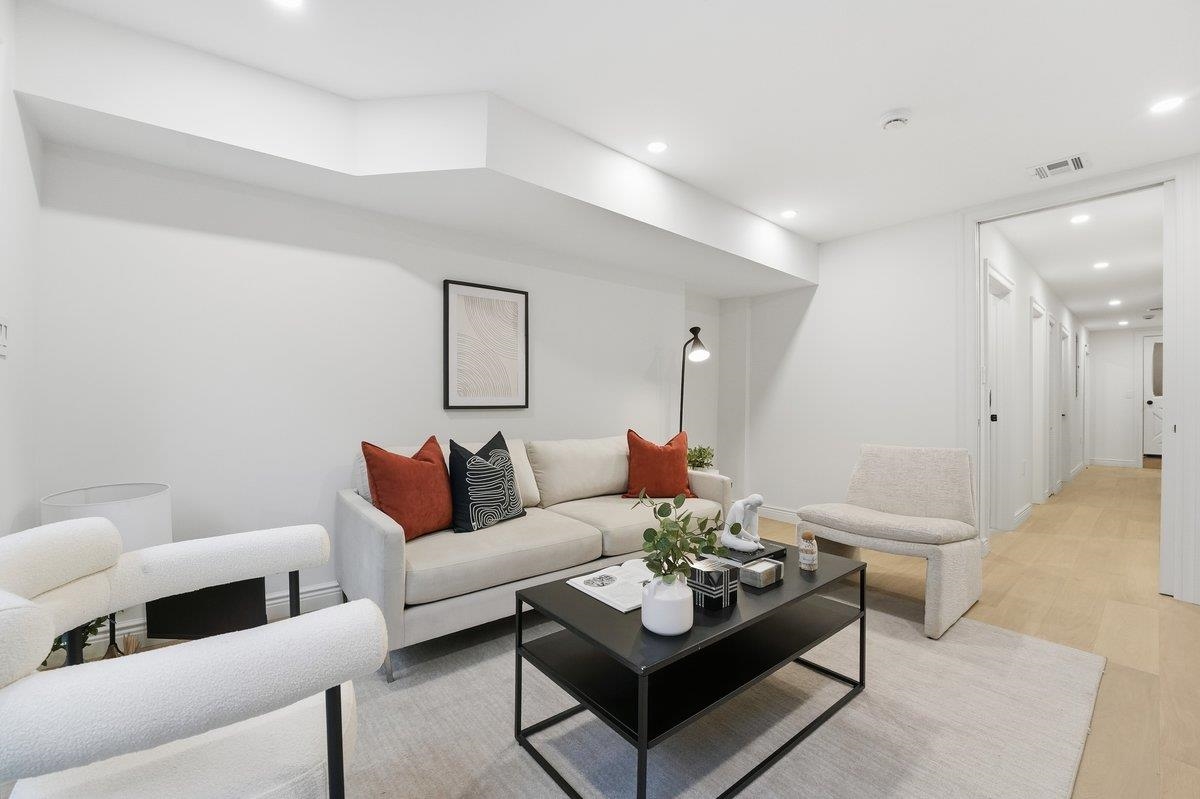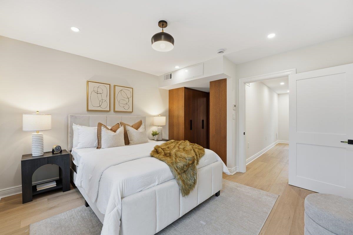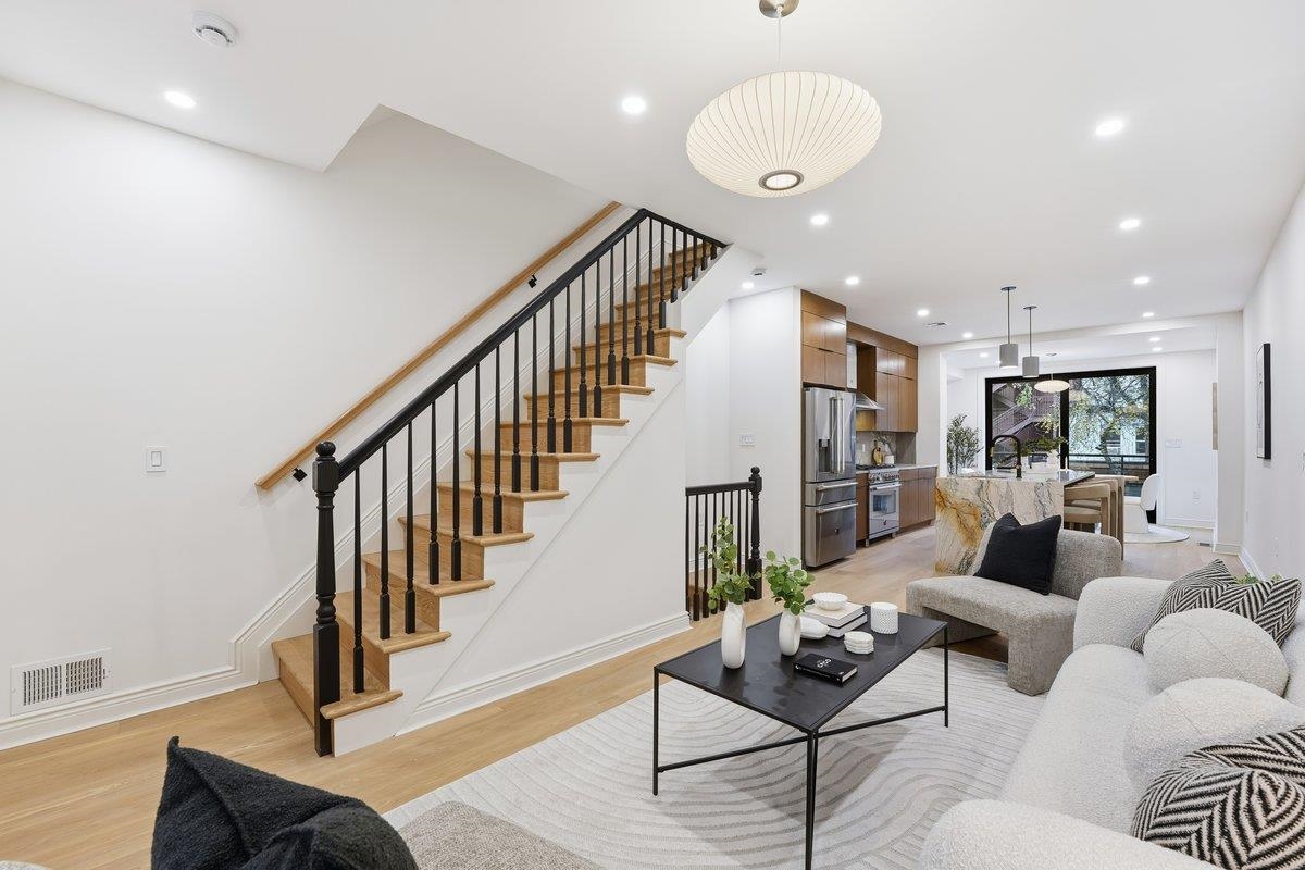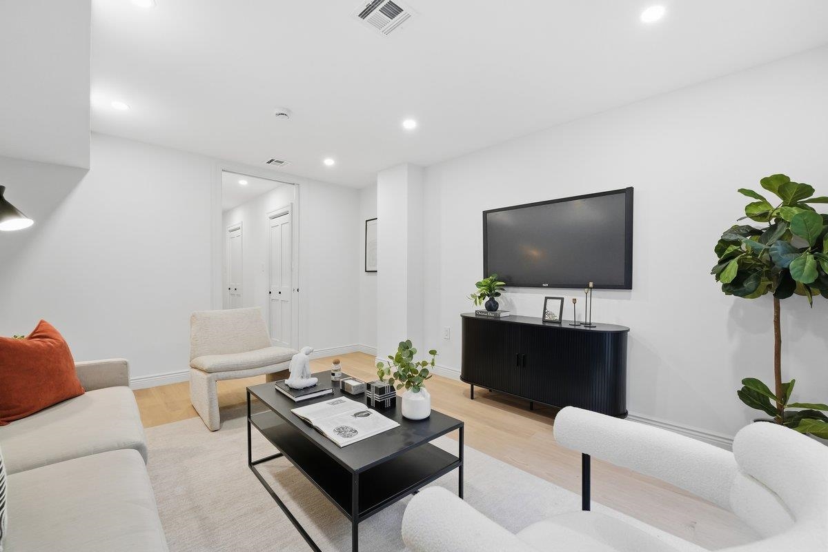 Nestled in one of Downtown Jersey City’s most coveted and convenient locations, this historic early 1900s townhouse has been masterfully reimagined through a top-to-bottom renovation that blends timeless architecture with modern luxury. Every element, from the facade to the fixtures, has been crafted with exceptional attention to detail and materials of the finest quality. This unique home stands out as one of the few houses in the Paulus Hook neighborhood featuring an authentic wooden Queen Anne style porch, a rare architectural gem that adds character and distinction to its beautifully restored exterior. Positioned on a rare full-size 100-foot-deep lot, the property includes a versatile annex structure perfect for a home office, gym, playroom, studio, or guest space. The home has been thoughtfully extended across the first two floors, offering generous interiors filled with abundant natural light, as well as two stunning terraces, one off the dining room on the parlor level and another extending from the primary suite above. From the rear of the house, enjoy striking views of the Jersey City skyline, where old-world charm meets the energy of modern urban life. Spanning four levels, the residence features three spacious bedrooms, with a recreation room that can easily be converted into a fourth bedroom if desired. The home also offers three lavishly appointed bathrooms with Kohler fixtures and imported European tiles, two cozy and inviting living areas, a dedicated home office, and a convenient laundry room. The showpiece kitchen showcases custom oak cabinetry, exquisite Fantasy Macabus Quartzite countertops and backsplash, and premium Bertazzoni stainless-steel appliances, making it both a culinary and design centerpiece. Occupying the entire second floor, the serene primary suite feels like a private retreat, complete with its own terrace, a custom oak-paneled closet system, and a spa-inspired bathroom featuring a soaking tub and luxurious wet shower. The renovation also includes a full facade restoration by ZHI, complemented by significant mechanical upgrades including upgraded electrical system, two HVAC systems, Marvin windows, top-of-the-line EPDM roof, and Navien tankless water heaters. Throughout the home, solid wood doors, white oak floors, recessed lighting, and elegant Herman Miller fixtures enhance the atmosphere of modern refinement and natural warmth. Moments from the PATH station, Grove Street’s vibrant shops and restaurants, the scenic waterfront, and Hamilton Park, this newly restored townhouse, complete with its private backyard annex offers an unparalleled combination of historic charm, superb craftsmanship, and contemporary comfort.