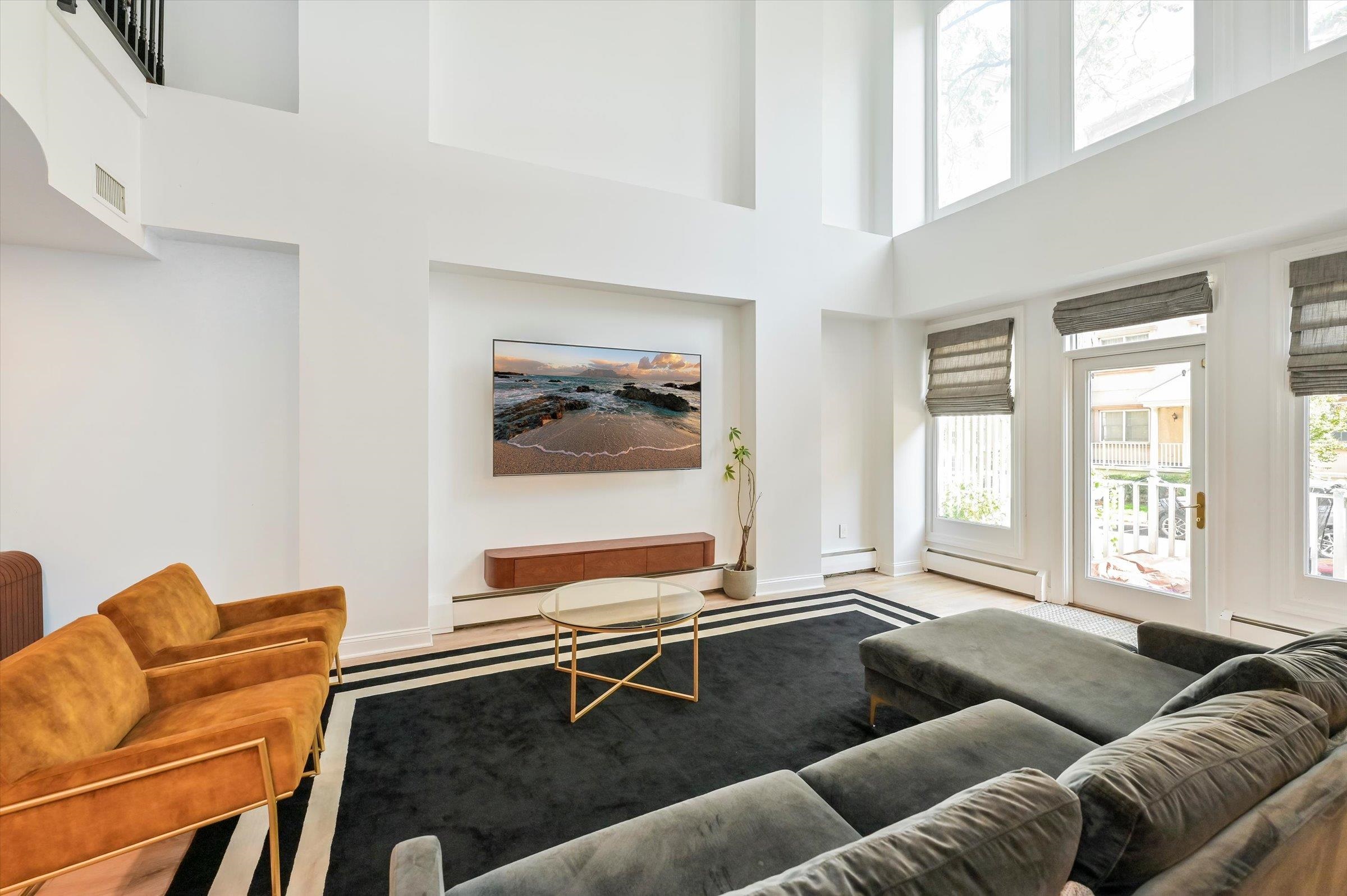 Discover refined living in this beautifully crafted 2,200 sq. ft. duplex condominium, tucked within the desirable Shearwater Court community. This remarkable home captures the essence of upscale comfort, combining expansive interiors, abundant natural light, and effortless elegance. Enter a striking great room where soaring 18-foot cathedral ceilings evoke openness and distinction. The fluid open-plan design seamlessly connects the stylish living and dining areas to your private outdoor patio oasis, perfect for relaxed gatherings or elegant alfresco dining. The chef-inspired kitchen is both functional and chic, designed with sleek finishes, plentiful cabinetry, and expansive counter space, ideal for culinary enthusiasts and entertainers alike. Upstairs, the primary suite offers a serene retreat with a spa-like en-suite bath and a versatile mezzanine, perfect as a reading corner or flexible home office. Two additional well-appointed bedrooms, a full bath, and a convenient half bath provide comfort and privacy for family or guests. This residence is complete with central air, in-unit laundry, and access to Port Liberte’s resort-style amenities including 24-hour gated security, lap and infinity-edge pools with dramatic Manhattan skyline views, a fully equipped fitness center with saunas, tennis and basketball courts, dog runs, children’s play areas, and tranquil waterfront promenades connecting to Liberty State Park. Onsite conveniences include a dental office and Growing Seeds preschool. Commuting is a breeze with a shuttle to Grove Street PATH and a ferry that goes right to Downtown NYC Pier 11. Just minutes to major highways, the Holland Tunnel, and Newark Liberty International Airport, this home offers both luxury and accessibility. Pets considered on a case-by-case basis. Schedule your private showing today and experience this extraordinary lifestyle!