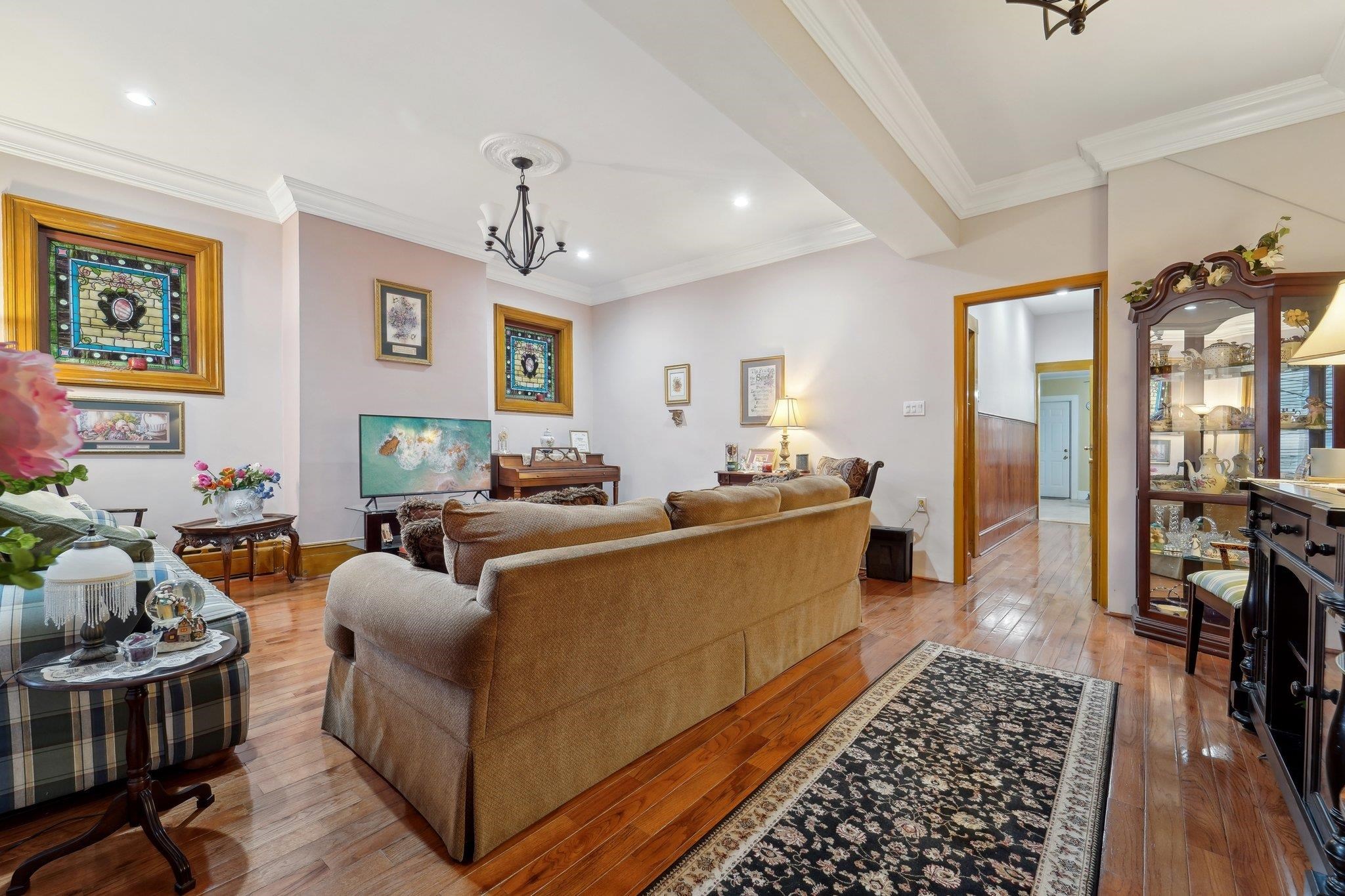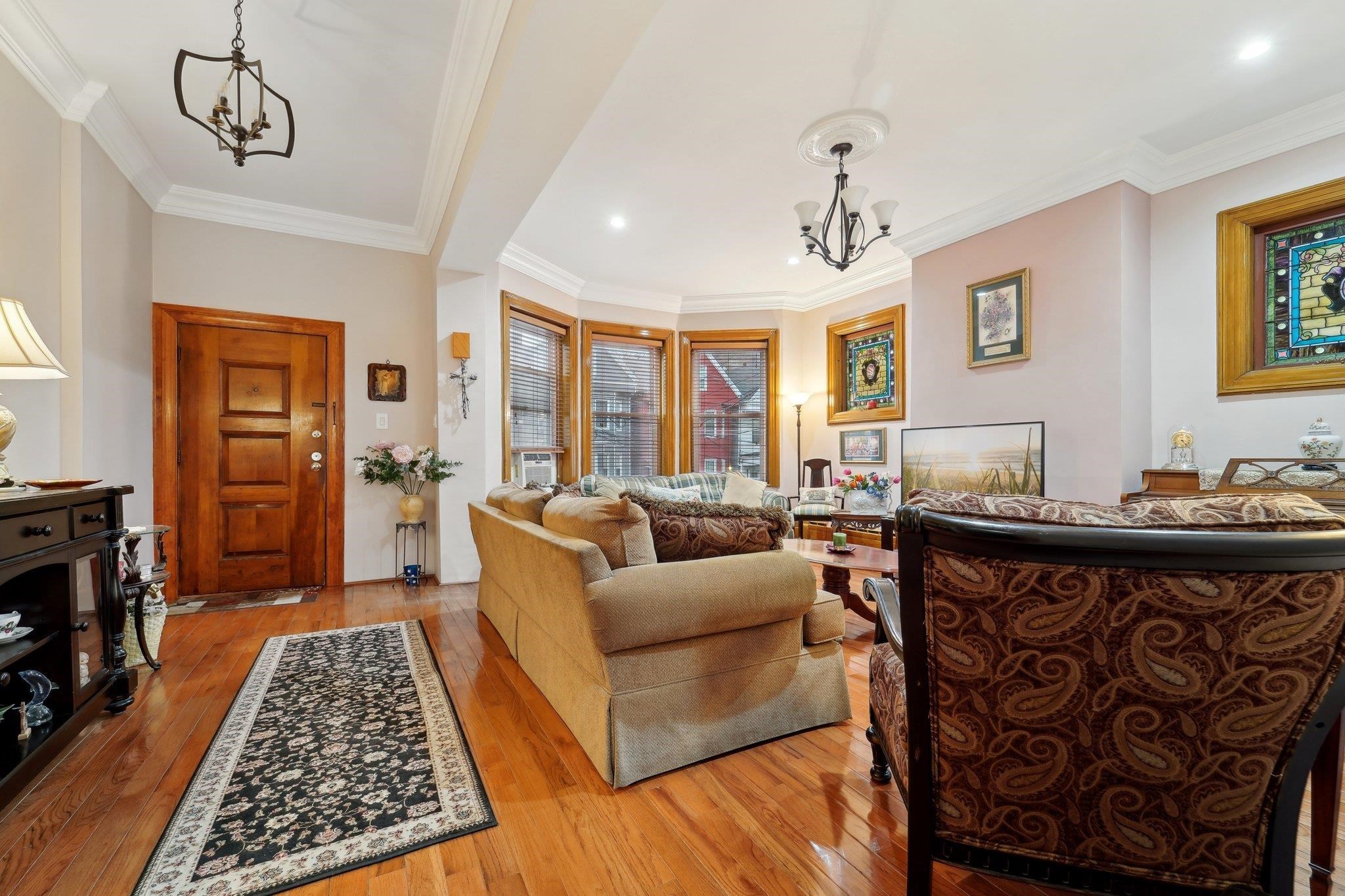 Welcome to this charming four family home nestled in the heart of Weehawken, NJ. This home greets you with beautiful views of the Manhattan skyline and the Hudson River. Welcoming you into the grand living room with beautiful crafted crown moldings throughout, beautiful bay windows, as well as natural peaking through its unique stained glass. The home features beautiful hard wood floors throughout. The kitchen has stunning marble countertops, beautifully crafted cherry wood cabinets with plenty of space. This kitchen leads you to an outdoor deck and backyard with impeccable marble stone tiles. Perfect for family gatherings, bbq’s, as well as entertaining guests. This home is centrally located near NJ Transit public buses to NYC, The Light Rail station, The Ferry at Port Imperial, shops, notable restaurants, schools, parks, and worship.