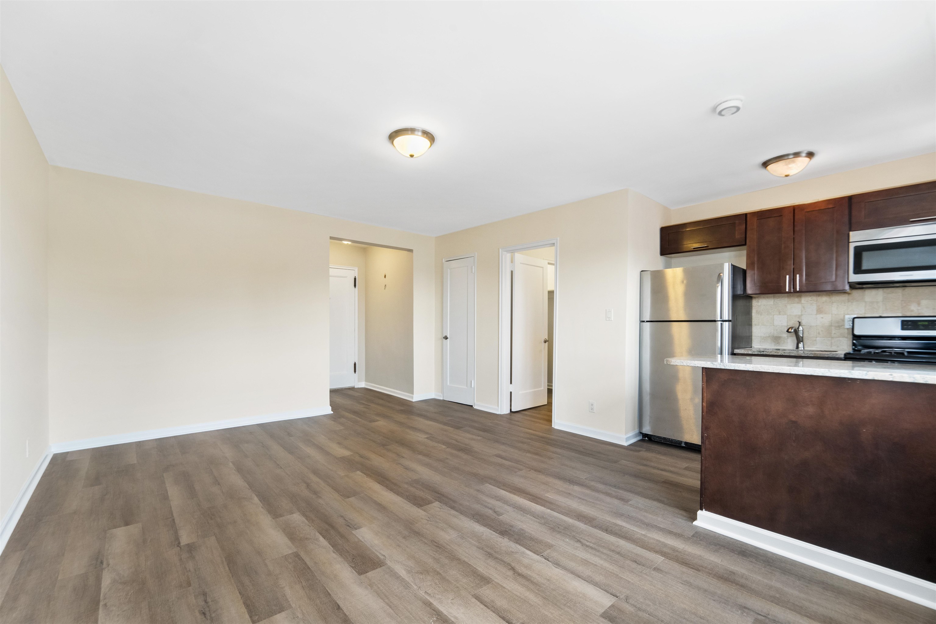 Welcome to Unit 3F! This beautifully updated studio offers modern living with new laminate flooring, a sleek kitchen featuring granite counter-tops and ample cabinet space, plus a walk in closet. Enjoy the added convenience of new on-site laundry and a prime location directly across from James J. Braddock Park, perfect for outdoor recreation and scenic views. Commuters will appreciate the easy access to NYC transportation, as well as nearby dining, shopping, and entertainment. Experience the perfect blend of comfort, style, and convenience—schedule your private showing today! (Some photos have been virtually staged.)