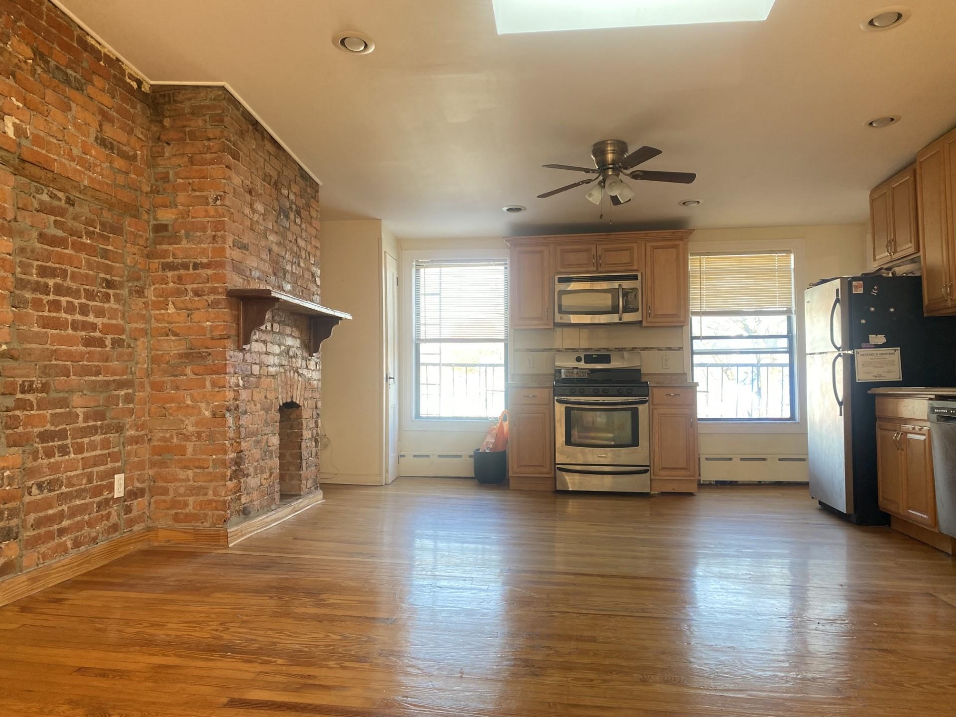 Unbeatable location for NYC commuters, just a 5-minute walk to the Grove Street PATH Station. This charming 2-bedroom, 1-bath home features hardwood floors throughout, an exposed brick accent wall, and a decorative fireplace that adds classic character. Heat and hot water are included, and residents enjoy access to a shared free laundry area in the building. Pet-friendly with no pet deposit required. A perfect blend of convenience, comfort, and urban charm in the heart of downtown Jersey City.