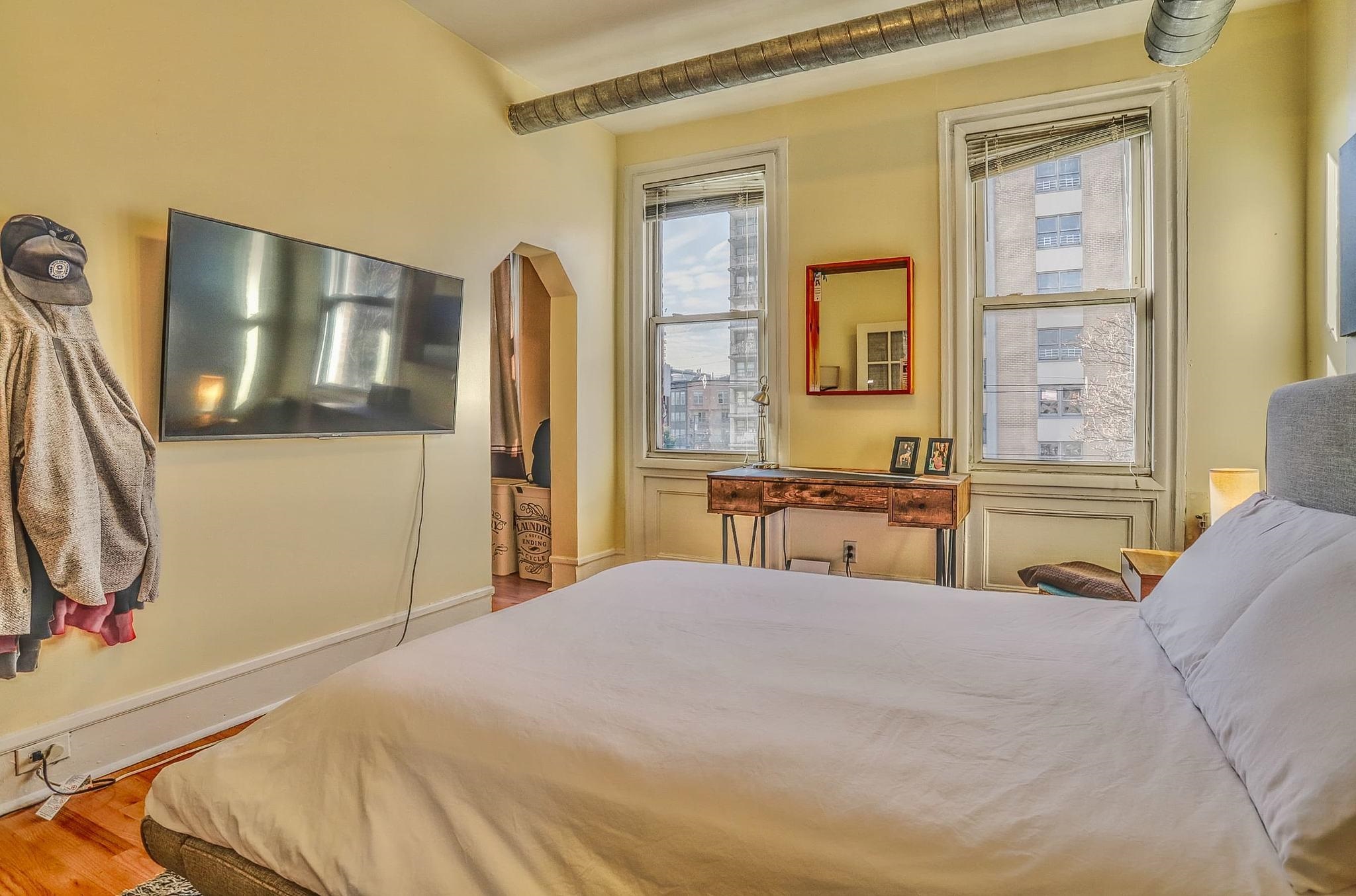 This is a great find! This well-appointed apartment in a prime downtown Hoboken location offers everything you need for modern urban living. Only one month’s security deposit is required, and hot water is included in the rent. The classic row-house home features an efficient layout with central air and heating, an eat-in kitchen, and an in-unit washer and dryer. An oversized walk-in closet can even double as a small home office. The apartment is pet-friendly, pending owner approval. Just blocks from top restaurants, bars, parks, shopping, and transportation to NYC. Nearby parking is also available for rent.