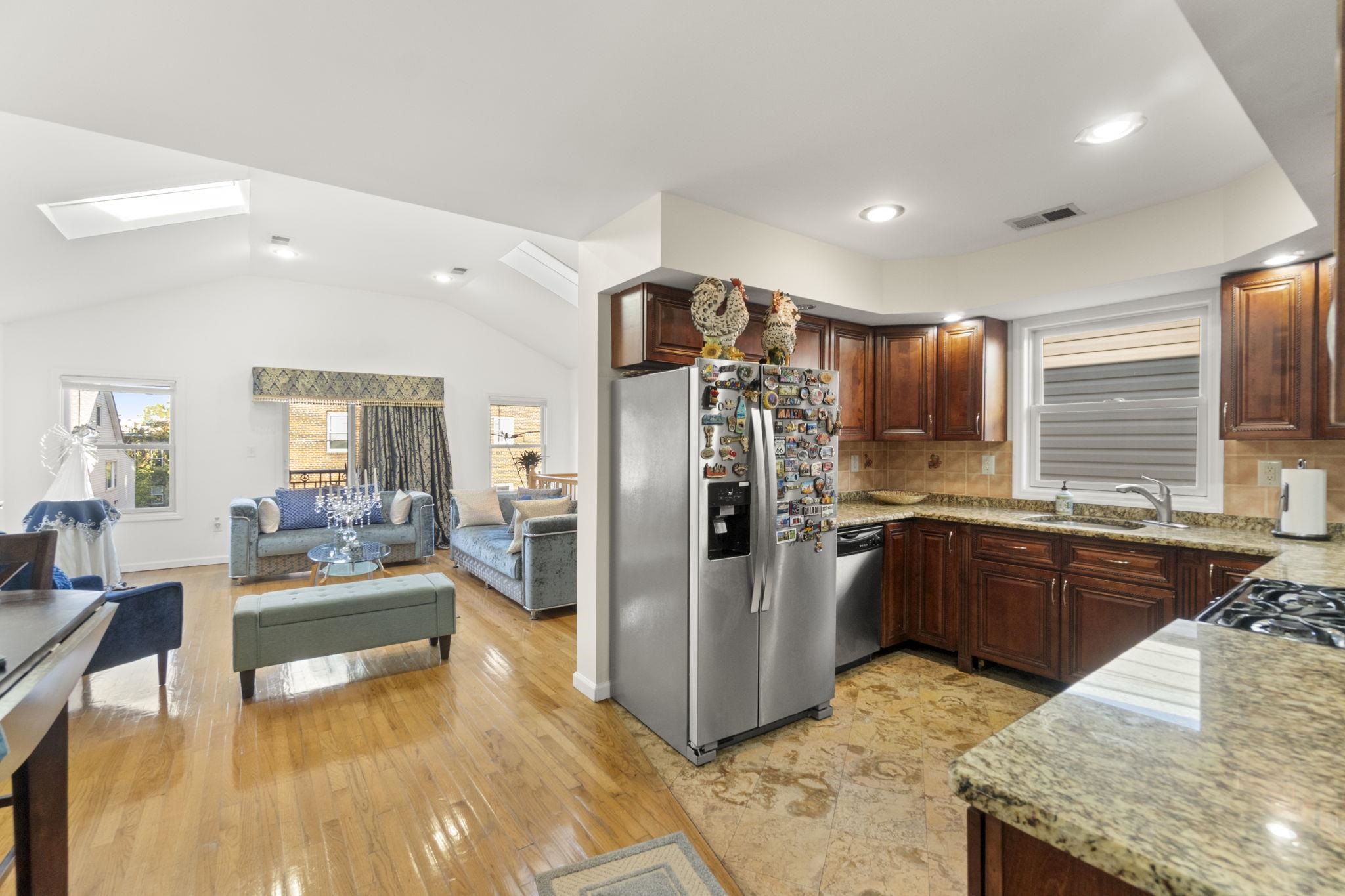 Discover the perfect blend of comfort, style, and convenience in this beautifully maintained, move-in-ready two-family home offering versatile living and excellent income potential. The first-floor unit (vacant) features an updated 3-bedroom, 2-bath layout with a brand-new modern kitchen appliances, new lighting fixtures throughout, and freshly renovated bathrooms complete with new toilets, sink cabinets, and medicine cabinets. The bright living room with recessed lighting opens to a private balcony—perfect for relaxing or entertaining. This unit also includes a brand-new washer and dryer for added convenience. The second-floor unit, currently rented month-to-month at $2,700 (below market value), mirrors the same spacious layout with high ceilings, ample natural light, and well-maintained interiors, making it ideal for consistent rental income. The ground level includes a generous owner’s bonus space with a full bath and kitchen setup (to be removed prior to closing), offering plenty of potential for your personal touch. Conveniently located just minutes from public transportation with direct access to New York City, this property is close to local parks, schools, shopping, and dining options. Whether you’re an investor seeking strong cash flow or a homeowner looking for a stylish residence with rental income, this home delivers exceptional value in one of Jersey City’s most sought-after neighborhoods.