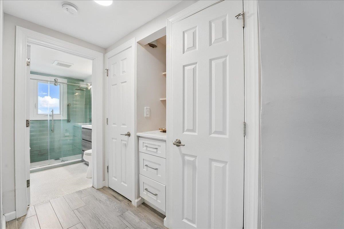 Whimsical and enchanting, this classically refinished single family home (with parking!) welcomes in Western Slope. Tucked along a tranquil, tree-lined street in this quiet corner of Jersey City Heights, the three-story floorplan offers three bedrooms, two baths, a bonus room and an oversized backyard. Defying cookie-cutter conventions, this property brings a strong interior art deco influence punctuated by architectural archways and modern upgrades. Step into beautiful hardwood floors and a sun-drenched living space that flows effortlessly downstairs to the main living area. The fully renovated eat-in kitchen hosts coveted radiant heat flooring, plus finishes like white quartz counters, herringbone tile backsplash, grey shaker cabinets and stainless steel appliances. A dedicated butler’s pantry adds storage and polish, while the floorplan gives space for a formal dining table or casual breakfast nook, take your pick. Upstairs offers a loft-like bonus space perfect for flexible living space, alongside an oversized additional bedroom. Bathrooms are beautifully finished with details like Caribbean blue porcelain tile to the ceiling, frosted windows for natural light and privacy, and glass showers with rain and multi-spray systems. Closets and built-in shelves a peppered throughout, allowing everyday living to be easily organized. The lower level also features an oversized mudroom with direct outdoor access giving rare functionality and flow. The grande finale is the MASSIVE private backyard with the kind of space that invites summer BBQs, gardening projects, and (domesticated) four-legged friends to roam free. Additional upgrades include the Navien tankless water heater with state of the art Mitsubishi coolant system. This classic, unassuming exterior hides a home full of unexpected charm, and embodies the spirit of Jersey City Heights. Western Slope is known for its quiet, neighborly feel while still offering all the amenities of Jersey City Heights. Residents can take advantage of proximity to thoroughfares like JFK Blvd and major highways for commuting, *OR* stick close to home and find easy access to schools, parks, boutique shops and one-of-a-kind restaurants & cafes. Win-win when you live here:)