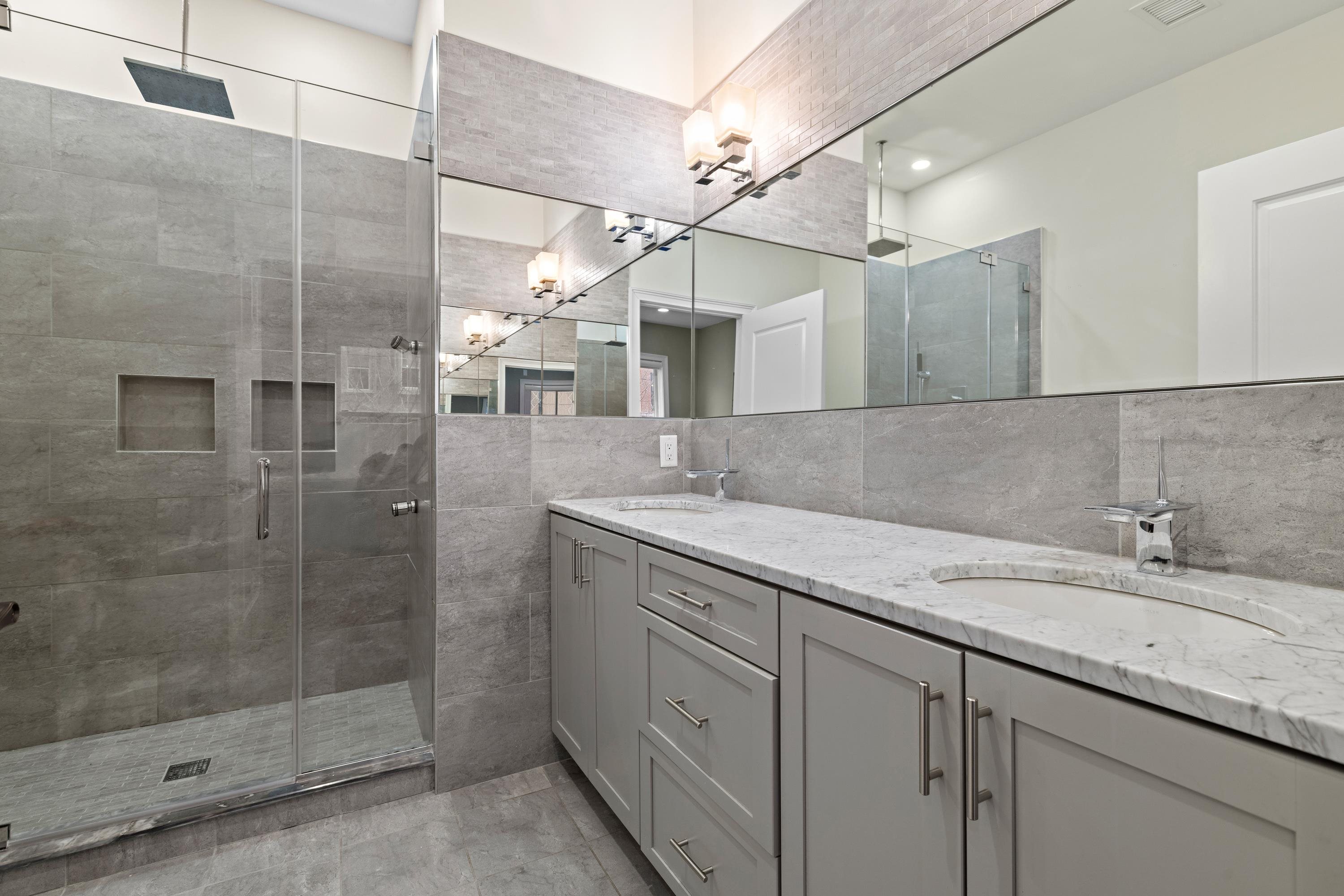 The extraordinary Downtown JC Condo that lives like a Townhome! A private 1st Street entrance defines the experience of this beautifully differentiated 3 bedroom (2 bedroom and large den) superior condominium floor plan that offers the feel, breadth, and dimension of a townhome at The Gannon. A perfectly placed super-sized parking spot with a wall of custom made storage units that will wow you all becomes urban perfection! From the minute you enter into its unique and elegant private double door entrance you are moved by the special qualities of this fabulous one of a kind residence. Step up from its entry hall into its living area and feel the sprawl and the symmetry of the floor plan move in on you as you approach the home’s show stopping gourmet kitchen and dining area. A kitchen of extraordinary proportion and attractiveness with a large and splendid showcase island is the sensational focal point of the living area, and will certainly be the gathering place of many friendly and social gatherings you will be proud to host. You may never want to leave it! Outstanding kitchen also features Bosch appliances, solid white maple Decora cabinets, Italian Calacatta Gold marble counters, white subway tiling, vented hood oven/range, and wine refrigerator. Also features an impressively sized main suite with spa-like bath featuring double vanities, Kohler fixtures, sumptuous walk-in shower, and customized walk-in closet. The home boasts a striking and unique 2nd bedroom as well with dimensions that can easily provide designated spaces for kids with their own play area, or as a bedroom with a separate office or work area. The third bedroom/large den is also well proportioned with a tucked away comfort, both bedrooms feature custom closets. Other highlights include 10’ ceilings, red oak wide plank floors with decorative inlay, crown molding accented with LED lighting, central A/C and heat, and washer/dryer utility room in unit. The Gannon is also pre-wired for smart home automation and security system. This sensational DTJC residence on 1st and Grove is elegantly poised with an individual style, quality, and design that will satisfy you aesthetically, as well as fulfilling all your utilitarian needs with its very special convenient parking and storage area in building attached garage, just outside your door. Common amenities include a spectacular roof deck with complete outdoor kitchen with grilling entertaining deck with lounging areas; large green pet friendly residents’ yard, bicycle storage, and striking lobby with herringbone floors and mail package room. Superbly poised with the Grove Street PATH practically at your doorstep, and nestled between Hamilton and Van Vorst Parks, the Gannon is poised among restaurants, coffee shops, grocery stores, parks, eateries, nightlife, day care, pet care and Light Rail. A home of unique dimension, quality, and character awaits you in the heart of DTJC! A dream come true! Viewings by appointment.