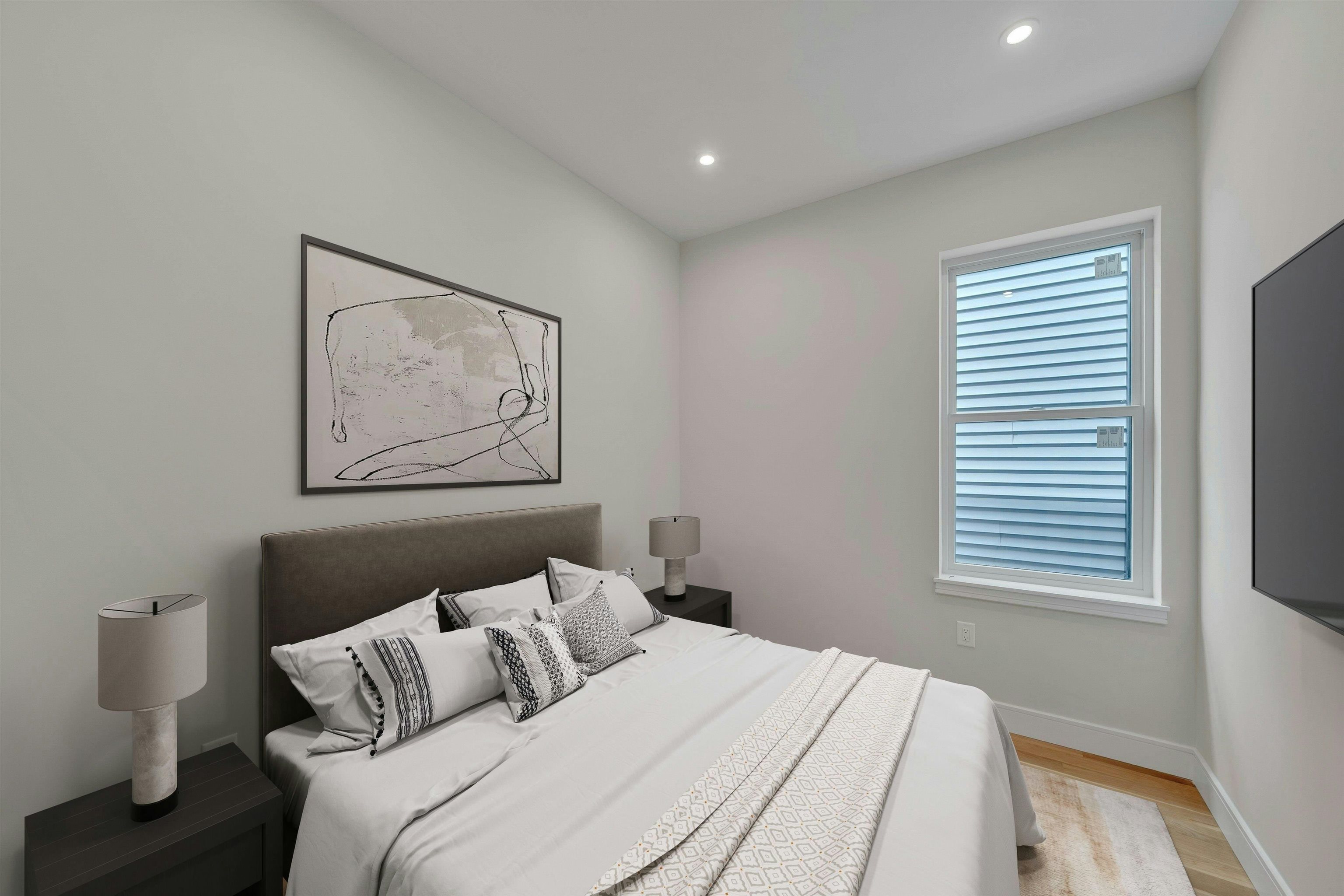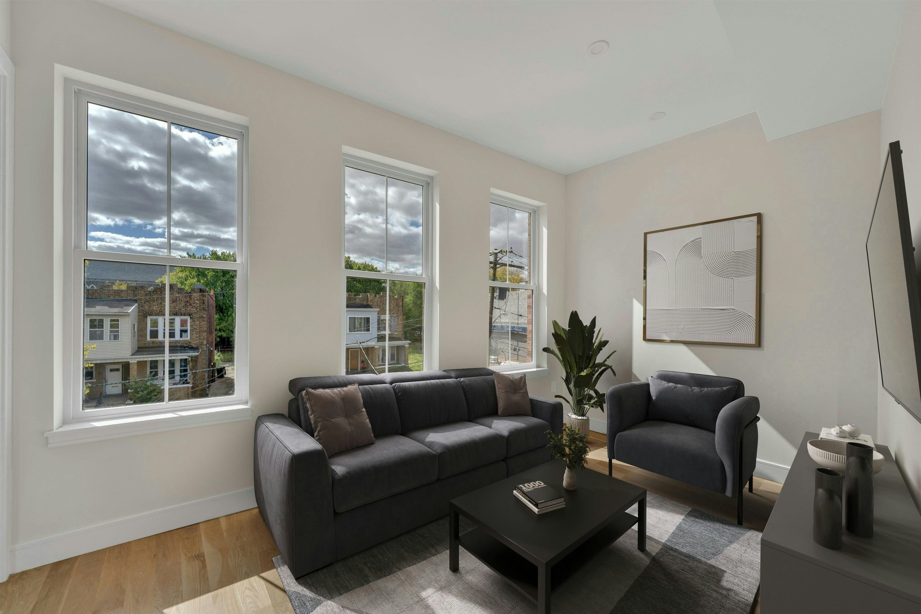 Step inside Unit 2 at 24 Clinton Avenue, a new-construction condominium that blends modern design, premium finishes, and smart functionality in Bergen-Lafayette. With ~1,451 sq ft, this three-bedroom, two-and-a-half-bath residence delivers luxury and a thoughtful layout, featuring 10-foot ceilings, 8- foot doors, and white oak hardwood floors throughout. The kitchen features Fabuwood Luna cabinetry, a Pistachio island, quartz countertops and backsplash, and brass fixtures—creating a sophisticated and timeless aesthetic. Each bathroom offers backlit designer mirrors and high-end finishes, while bedrooms are spacious and bright, with the primary suite including a private balcony and en-suite bathroom. Enjoy a finished private roof deck with breathtaking skyline views of Manhattan and Downtown Jersey City, creating an unmatched entertaining and relaxation space. Additional highlights include brand-new Rheem HVAC systems, 40-gallon powervent hot water tanks, and energy-efficient Andersen 100 Series windows. Located in Bergen-Lafayette—Jersey City’s fastest-growing and most rapidly appreciating neighborhood—this residence is surrounded by a wave of investment, development, and community energy, making 28 Clinton Ave a rare and valuable opportunity