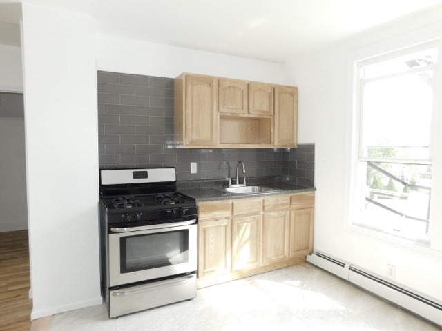 Beautiful modern two bedroom apartment with eat in kitchen located on quiet dead end block of Obrien Ct. and right next to 16th street park! HEAT AND HOT WATER INCLUDED! Intercom system for tenants convenience. Storage & coin operated washer/dryer in basement. Not far from all transportation.