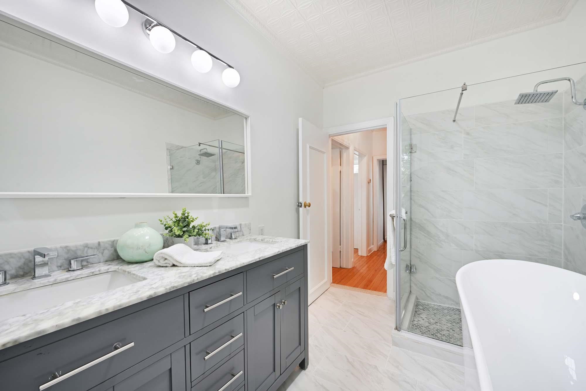 Make an appointment to view this 4 bedroom, 3 bath home located on a cozy tree-lined street in the heart of Secaucus. Enjoy hardwood floors, an upgraded kitchen with Stainless Steel appliances, Washer and Dryer, ample closet and storage space, wood burning fireplace, and a large balcony on the second level of the home. The residence has a beautifully appointed luxury bath on the second floor with an oversized walk-in shower, freestanding soaking tub and a double vanity. The finished walk out basement includes a full bath, and a generously-sized storage off the basement area. The home has an attractive appointed backyard. There is a one-car detached garage with Shared Driveway. Easy commute to NYC, located at the corner of Grace Ave and Paterson Plank. Moments to Route 3, malls, dining, and the lovely downtown area of Secaucus. ( Some pictures have been Virtually Staged ).