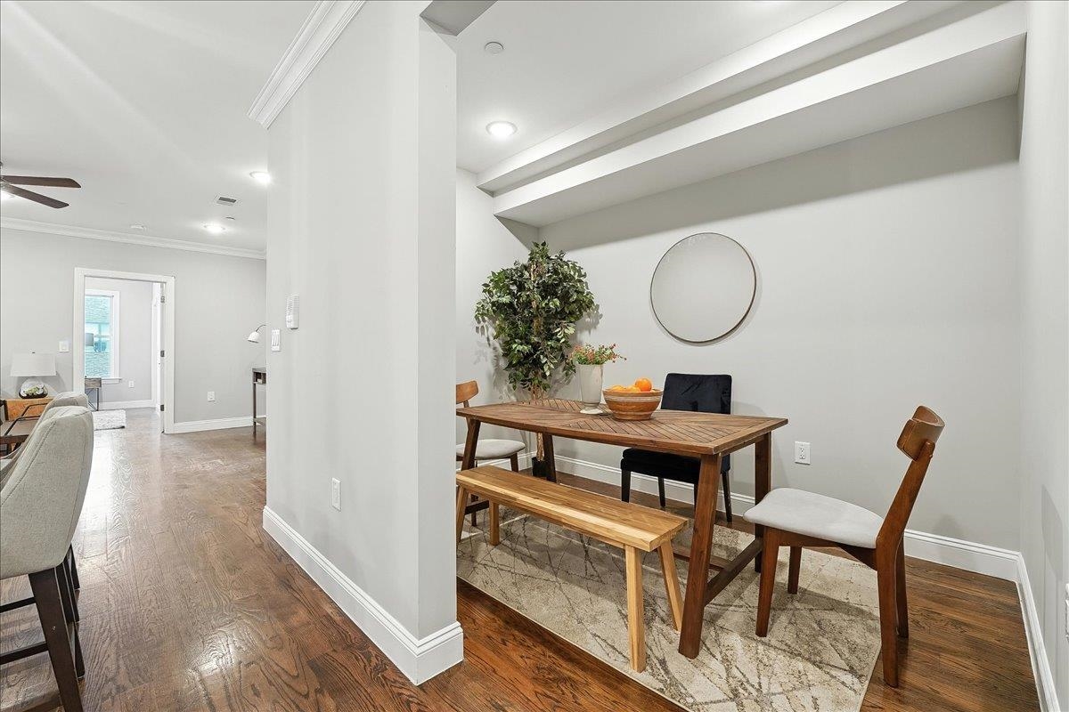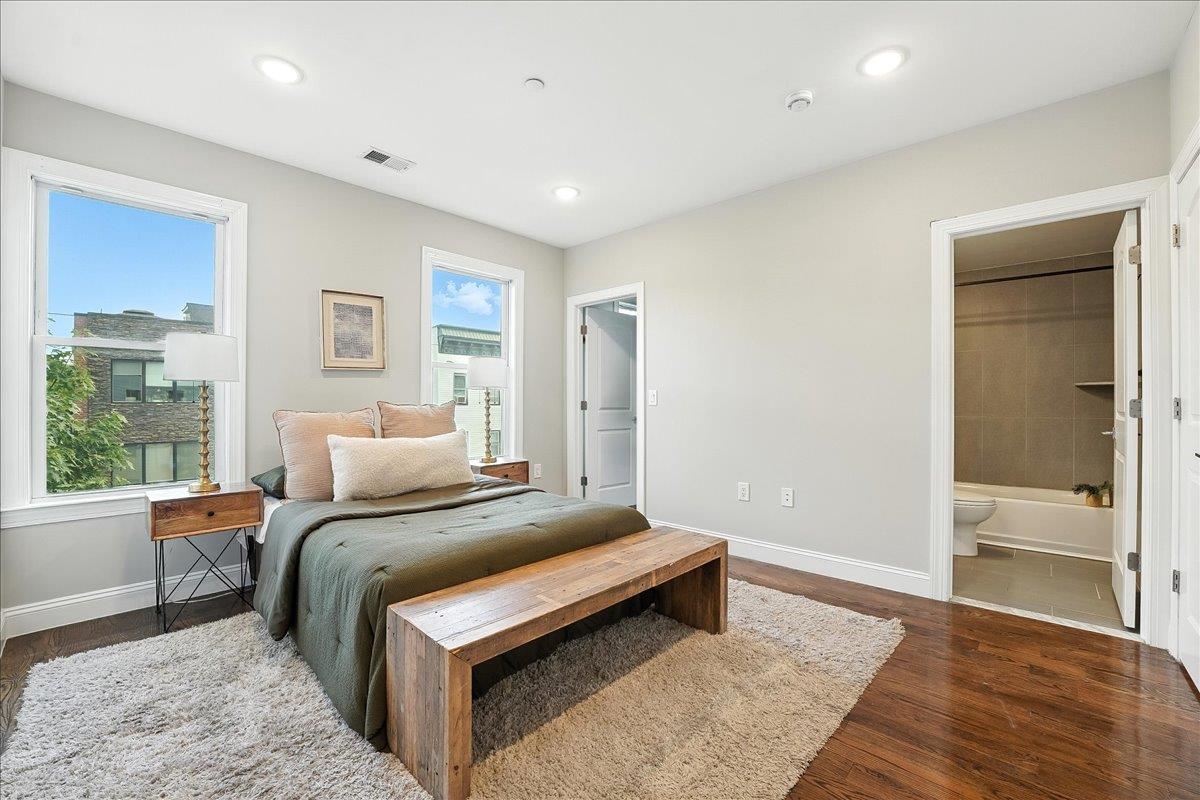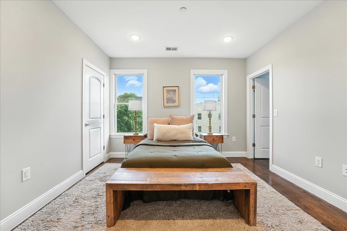 Tucked into a quiet corner of The Heights, this renovated home offers traditional elegance with modern upgrades galore. The floorplan showcases excellent square footage with 3 bedrooms, 2 baths plus formal dining room or flex space. Entering into the open plan kitchen and living area, beautiful details like crown molding, gleaming stained hardwood floors, ceiling fans and pendant lighting shine throughout. Bright white eat-in kitchen showcases custom shaker cabinets, quartz counters, subway tile backsplash and stainless appliances. Bathrooms are tiled to ceiling with convenient soaker tubs and shower plus vanity and oversized medicine cabinet mirror. Master en-suite impresses with two large windows, two closets plus additional walk-in closet with window for natural light for ultimate storage. Settled on a private tree-lined street, the vibrant community, eclectic shops, excellent schools and easy NYC access are no wonder why Jersey City Heights is one of the hottest neighborhoods.