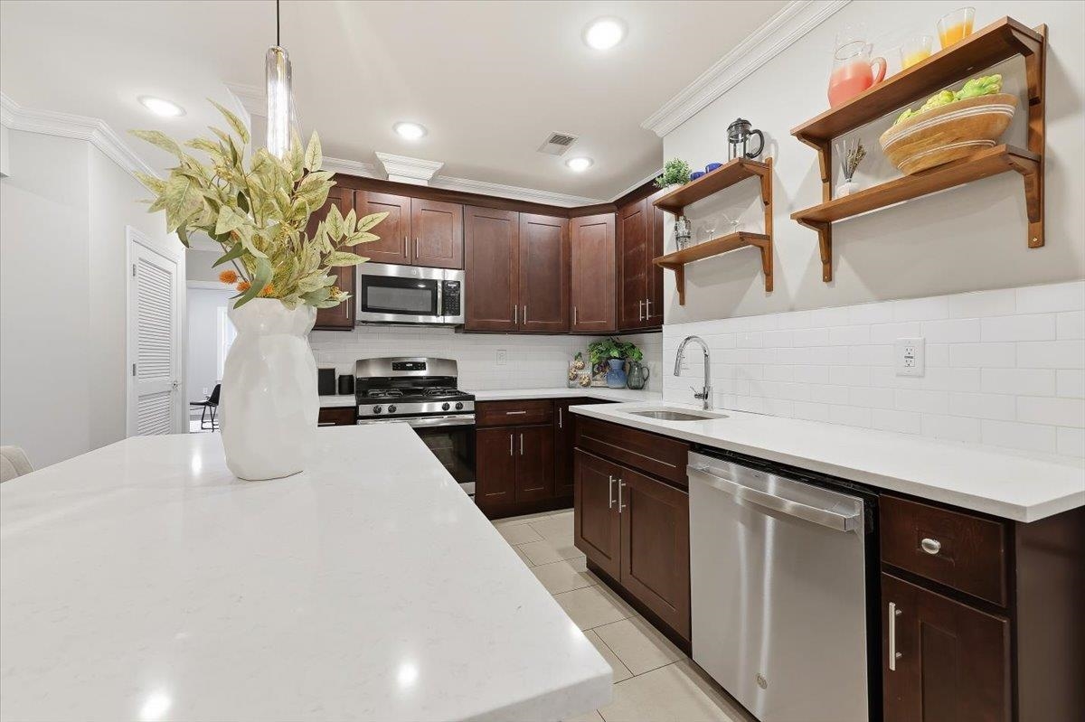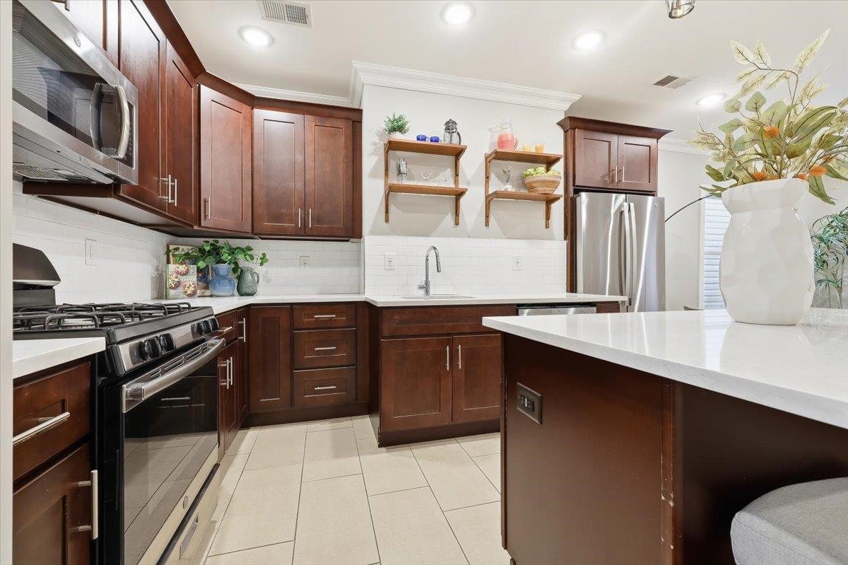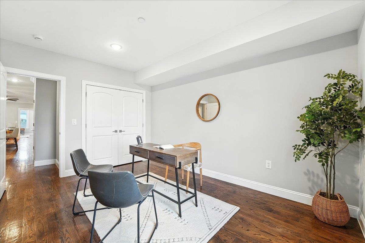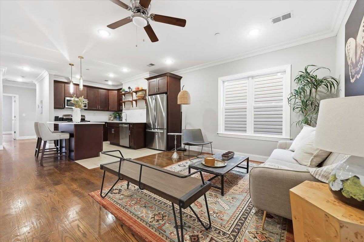 Tucked into a quiet corner of The Heights, this renovated home offers traditional elegance with modern upgrades galore. The floorplan showcases excellent square footage with 3 bedrooms, 2 baths plus formal dining room or flex space. Entering into the open plan kitchen and living area, beautiful details like crown molding, gleaming stained hardwood floors, ceiling fans and pendant lighting shine throughout. Bright white eat-in kitchen showcases custom shaker cabinets, quartz counters, subway tile backsplash and stainless appliances. Bathrooms are tiled to ceiling with convenient soaker tubs and shower plus vanity and oversized medicine cabinet mirror. Master en-suite impresses with two large windows, two closets plus additional walk-in closet with window for natural light for ultimate storage. Settled on a private tree-lined street, the vibrant community, eclectic shops, excellent schools and easy NYC access are no wonder why Jersey City Heights is one of the hottest neighborhoods.