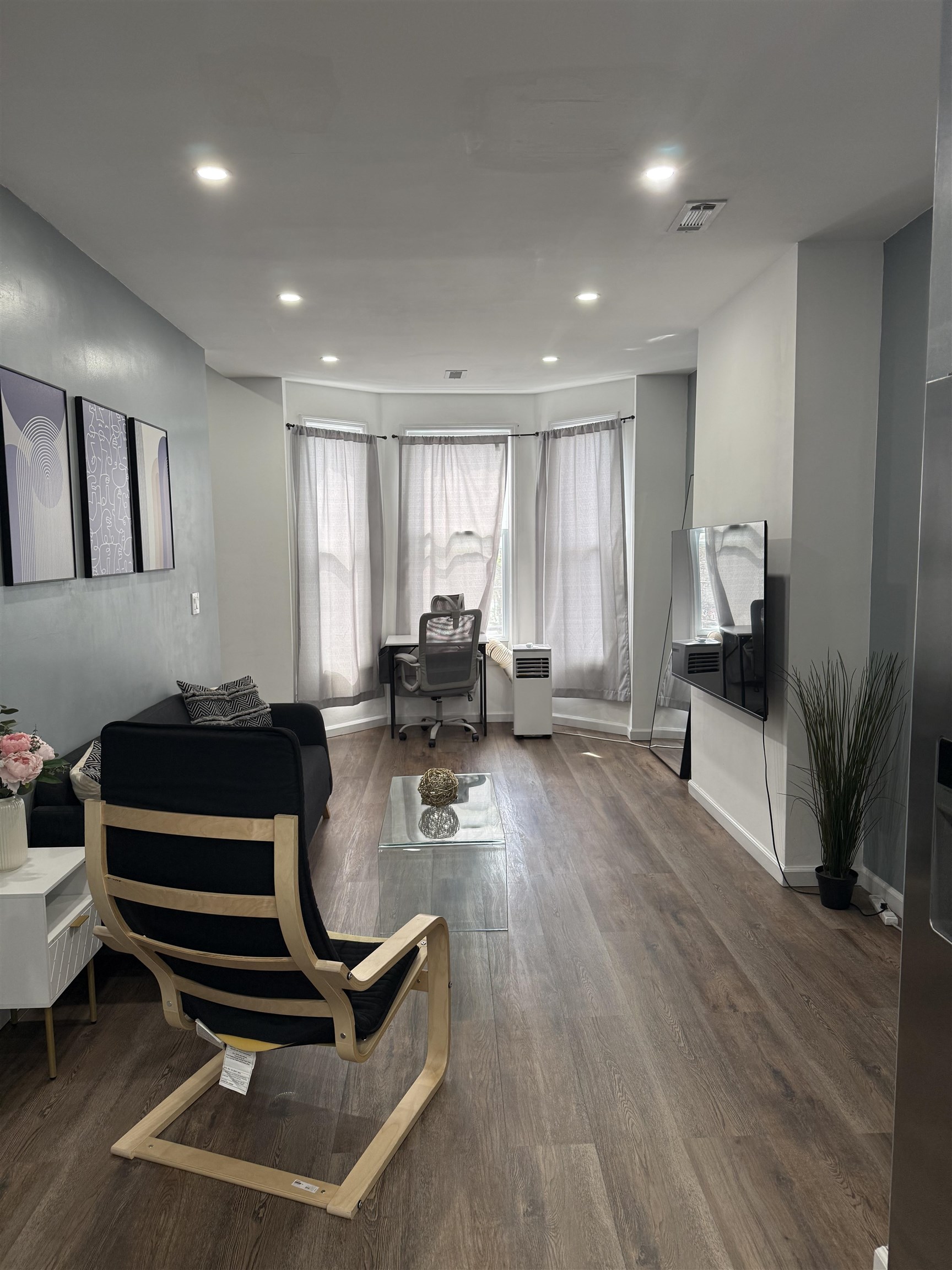 Fully furnished beautiful duplex spanning the second floor and third floor, featuring two bedrooms and one and a half bathrooms. This inviting unit offers high ceilings, a spacious layout, and a comfortable living environment. Located on a quiet residential block, it’s just minutes from shopping centers, restaurants, public transportation, and direct train access to NYC. A perfect combination of convenience, comfort, and privacy in a highly desirable area.