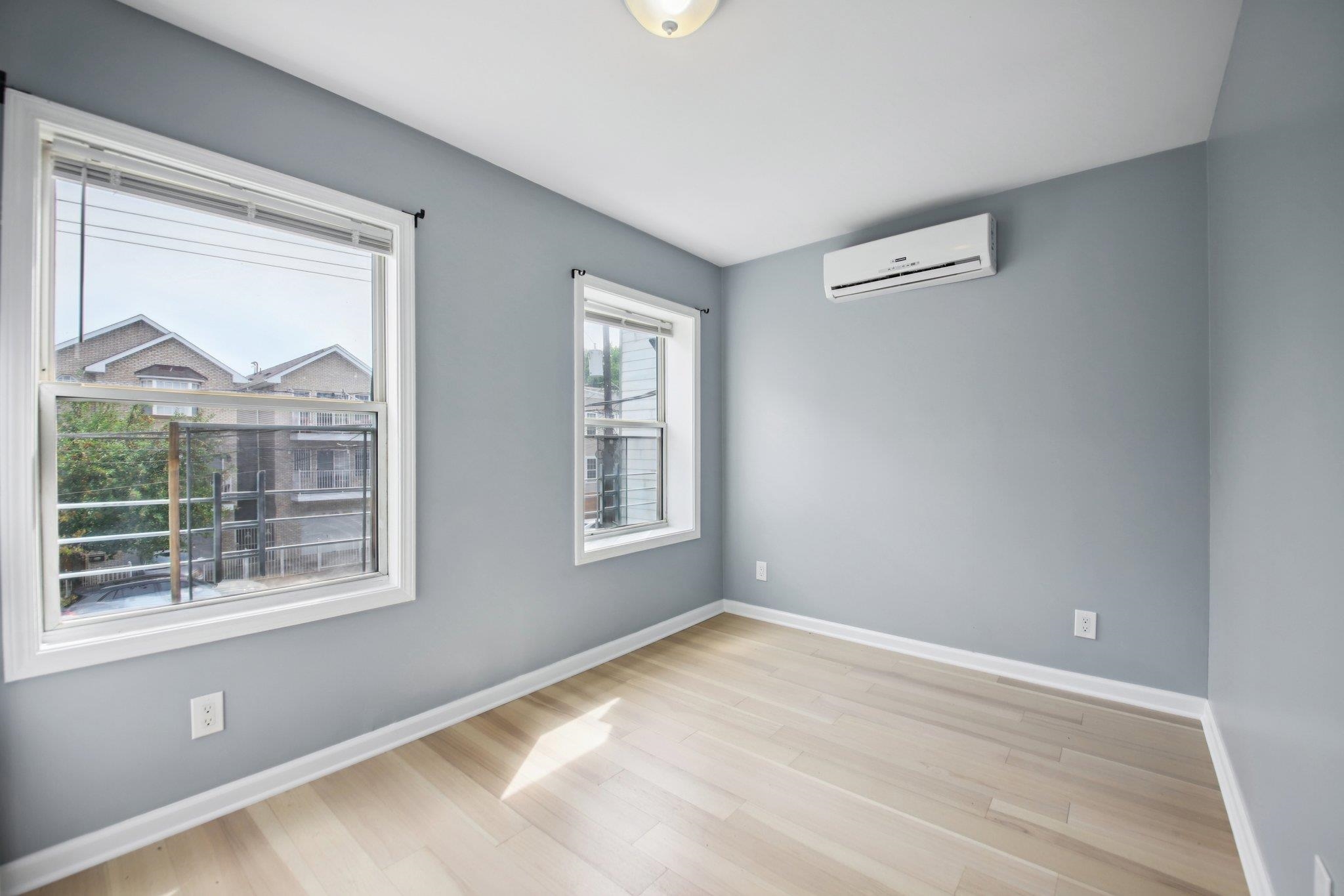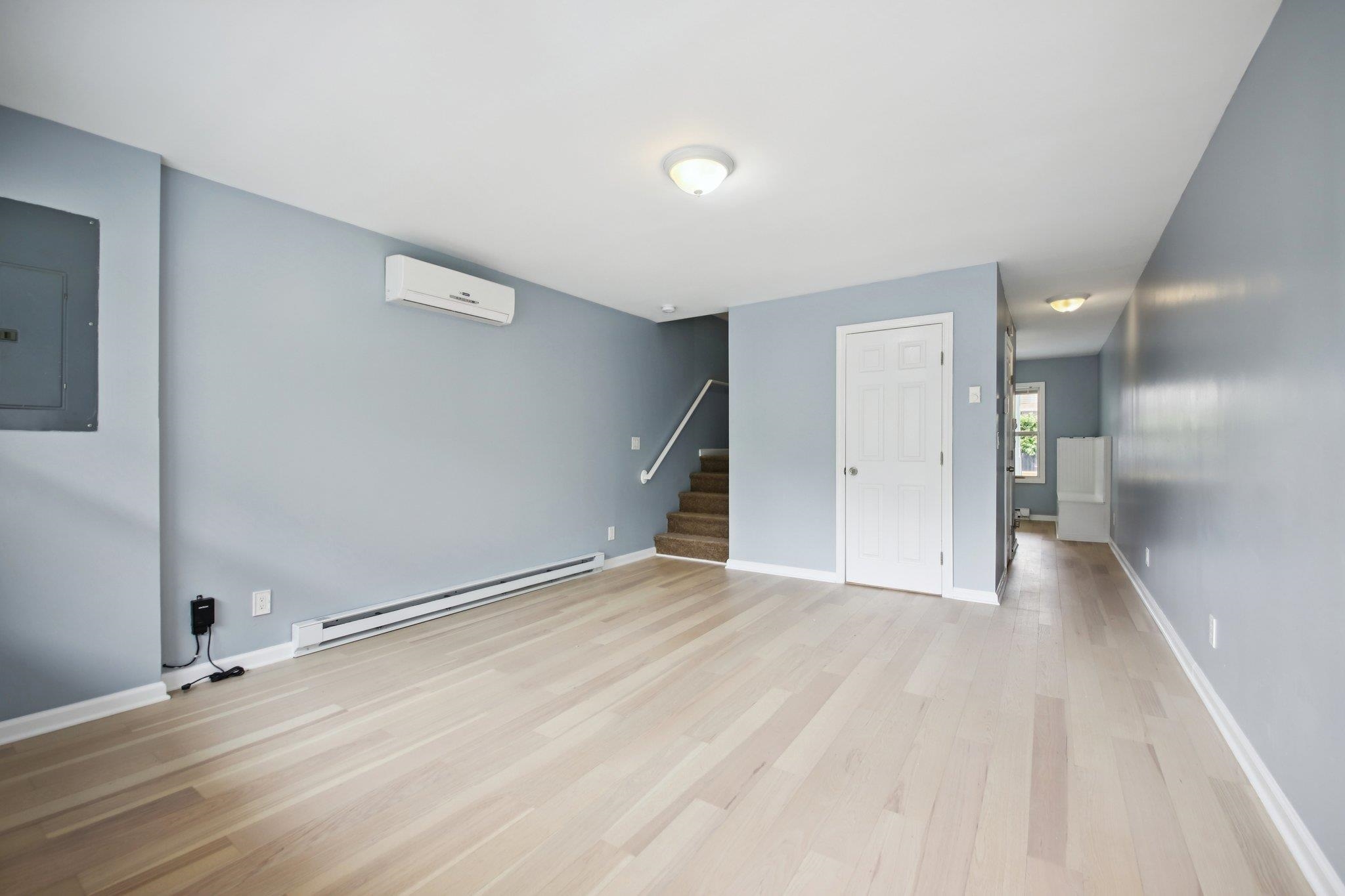 Renovated townhouse available just a short walk to Liberty State Park Light Rail stop providing an easy commute to both Midtown or Downtown Manhattan via Path connections at Exchange Place or Newport stops. Surrounded by new development, coffee shops, bars, restaurants, this cozy and updated 2bdrm+den/1.5 bath townhome offers a rare, private 3 CAR tandem parking area on the side of the home. First floor off your S/E facing front porch has a living room, half bath, renovated kitchen with quartz counter top, stainless steel appliances, and a built in dinning bench with storage. Kitchen opens to a spacious private deck and private backyard area for Summer entertainment. Second floor has 1 primary bedroom and 1 smaller bedroom and den/nursery/office, each with its own closet and split AC unit. Full bath with a tub and laundry unit completes the 2nd floor. The attic is unfinished, but provides plenty of additional storage! Min 16 month lease, 1.5 month security, NTN report, employment verification required. Pets ok on case by case bases with Landlord approval and additional fee.