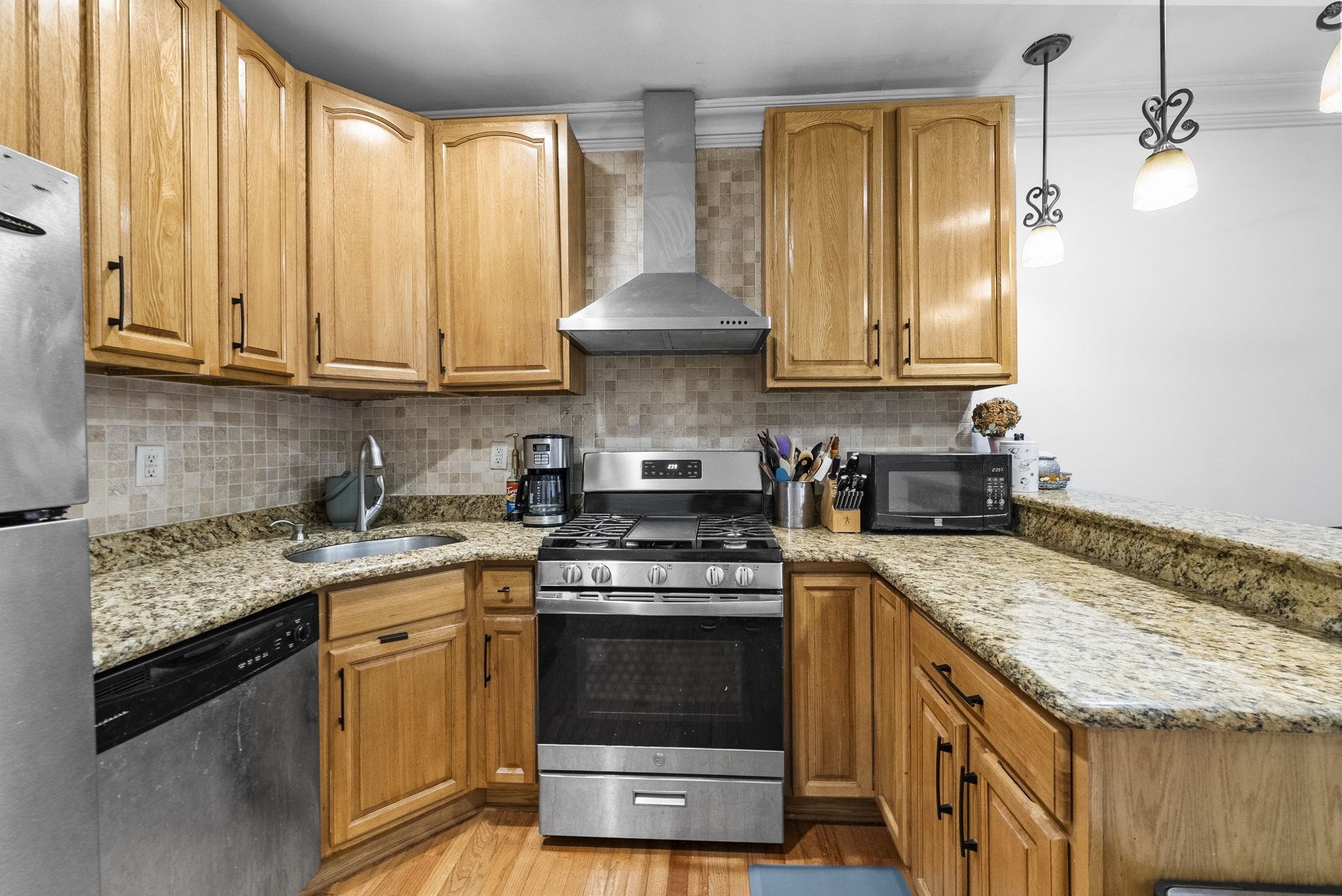 Set proudly atop New York Avenue this top floor Jersey City Heights two bedroom one bathroom condominium delights! High ceilings welcome you in and the open flow from room to room invite you to stay. The primary bedroom is flooded with natural light making it the perfect space to relax and unwind after a long day out on the town. The kitchen boasts a gas range, stainless steel appliances, granite countertops, large wood cabinets and a breakfast bar open to the living room for easy entertaining. Pass the bathroom down the hall to the second bedroom complete with ample storage and large french doors allowing the gorgeous eastern light to fill the room. Through the doors you’ll find your private deck with quiet east facing views, the perfect spot for a morning coffee as the sun rises over Manhattan. In the basement you have a large locked private storage room and free laundry machines. Packed with promise this space is situated a block from River View Park, and some of the best restaurants and coffee shops in NJ. NYC transportation steps away completes this incredible property, Don’t miss this opportunity to live the high life in the Heights!