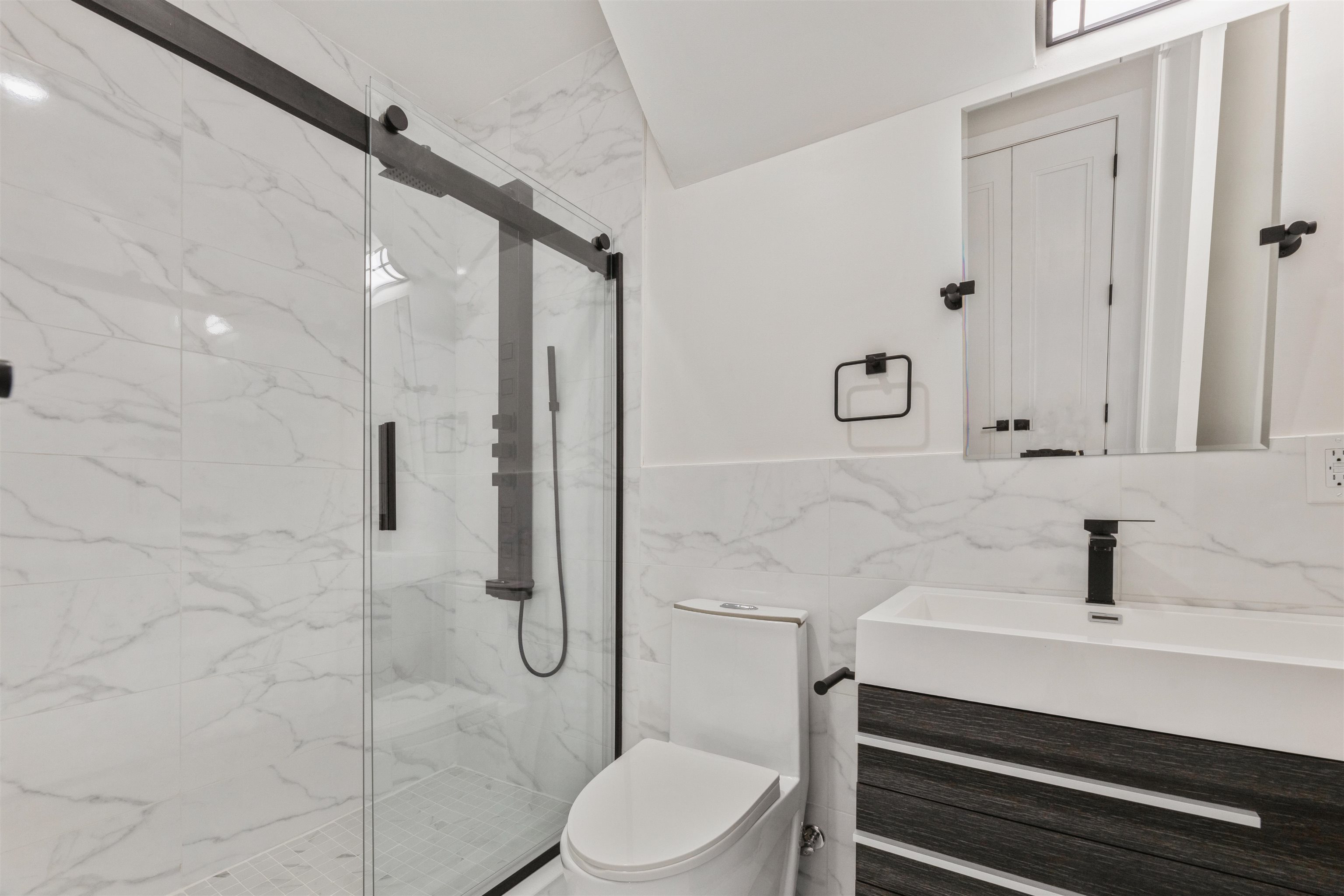 Welcome to the 259 Liberty Ave Condominiums located on the corner of Manhattan Ave & Liberty Ave, surrounded by a bevy of dining options, schools, parks, and much more! Composed of four uniquely styled homes, all with their own washer/dryer, this contemporary building stands out from the crowd with its two-toned façade and black trimmed windows. Step inside your new home each one ranging from 1420 to 1668 SQFT of livable space and soak in the natural light seeping through the windows on every corner of the floor; recessed lighting complemented against the light hardwood floors give a very earthy tone. An open concept floor plan gives ample space to host a full living and dining area set. Head over to the kitchen and gaze upon the lavishing two-toned cabinetry with navy blue matte finish below and gleaming white cabinets above, quartz countertops and backsplash, with state-of-the-art stainless-steel appliances, and low-hanging pendants complete the modern look. Units one, two and three have 3 bedrooms and 2 ½ baths, and unit 4 has two bedrooms and 2 ½ baths.. The bedrooms feature ample closet space as the bathrooms feature porcelain tile, beautiful farmhouse styled vanities with black trimmed finishes. Units two, three and four also include their own private roof decks with stunning skyline views. These thoughtfully designed homes offer a perfect blend of style, space, and convenience in one of Jersey City’s most vibrant neighborhoods.