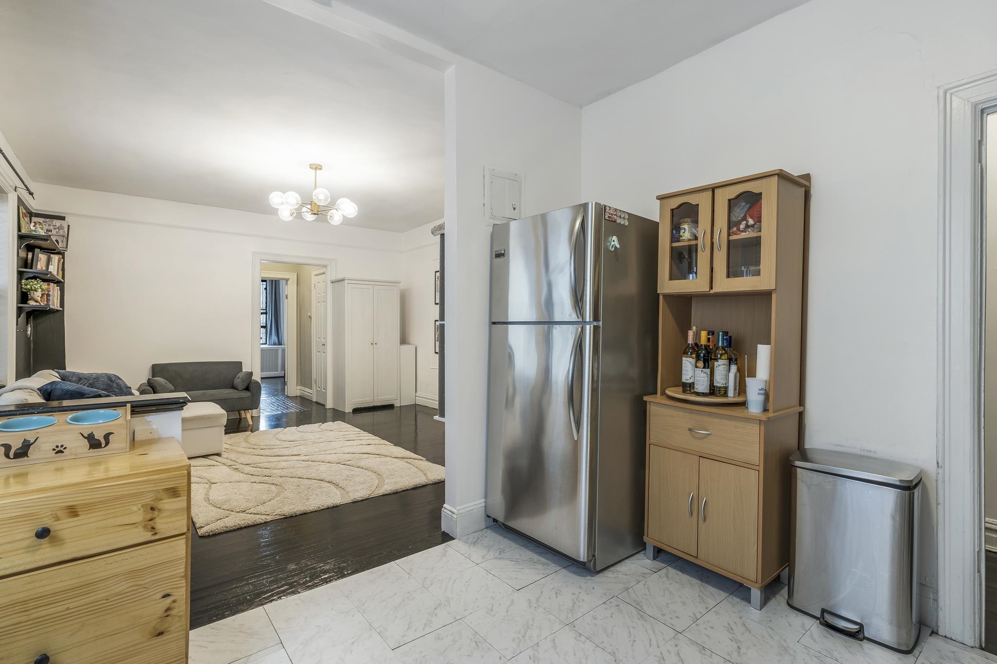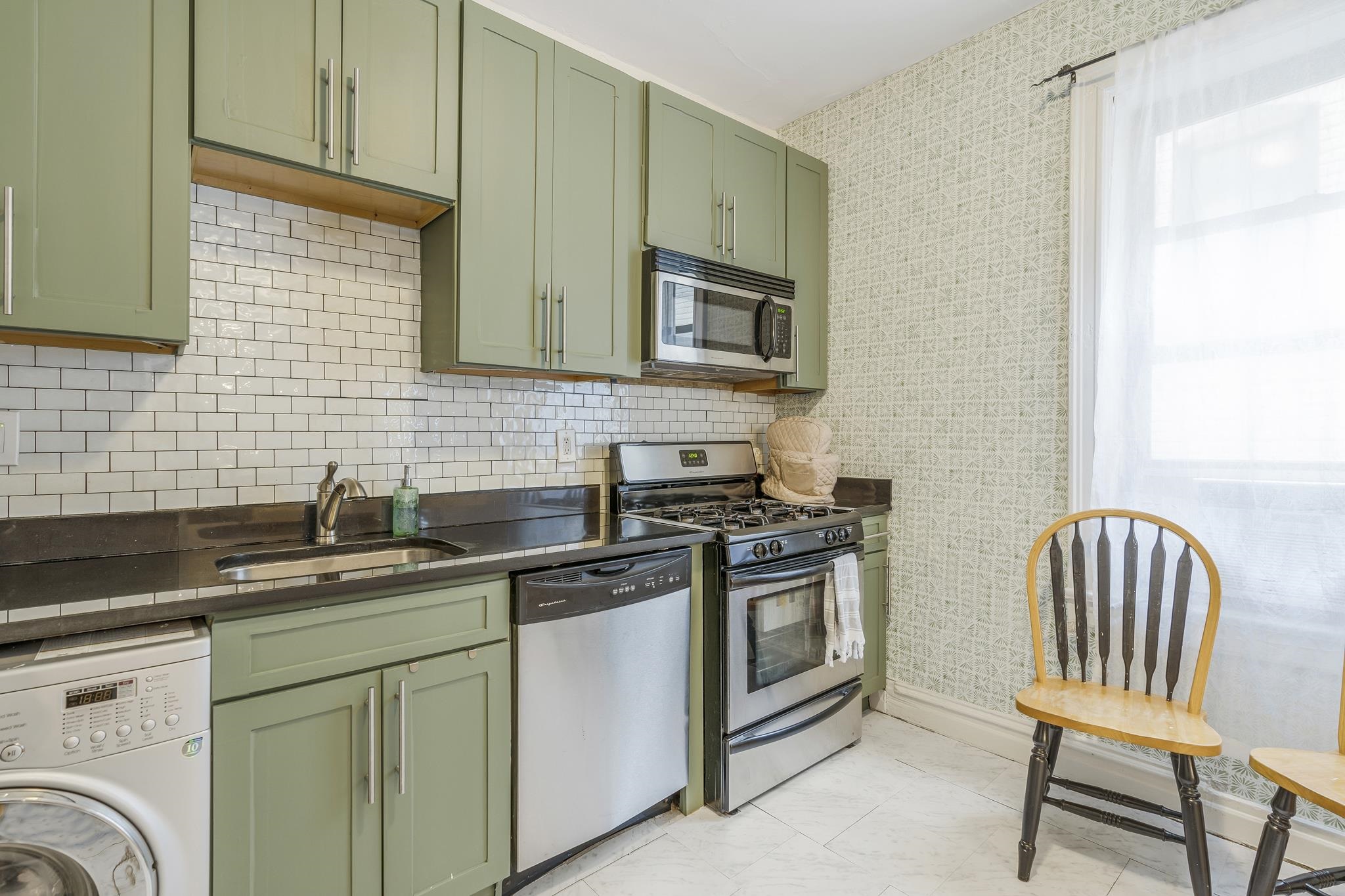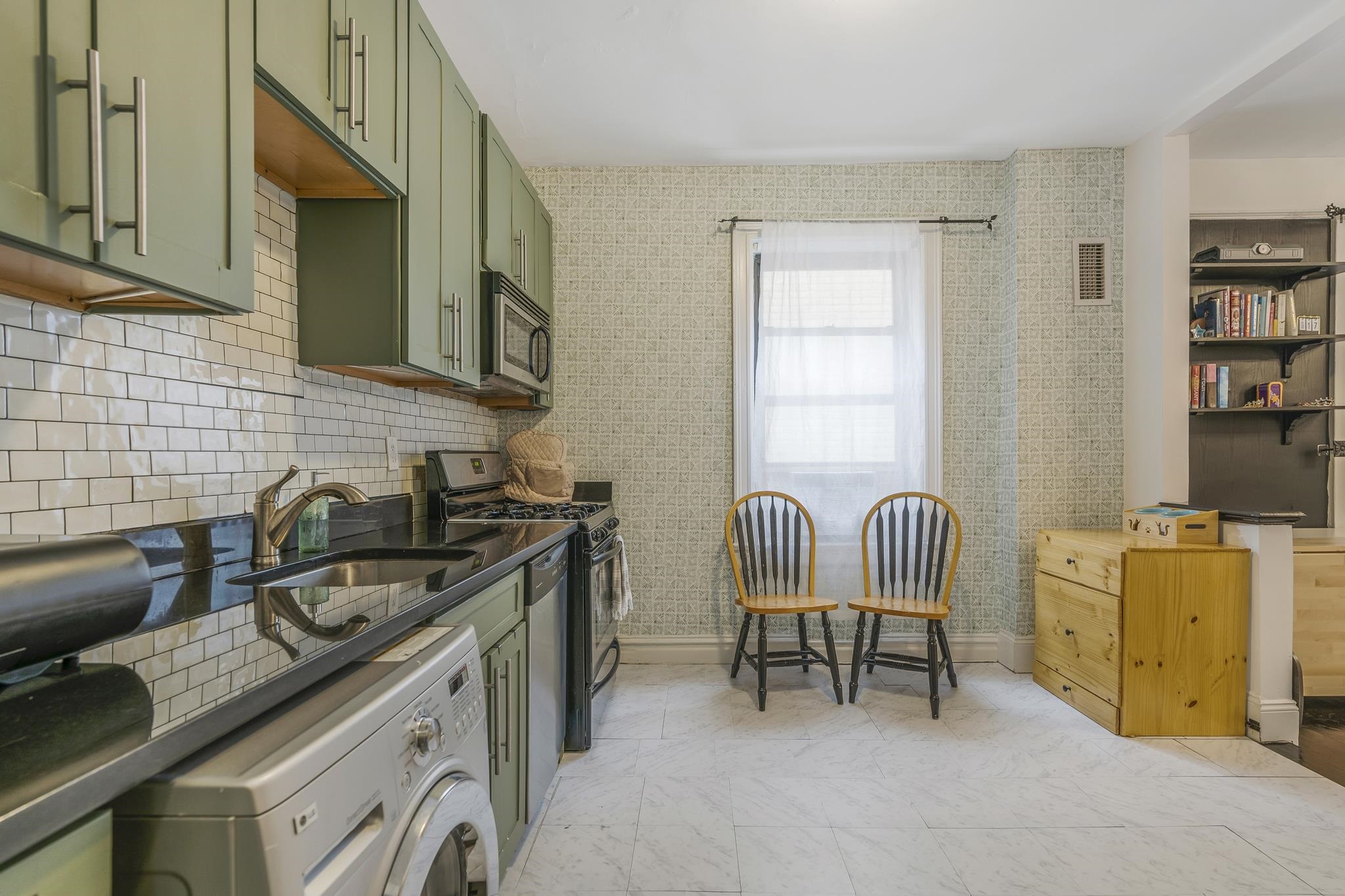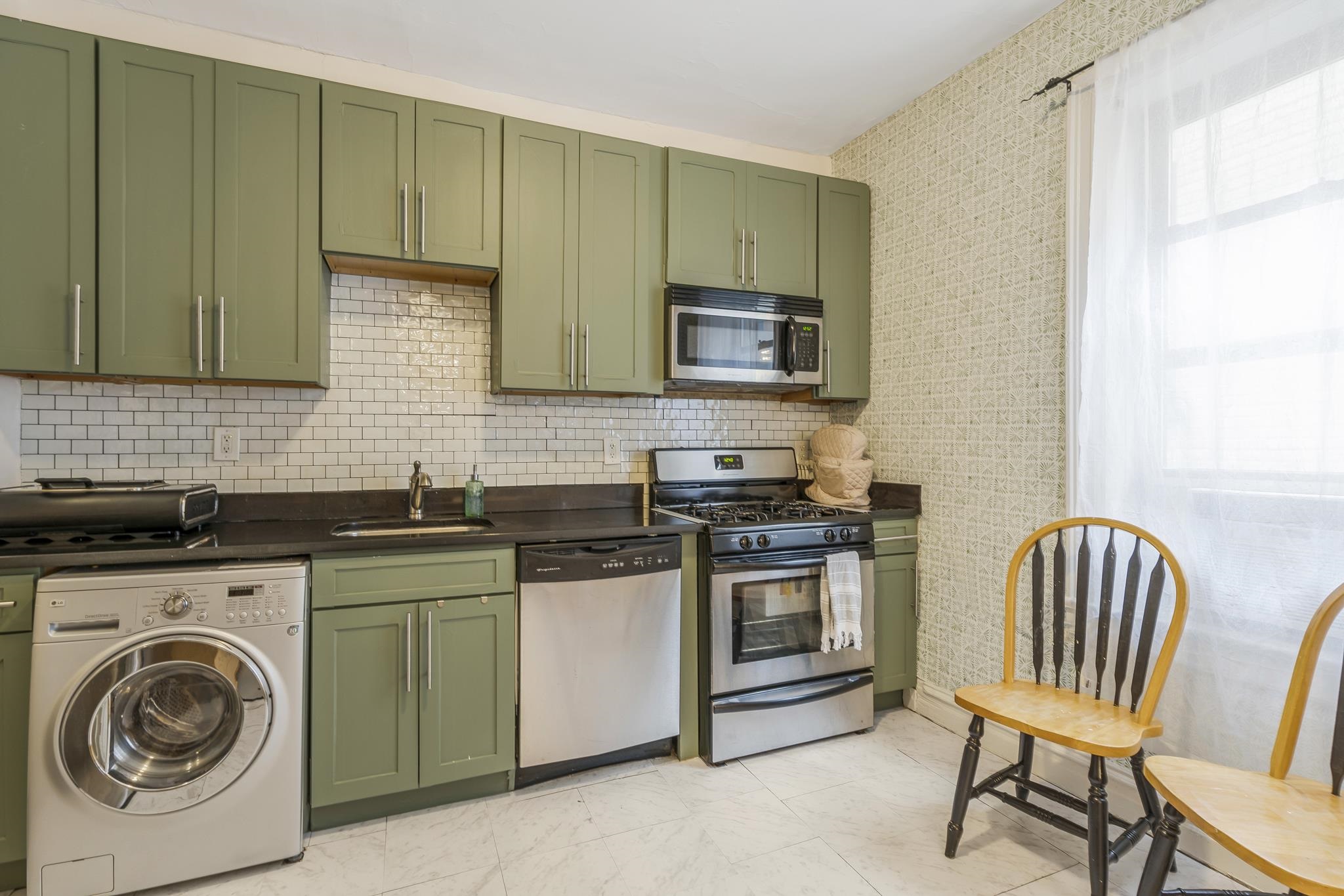 Welcome to this gorgeous mid-century condo in the heart of Jersey City! This spacious 1-bedroom, 1-bath end-unit has been beautifully updated, featuring a modern renovated kitchen and bathroom while maintaining its timeless charm. Inside, you’ll find hardwood floors, a dishwasher, and the convenience of an in-unit washer & dryer. The monthly maintenance fee includes heat and hot water, making this home both stylish and practical. Perfectly located just steps from Lincoln Park, one of Jersey City’s largest and most vibrant parks. You’ll be within walking distance to the Light Rail, St. Peter’s University, 24-hour Walgreens, restaurants, grocery stores, and shopping. For commuters, buses to the PATH and a direct route to Midtown Manhattan are right at the end of the street