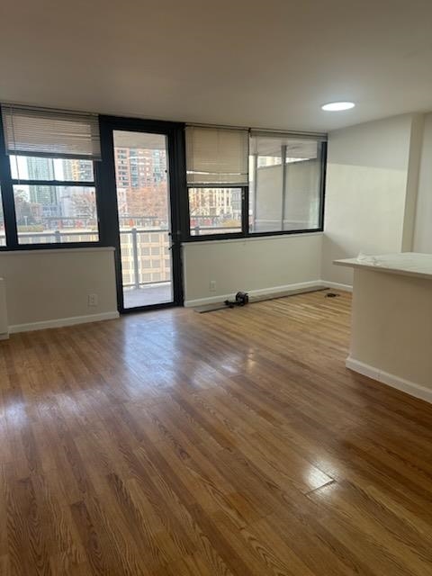 Corner one-bedroom unit with lots of natural light. Located in the heart of downtown Jersey City. This unit features a balcony, renovated kitchen, hardwood floors, walk-in closet, lots of closet space. Rent includes utilities (heat, hot water, gas & electricity). 24-hr doorman bldg. Gym & laundry room on premises. Near light rail, ferry, major transportation, supermarkets (Whole Foods & ShopRite), Newport mall, restaurants, etc.