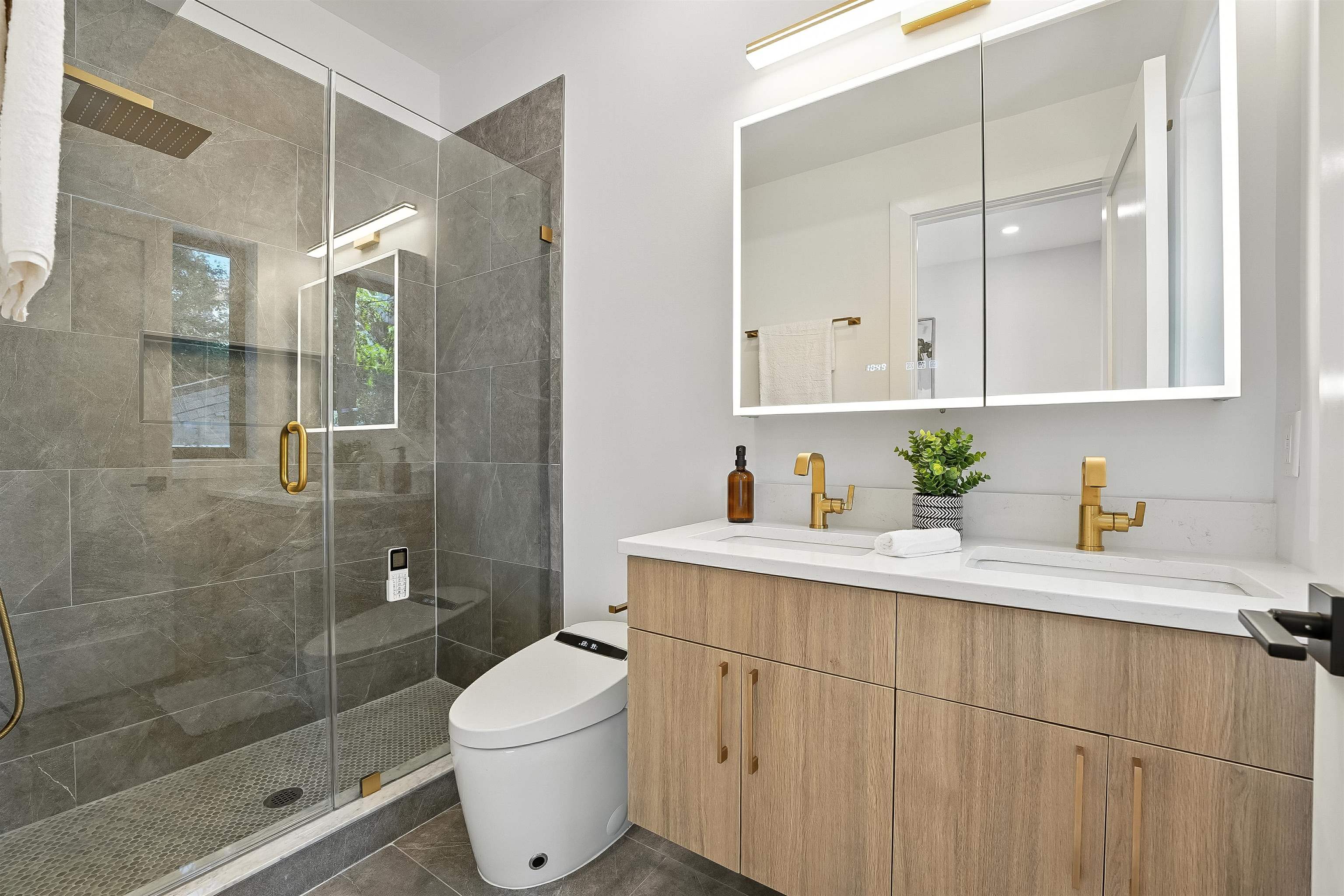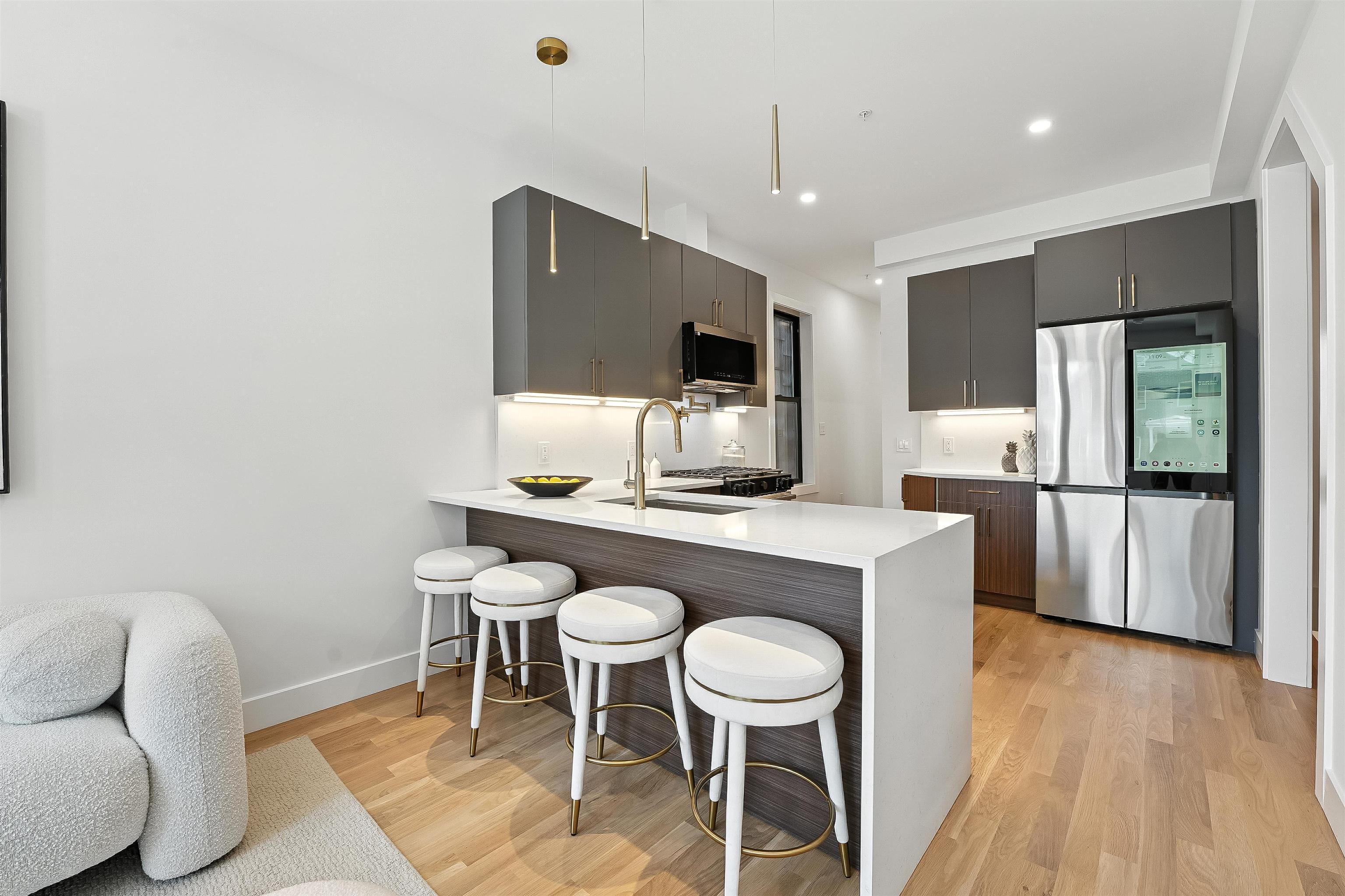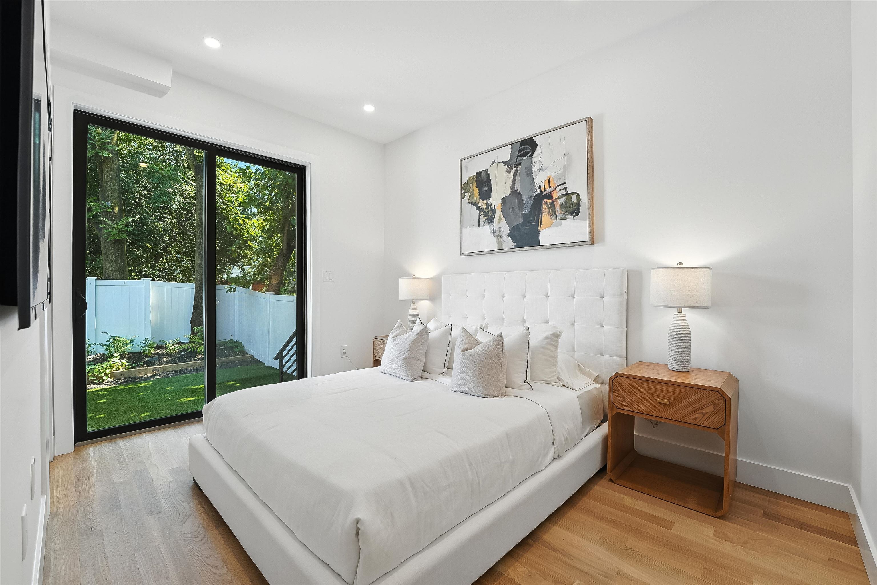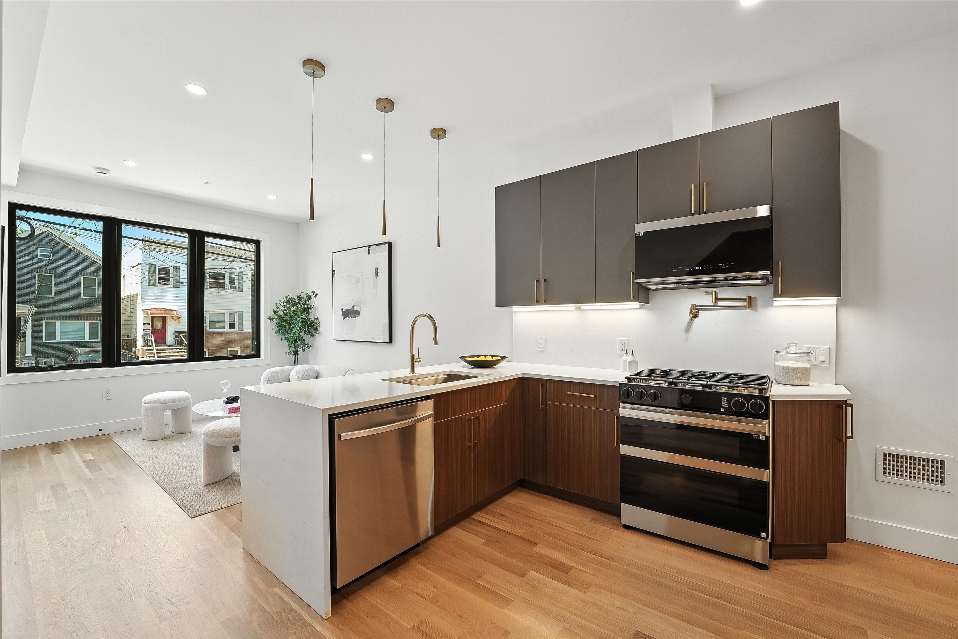EXCEPTIONAL VALUE AND INCREDIBLE OPPORTUNITY with one year of off-site parking prepaid and a five-year tax abatement approved. Located in the heart of the highly desirable Jersey City Heights, this meticulously rebuilt boutique building offers a limited collection of three distinctive residences, seamlessly blending elevated design with modern functionality. Perched above street level, this sun-filled 3-bedroom, 2.5-bath home provides enhanced privacy, an elevated perspective, and refined finishes throughout—along with the rare luxury of a truly private backyard, creating a peaceful retreat from city life. A classic red brick façade with bold black accents delivers timeless curb appeal, while the interior features soaring 10-foot ceilings, solid white oak flooring, recessed lighting, and large Andersen windows that create a bright and airy living environment. The open-concept chef’s kitchen anchors the home with sleek two-tone cabinetry, quartz waterfall countertops and full-height backsplash, a pot filler, and a full suite of high-end smart Samsung appliances—perfectly suited for both everyday living and entertaining. The primary suite features double closets and an en-suite bath with dual vanities, designer fixtures, and a premium smart toilet. Two additional bedrooms offer flexibility for guests, family, or a home office, complemented by a beautifully appointed full bathroom. Step outside to your private backyard oasis, finished with low-maintenance artificial turf—ideal for entertaining, relaxing, grilling, or pets. Designed for efficiency and modern comfort, the home includes spray foam insulation and smart home features such as a Honeywell thermostat, Ring doorbell, keyless entry, and Wi-Fi–enabled appliances. A private 14’ x 6’ storage room on the lower level provides convenient space for bikes, strollers, and seasonal items. NYC access is seamless via the NJ-119 bus to Midtown, Citibike or the NJ-83 bus to the Journal Square PATH, or an easy 10-minute walk to the station. Enjoy a vibrant neighborhood with popular cafes, restaurants, shops, and nearby parks featuring walking trails, sports fields, playgrounds, an ice rink, and a seasonal heated pool.