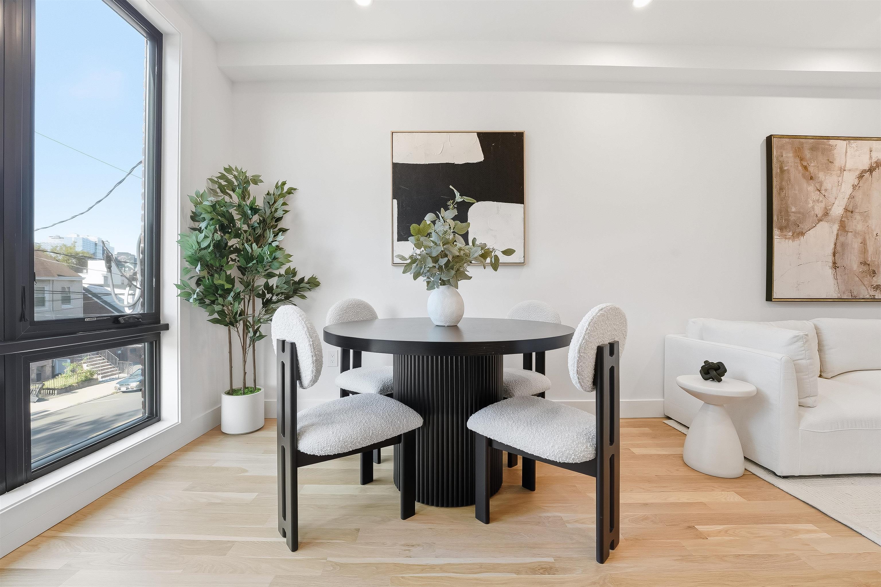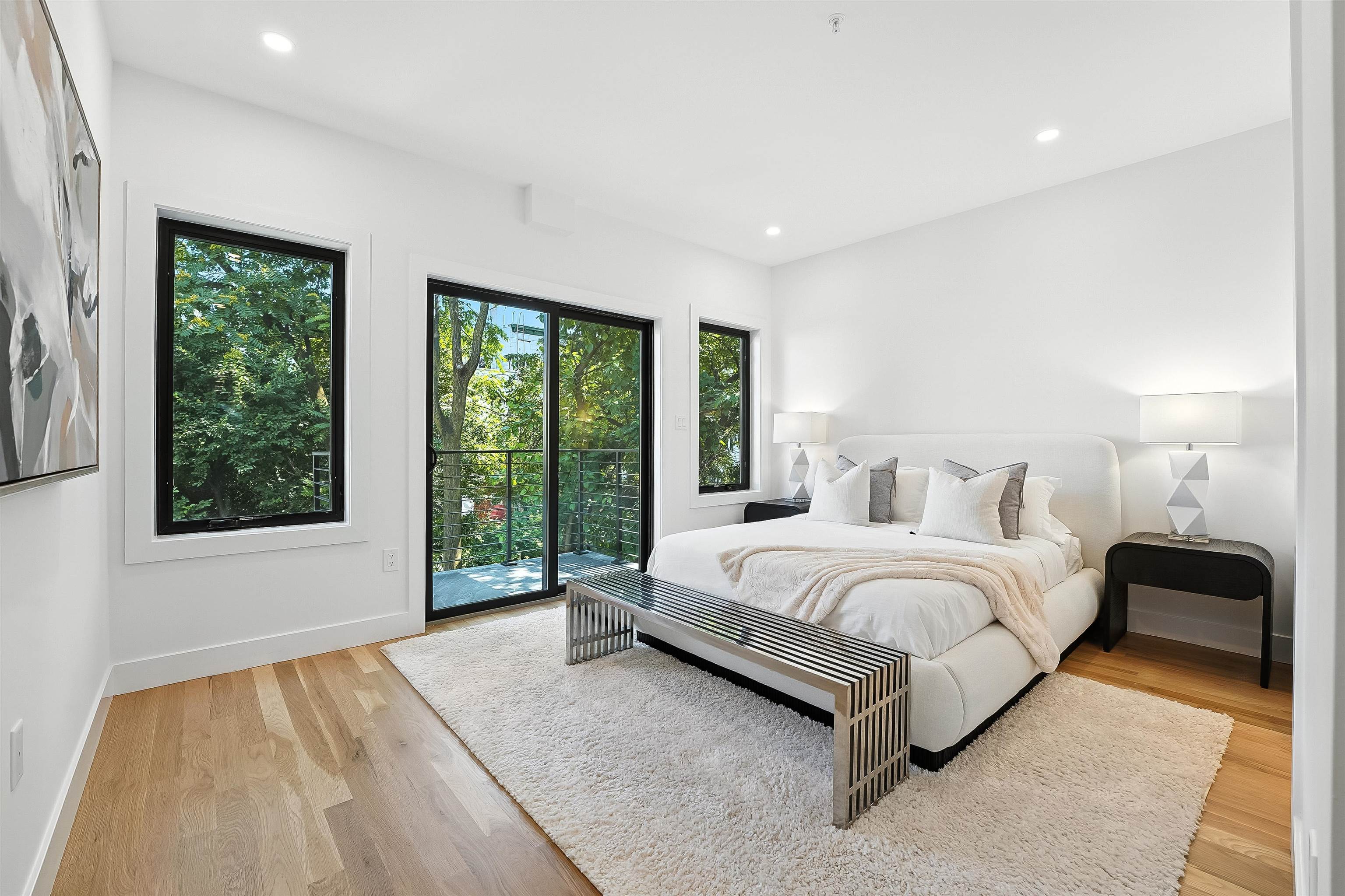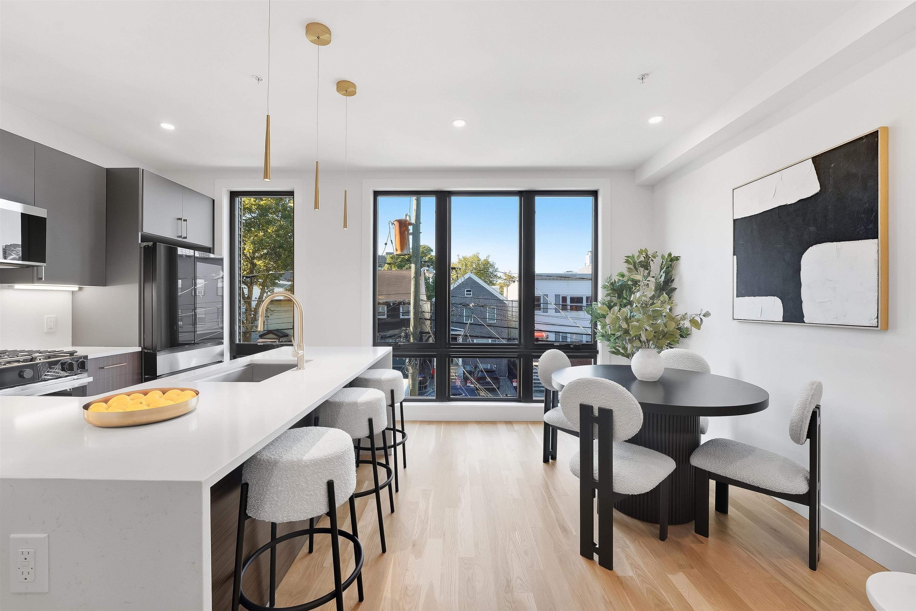 Nestled in the highly sought-after Jersey City Heights neighborhood, this completely reimagined and meticulously redesigned boutique building offers three exceptional units that seamlessly blend elevated luxury with modern convenience—including one year of off-site parking. This sun-drenched 3-bedroom, 2-bath residence features refined finishes and thoughtful design. The timeless red brick façade, complemented by bold black accents, delivers standout curb appeal. Inside, high ceilings, white oak flooring, recessed lighting, and floor-to-ceiling windows create a bright and airy living space. At the heart of the home, the chef’s kitchen makes a bold statement with sleek two-tone cabinetry, quartz waterfall countertops and full-height backsplash, pot filler, and a suite of top-of-the-line smart Samsung appliances. Sleek finishes and thoughtful design make the space as functional as it is beautiful — perfect for both everyday cooking and effortless entertaining. The primary suite features double closets and a spa-inspired en-suite bath with double vanities, designer fixtures, and a high-end smart toilet. Step out onto your private balcony and enjoy the tranquil setting—perfect for morning coffee or an evening drink—your personal escape from the bustle of city life. Two additional bedrooms provide flexibility for children, guests, or a home office, served by a stylish full bathroom. Engineered for energy efficiency and modern comfort, the home includes spray foam insulation, Andersen high-performance windows, and a full fire sprinkler system. Smart home features include a Honeywell thermostat, Ring doorbell, keyless entry, and Wi-Fi–enabled appliances throughout. A dedicated private (9′ x 5′) storage room on the lower level provides space for bikes, strollers, and any other storage needs. Commuting to NYC is effortless—take the NJ-119 bus directly to Midtown Manhattan; hop on a Citibike or NJ-83 bus to Journal Square PATH or simply enjoy a 15-minute walk to the station. The neighborhood is alive and amazing with many local favorites—restaurants, cafes, shops—and beloved parks like Pershing Field, offering walking trails, multiple sports fields, playgrounds, an ice rink, and a seasonal heated pool. 5-year tax abatement granted.
