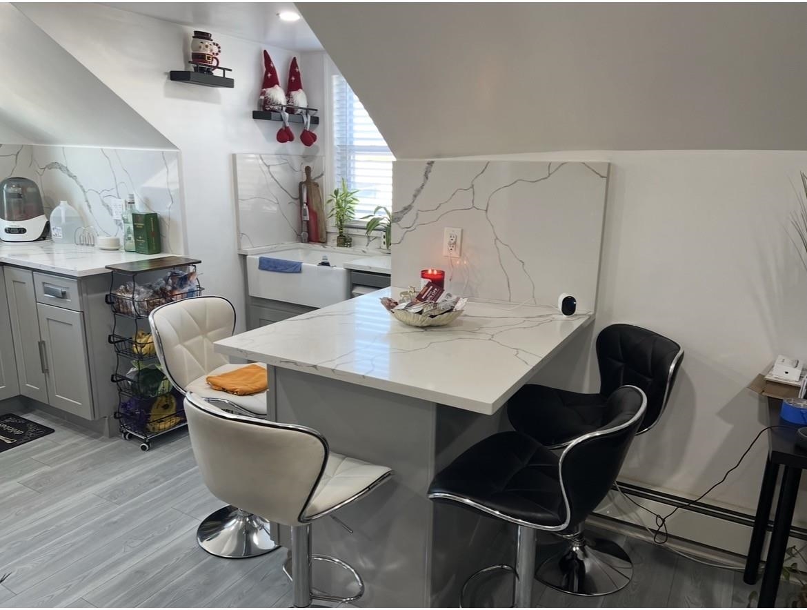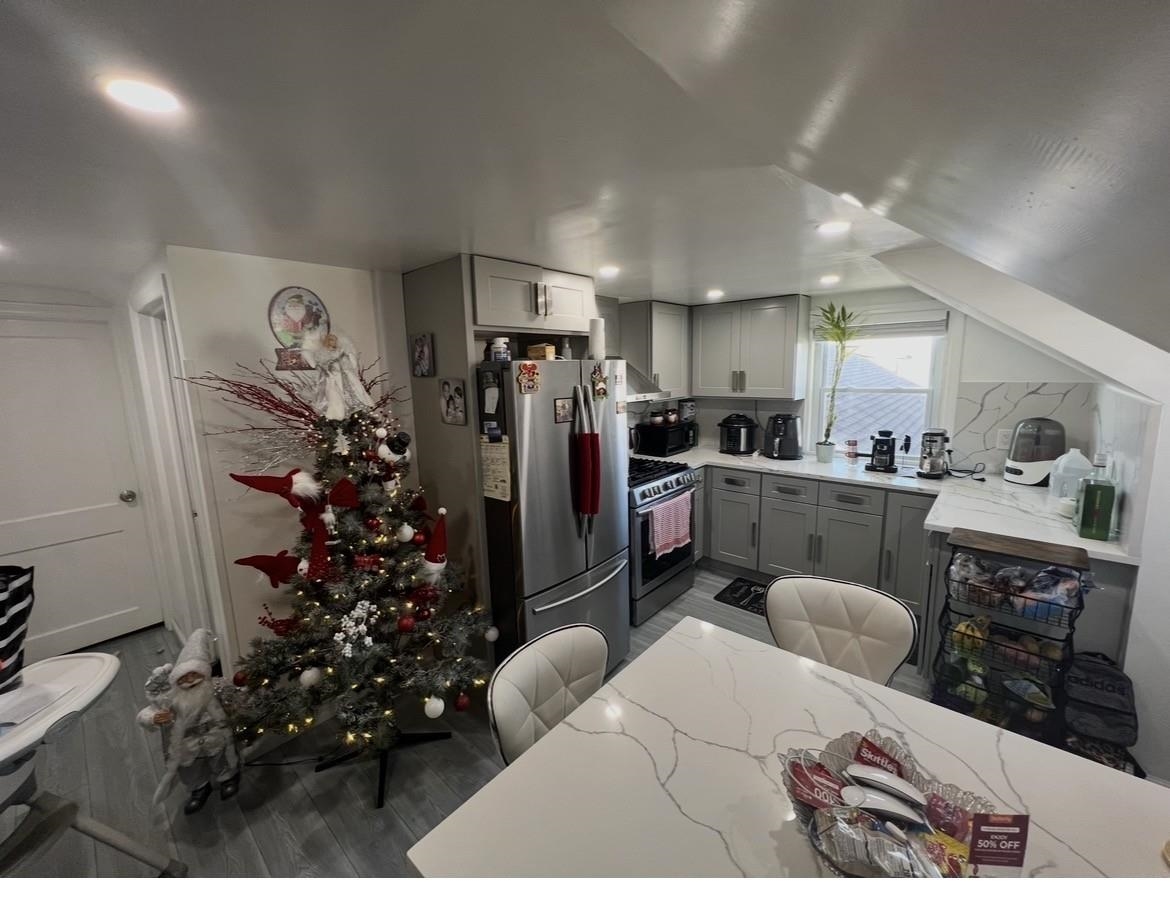 Beautiful and renovated apartment located on the second floor of a two-family building. It features two large bedrooms with closets and ample storage in each, and a large bathroom. The renovated kitchen includes all appliances, quartz countertops and island, a porcelain sink, and a dishwasher for added convenience. The most attractive feature of this beautiful and convenient apartment, which has everything for your comfort, is that the owner pays for hot water, cold water, and heating. The tenant only pays for electricity. For added security and peace of mind, the property has a security camera system. One month and half of security deposit. No pets.