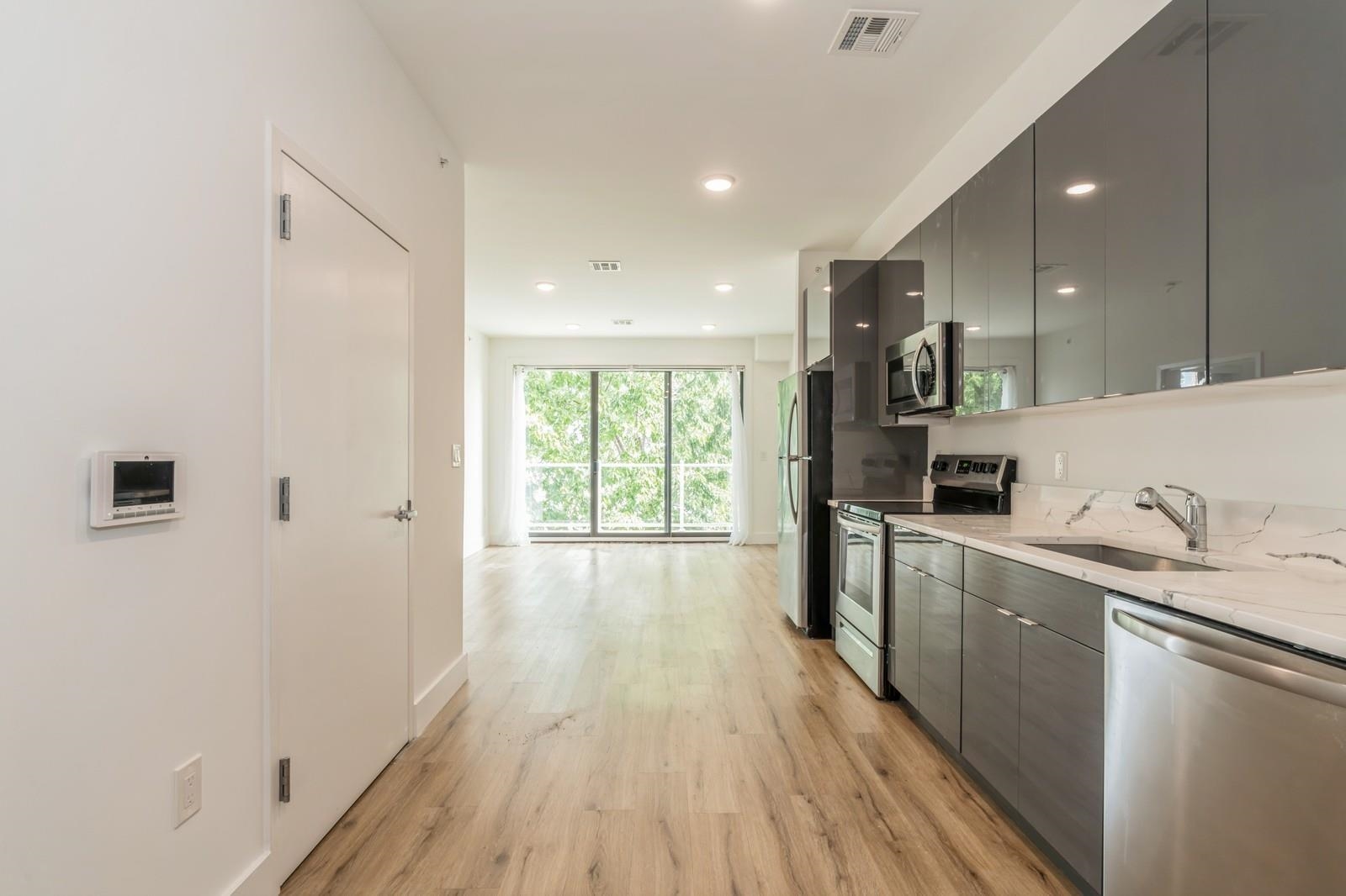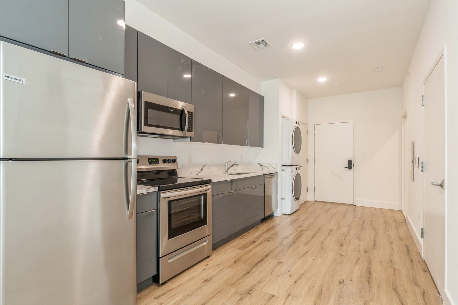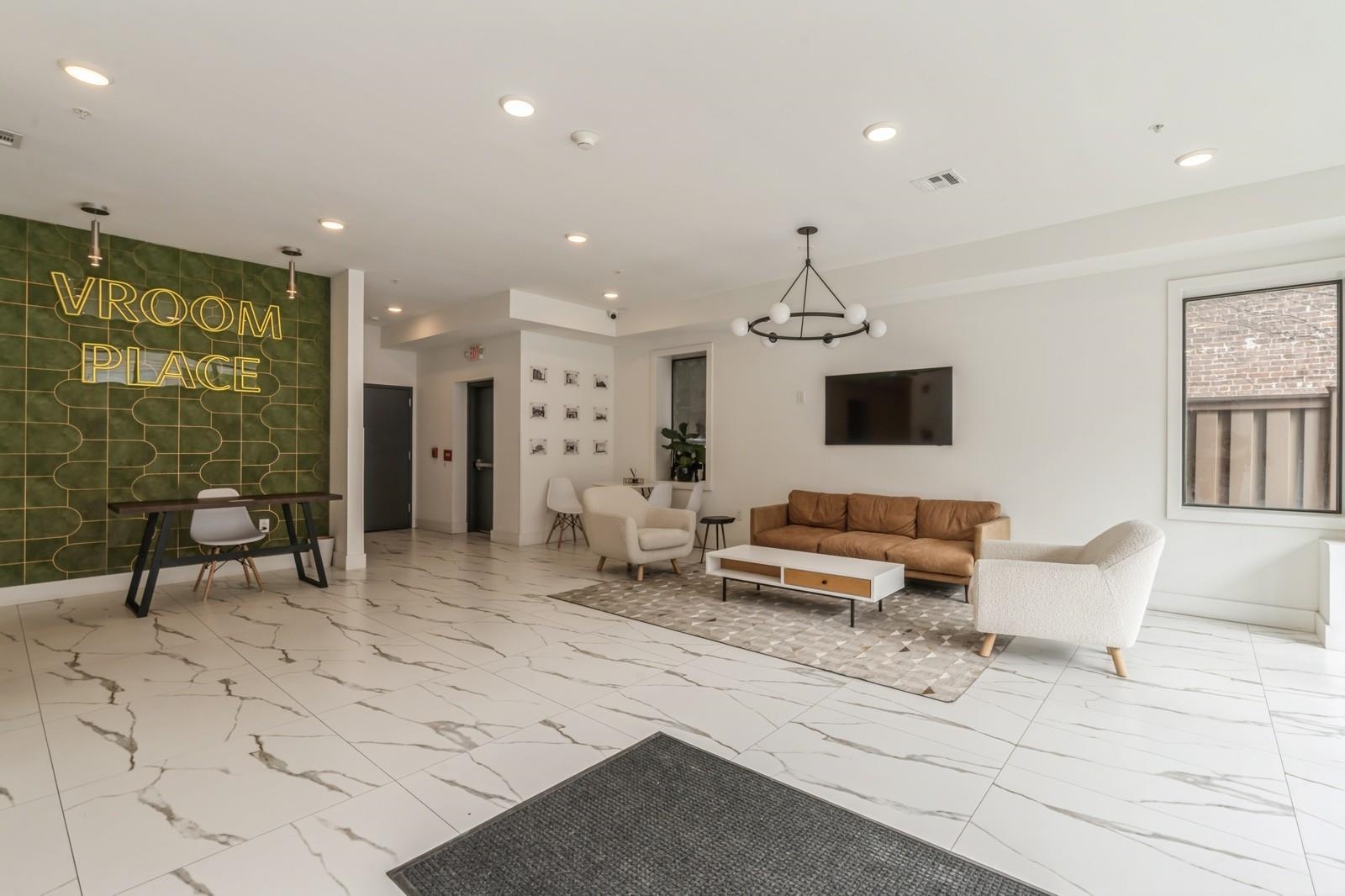 Take advantage of our limited-time offer—sign a lease by 12/1 and enjoy $1,000 off your first month’s rent. Welcome to Vroom Place in Journal Square, where modern design meets light-filled living. Perfectly situated just a few blocks from the PATH station, this boutique development offers exceptional convenience in one of Jersey City’s most walkable neighborhoods. Perched on the top floor, this residence is bathed in natural light from expansive windows that frame unobstructed New York City skyline views. Step onto your private balcony to enjoy morning coffee or unwind as the city lights sparkle at dusk. The building’s rooftop deck and garden provide additional spaces to take in sweeping vistas and fresh air. Inside, each home is designed with thoughtful attention to comfort, functionality, and style. Features include 10’ high ceilings, floor-to-ceiling glass sliding doors, and open layouts that maximize light and space. Select residences offer walk-in closets and dedicated workspace nooks, ideal for modern city living. The interiors showcase designer custom cabinetry, European porcelain tile, waterproof LVP flooring, LED lighting, central HVAC, and vented cooking hoods, creating a seamless blend of luxury and efficiency. Enjoy the convenience of in-unit washer and dryer, Latch keyless entry, Amazon Hub package lockers, and video intercom system. The building is also pre-wired for Verizon FiOS, with Wi-Fi in all common areas and security cameras throughout. Residents can gather in the clubhouse lounge, grill on the rooftop deck, or safely store their bikes in the bicycle room. The building’s soundproof construction ensures peace and privacy within every home. With the Journal Square PATH just a 10-minute walk away, you’ll have effortless access to Downtown Jersey City, Hoboken, the Financial District, and Manhattan. Discover a home designed to bring the city skyline and natural light right to your doorstep. One-year lease minimum. Pets welcome for an additional $50/month.
