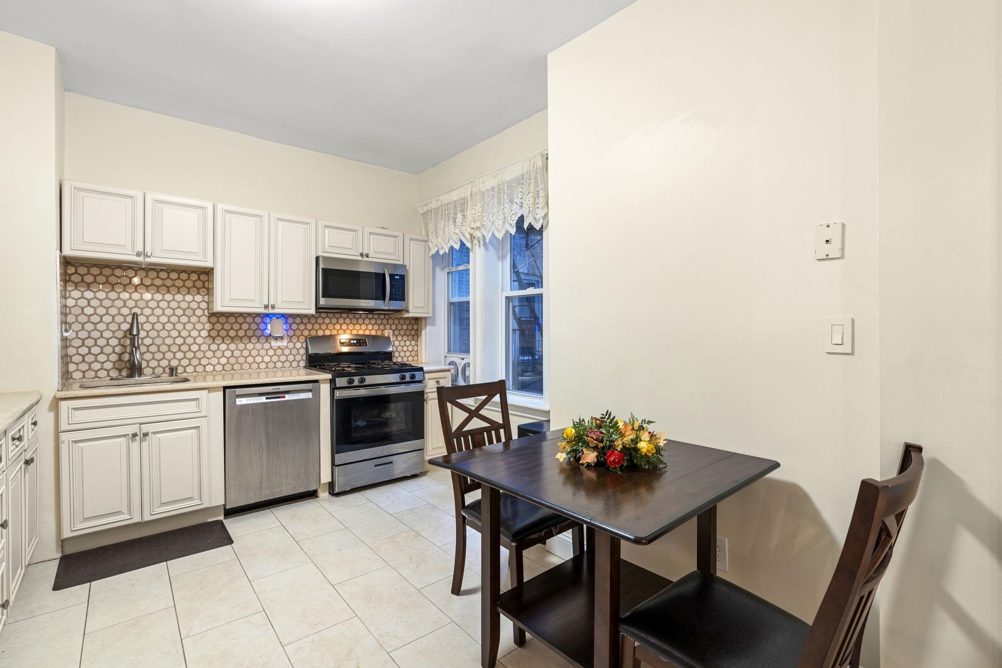 Amazing Location!!!! This is an incredible opportunity for a furnished unit in a well-kept home, ideally situated just a block from the PATH station. Available January 2026. check Video- https://vimeo.com/1143678239 This conveniently located home is just a stone’s throw from PATH, offering both charm and ease for commuters. Inside, you’ll find beautiful hardwood floors and a spacious kitchen featuring granite countertops, custom wood cabinets, and stainless steel appliances. The generous layout boasts a large living room, a dining room that can double as a home office, an eat-in kitchen, a roomy bedroom, and a cozy second bedroom. Plus, there’s a lovely private sunroom that adds to the home’s appeal, making it a perfect getaway for fresh air or great light. This charming building also includes an on-site laundry facility. It’s available fully furnished for short-term leases of 6 months or one plus year (The short-term rate is $2850 per month, which includes utilities up to $250).