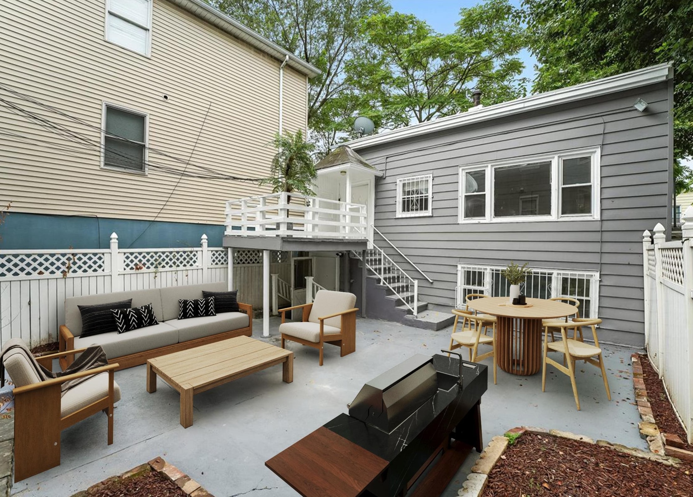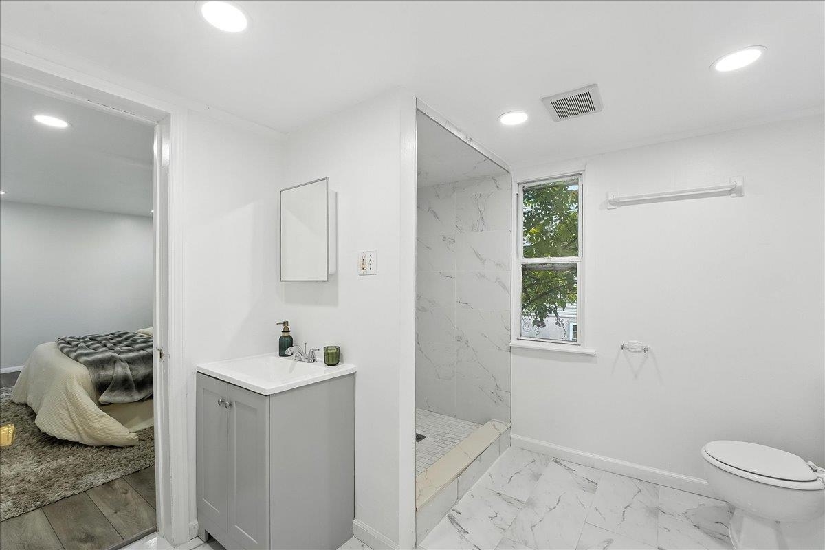 In a quiet pocket of Jersey City Heights, this newly renovated property offers NOT ONE, BUT TWO distinctive residences. The main building features two rental units plus a bonus basement suite, each designed with modern finishes and inviting spaces. Tucked away at the rear, the carriage house serves as a private single-family home with 3 bedrooms, 2 bathrooms, and a charming porch. Together, these residences present a standout investment opportunity, blending timeless character with contemporary comfort and long-term value. It’s a turnkey opportunity for investors—or those seeking passive income with the upside of living in a newly refinished home. Just blocks from beautiful Leonard Gordon Park or Pershing Field Park & Reservoir, and walking distance to charming local eateries like Dulce de Leche bakery and Central Avenue, this property is poised for success. Catching the eye with curb appeal, the gray siding and crisp white trim invite you into the main home. Inside, the lower duplex spans two stories, offering 3 bedrooms, 2 full baths, a downstairs bonus room with wet bar, and access to the backyard. Wide plank floors and carved wood banisters add warmth and craftsmanship. Upstairs, a second unit awaits with one bedroom plus two flexible dens. Timeless crown molding and a bay window offer a statement piece in the bedroom, while the additional den spaces provide a perfect office, guest room, or creative space. In the kitchen, tile floors provide durability, while black quartz counters and white shaker cabinets strike a clean, modern tone. Each bathroom is finished to the ceiling in tile, plus features like built-in shower shelves for thoughtful storage. Tucked behind the main home, the carriage house is a hidden gem: two levels, two bedrooms, two baths, and its own private deck. With finishes echoing the main house, this standalone ADU feels cohesive yet independent—ideal for long-term tenants, visiting guests, or a boutique-style rental. Located near Riverview-Fisk Park, vibrant Palisade Avenue, and quick routes to Hoboken and NYC, this property promises lifestyle and location in equal measure. Jersey City Heights is known for its eclectic vibe, excellent parks, great community and easy NYC access.