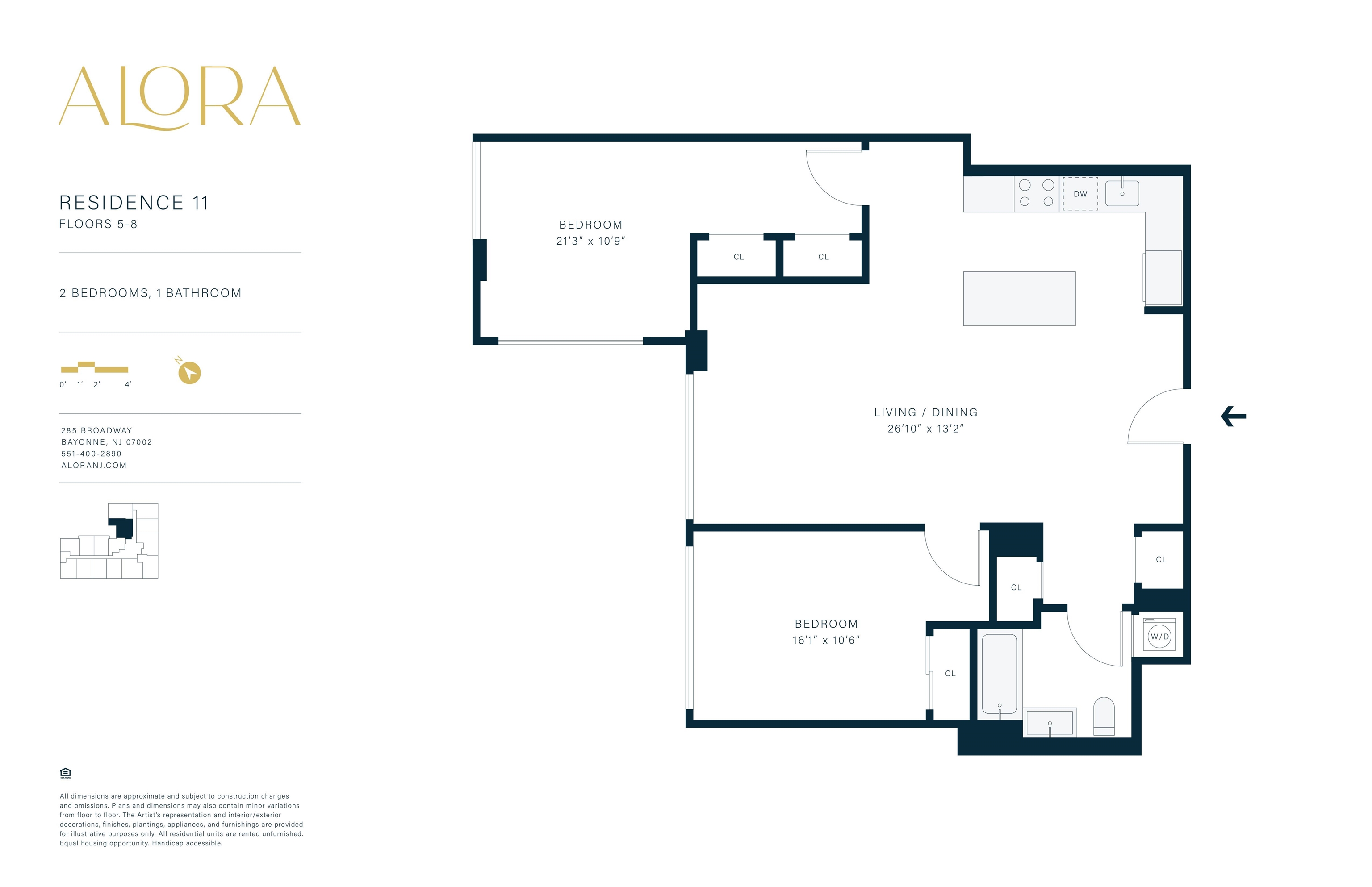 2 months free on an 18- month lease. *net effective rent is advertised. Alora is Bayonne, NJ’s newest apartment community, a tight-knit community creating an urban oasis closely connected to Jersey City and Downtown Manhattan. Thoughtfully designed to enhance every moment, the residences at Alora offer light-filled spaces with finely crafted details and elegant finishes. Breathtaking panoramic vistas set the stage for your exclusive sanctuary. An array of indoor and outdoor club-like amenities caters to your every desire, allowing you to pamper yourself effortlessly. The Alora is a masterpiece of modern elegance, defined by exquisite details at every turn. A resplendent metal panel facade lends a striking presence, while expansive private terraces invite the sun to illuminate your personal retreat. Triple – pane Rehau windows optimize energy efficiency, flooding interiors with natural light while enhancing comfort. This is more than a residence, it’s a smart living experience. Powered by a 24/7 virtual doorman, Alora offers seamless convenience, privacy, and security including effortless package management and selective guest access. Lightning – fast fiber optic internet keeps you connected and in step with your lifestyle. Dotted with coffee shops, convenience stores, and parks. Disclaimer: Offer is available for a limited time. Selected units. Please contact the leasing gallery for details.