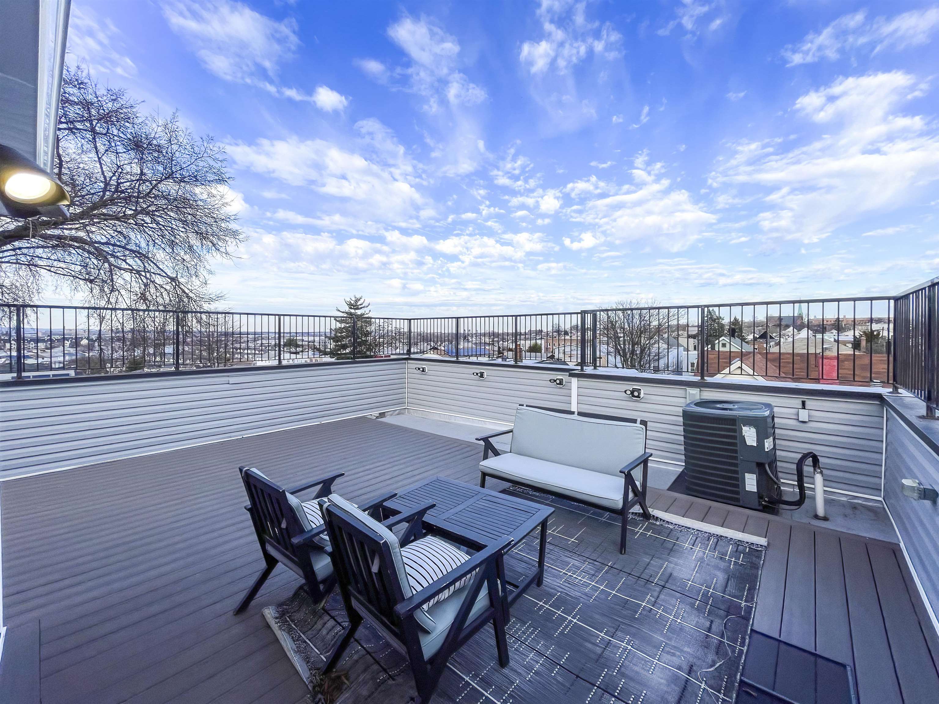 PREPARED TO BE WOWED! This stunning, newly crafted 2-family home is a beautiful blend of modern convenience and elegant design. The crown jewel of this property is the rooftop deck with panoramic 360-degree views of the area. Features include high-end furnishings, flooring, and custom windows and doors. One unit offers a bright, airy layout with large windows. The main open-concept living area is on one level, featuring a spacious kitchen with top-of-the-line appliances, multiple sinks, and a convenient powder room. On the 2nd level, you’ll find 5 generous bedrooms and 3 full baths. Two bedrooms include en suite baths, while the others share a hallway bath with a separate vanity. One bedroom features a private balcony with stunning views. Laundry is also on this floor. The other unit welcomes you with a bright and expansive living room that flows effortlessly into a formal dining area. Past the stairs, there’s a kitchen with dual sinks and a charming breakfast nook. This level also has two bedrooms and a second half bath. Upstairs are 3 more bedrooms and 2 full baths, including one en suite with a balcony offering picturesque views. Convenient laundry is located on this floor as well. This home offers abundant storage, high-efficiency appliances, and a shared fenced backyard for outdoor enjoyment. Situated near bus lines, JFK Blvd, I-78, shops, parks, and restaurants, this property is perfect for owner-occupants or investors. Book your showing today!