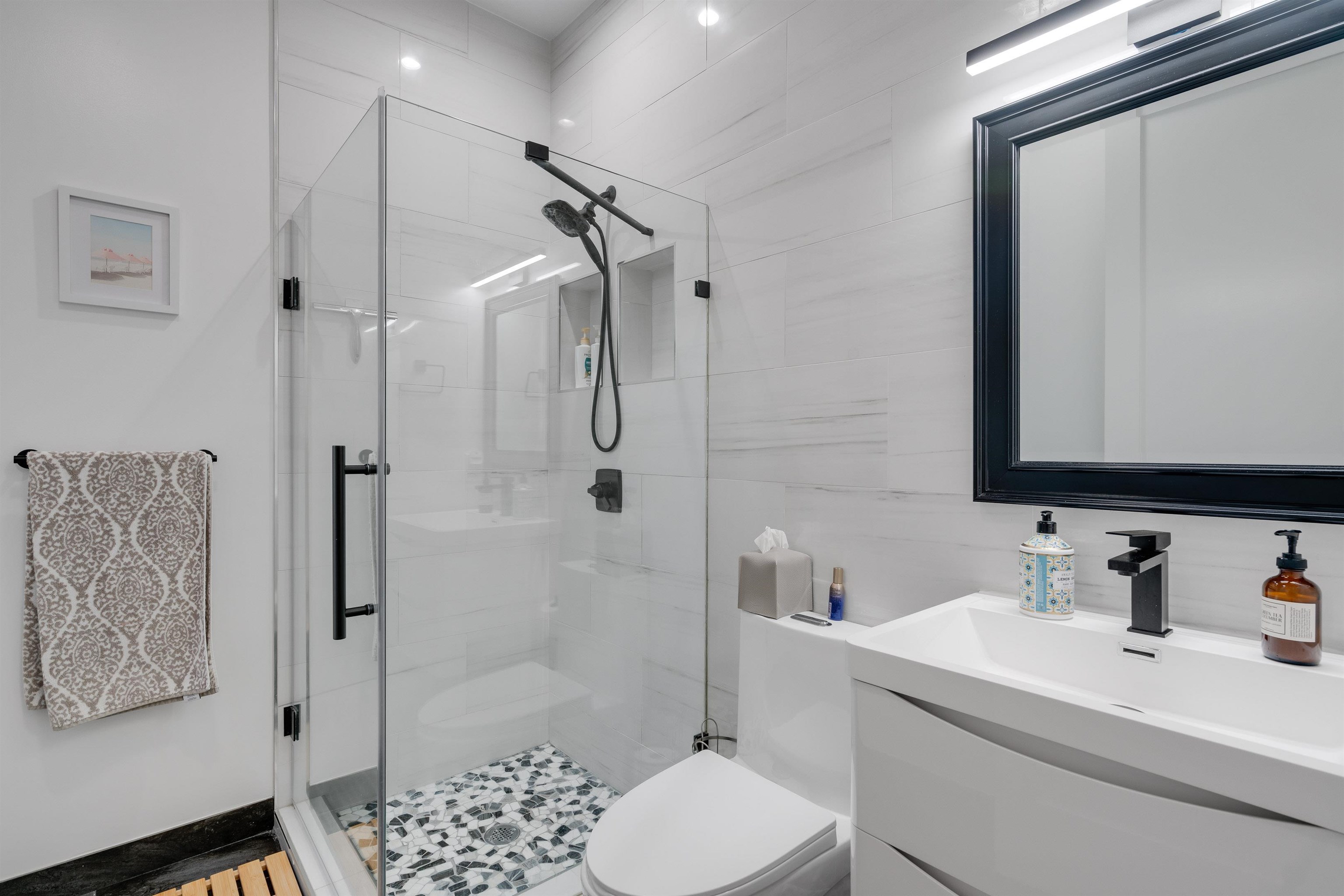 Located in the highly coveted Riverview Arts District of Jersey City Heights, this renovated 2 bedroom, 2 bathroom home features 10’ ceilings, hardwood floors, central A/C, in-unit washer/dryer, closets with built-in shelving and additional storage space. Overlooking the spacious living room, the kitchen features quartz countertops, plentiful custom cabinetry, stainless-steel appliances, vented gas stove exhaust and an island for seating & additional storage. The primary bedroom can comfortably fit a king-sized bed, boasting East facing tall bay windows and an en-suite bathroom with bathtub. The guest room is on the opposite side of the home, can comfortably fit a queen-sized bed and has a guest bathroom with walk-in waterfall shower right outside in the hallway. Both bedrooms are in excellent proportions with plenty of space for work from home areas. Enjoy a spacious coat closet and additional storage space in the basement. Conveniently located near bus service to NYC, light rail stations, Riverview Park with its panoramic views of NYC and farmer’s markets, Washington Park with playgrounds, sports fields and dog runs, and some of the city’s most beloved cafes, restaurants & bars. Available for a January 1 move-in. Pet allowed with landlord approval.