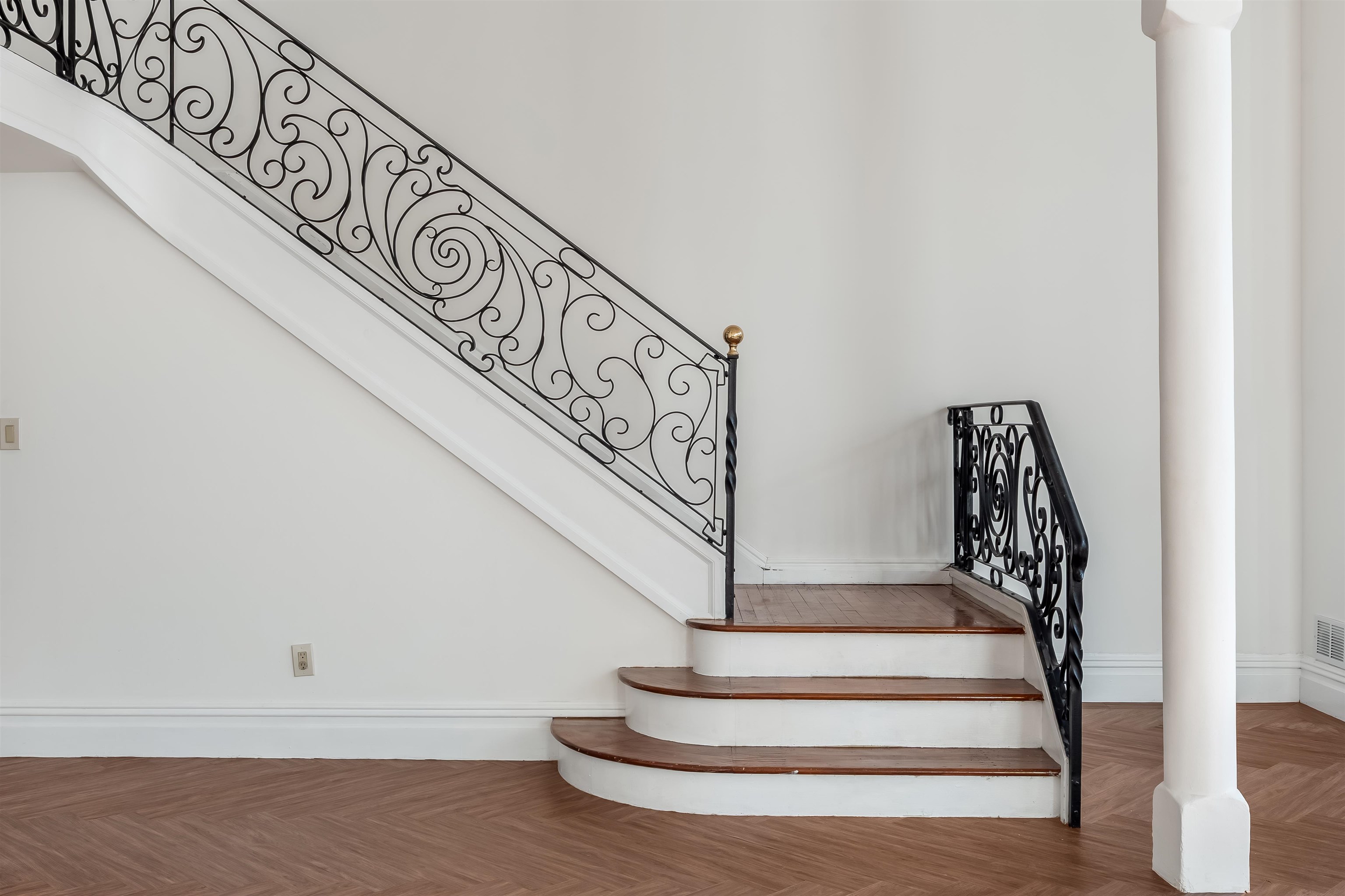 Wells Fargo is an iconic landmark building that used to be a former horse and carriage stables, built in 1890 for the namesake stagecoach empire. The Wells Fargo Loft Condominiums is located at the Heart of Hamilton Park, Historic District. Soaring 15′ in ceiling height. With five oversized windows facing south, receiving lots of natural and consistent exposure to sunlight throughout the day. Two large French glass doors lead to 150 sqft private deck. Antique wooden shutters, dramatic stairwell with gorgeous Beaux Arts railing, large retro ceiling fans, decorative mantle, recessed and track lighting. There are also custom trim moldings and timeless architectural details. The hallways have been remodeled as well. The Hamilton Park neighborhood is filled with tree lined streets, townhouses, cafes, and schools. It’s an easy commute to NYC. There is a 24-hour virtual doorman service.