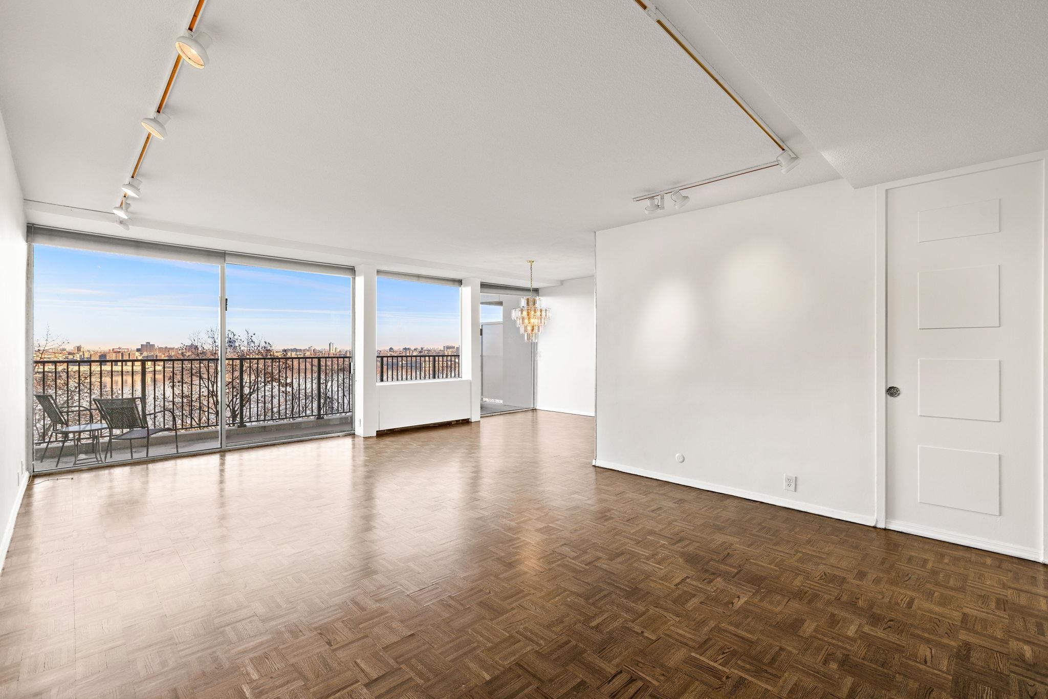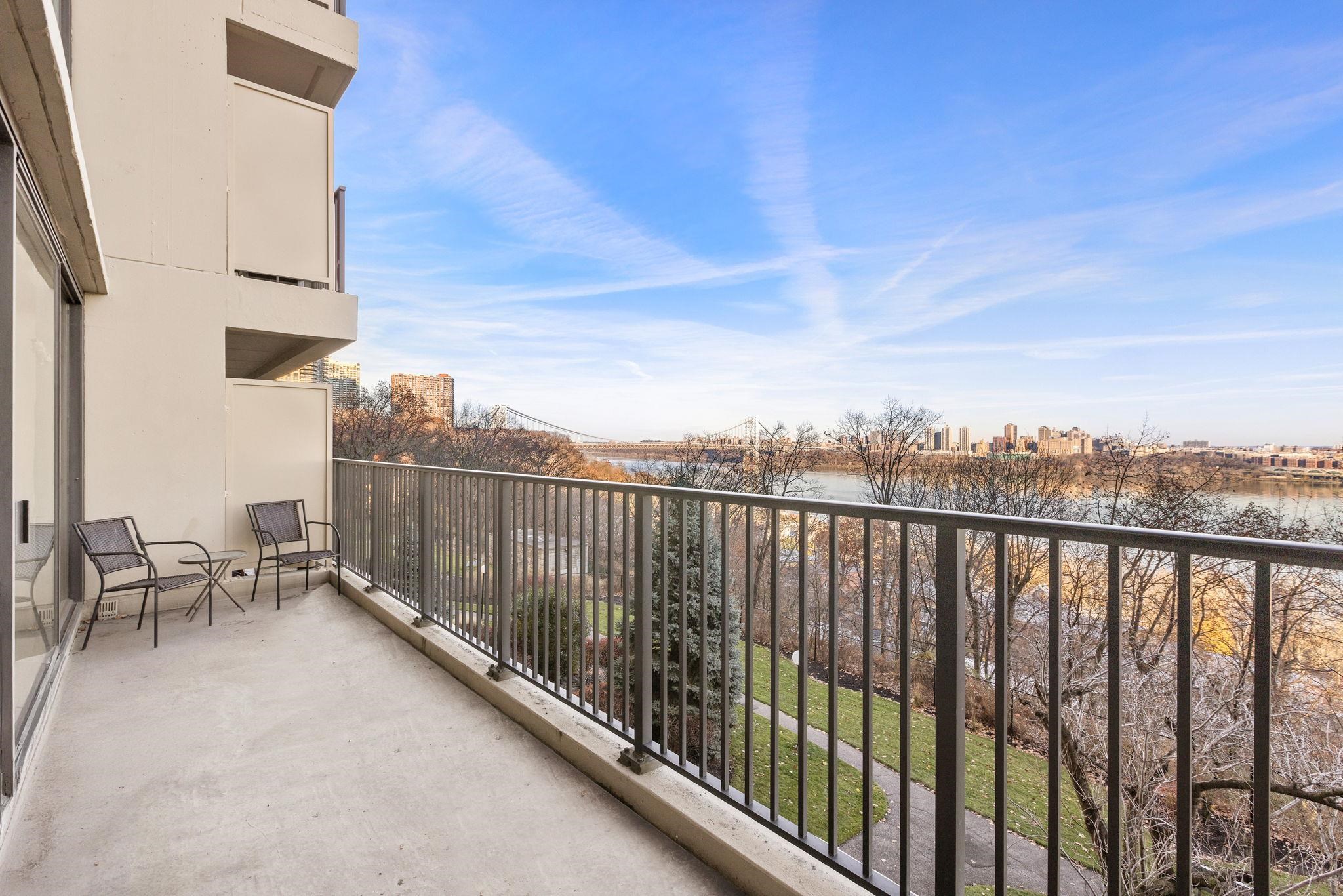 Step into this expansive, townhouse-style 3-bedroom, 2-bath split-level duplex, where breathtaking Hudson River views stretch from the iconic George Washington Bridge to the dazzling Manhattan skyline. Nestled in a highly sought-after community, this home offers not only stunning scenery but also access to a lifestyle that blends comfort, convenience, and sophistication. The main living spaces—living room, kitchen, and dining area—are thoughtfully designed to maximize the sweeping river vistas, allowing natural light to flood the interiors and creating a serene yet dynamic backdrop for everyday living or entertaining. Step outside to your expansive 24-foot riverfront terrace, ideal for enjoying open skies, shimmering water views, and fresh air. The king-sized primary suite is a true retreat, complete with a private ensuite bath, and generous walk-in closet. Two additional well-proportioned bedrooms and a second full bathroom ensure there’s plenty of space for family, guests, or even a dedicated home office. The community enhances your lifestyle with 24-hour doorman and security, a community room, gym, two pools, two tennis courts, children’s play areas, and an on-site convenience store. Board approval required. 4:1 income to debt ratio. Gross income requirement for all cash buyers with no debt is $144k per year. HOA Breakdown: Maintenance $2,599.22, Capital Assessment $631.25 , Cable $71, Total $3,301.47. Parking available for rental fee.