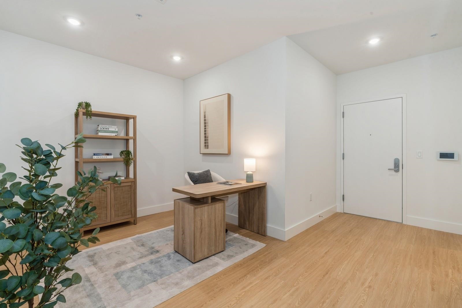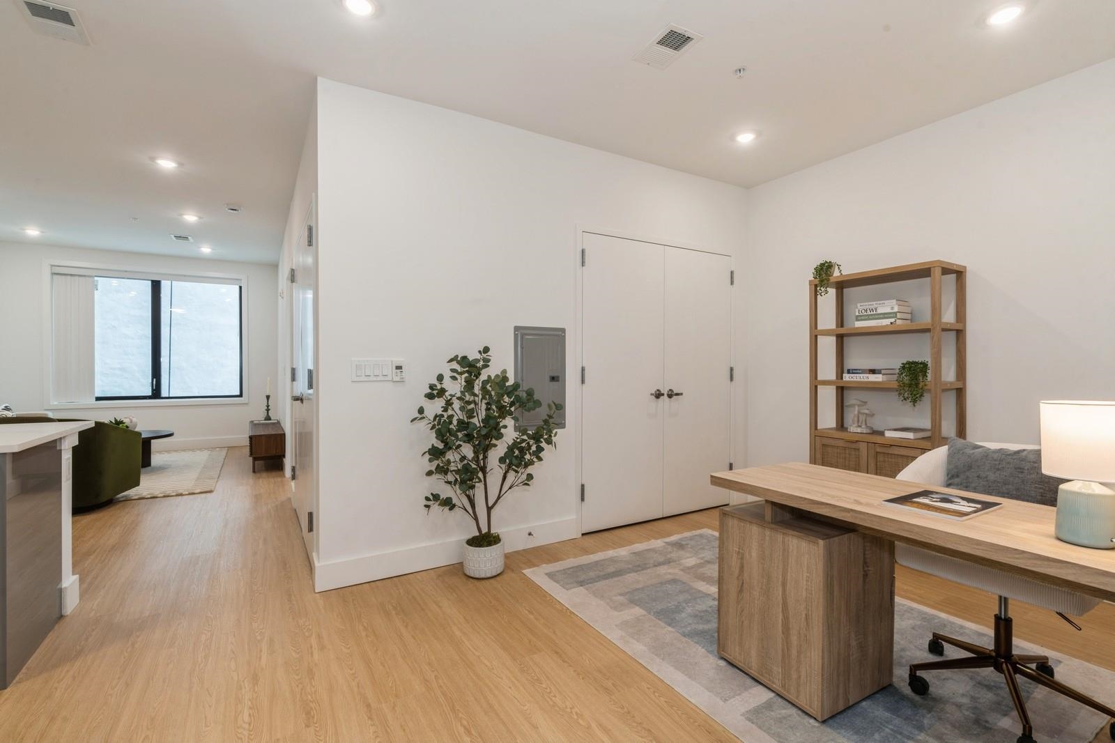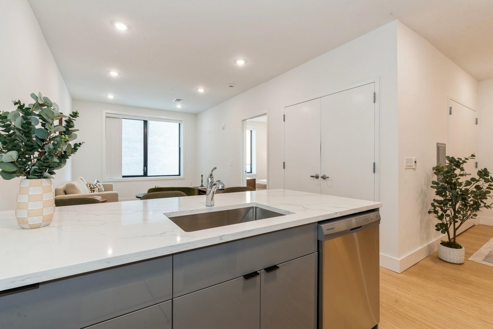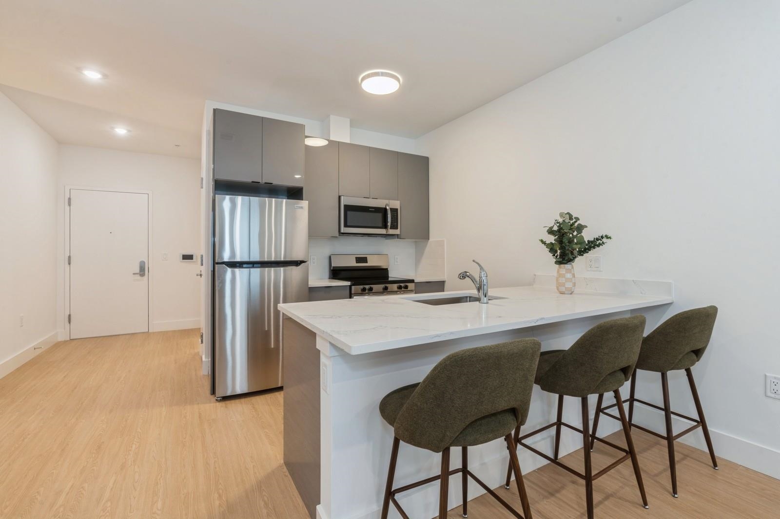 Spacious 1-Bedroom Apartment with Den at The Dumont! Experience upscale living in this expansive apartment that goes beyond typical one-bedroom layouts. Each unit is designed with ample space, featuring a large bedroom plus a versatile den that can function as a second bedroom, home office, or creative studio. Luxury touches abound, from high-end stainless steel appliances to an in-unit washer/dryer, spacious linen closets, and kitchen pantries. Select units boast walk-in closets and breathtaking NYC skyline views. The Dumont’s prime location puts you just a short walk from Journal Square PATH and a quick drive to Grove Street PATH, Hoboken Terminal, and Newport Centre, connecting you easily to all key transit routes. Multiple large units are available—visit our showroom open daily from 11 AM to 7 PM!