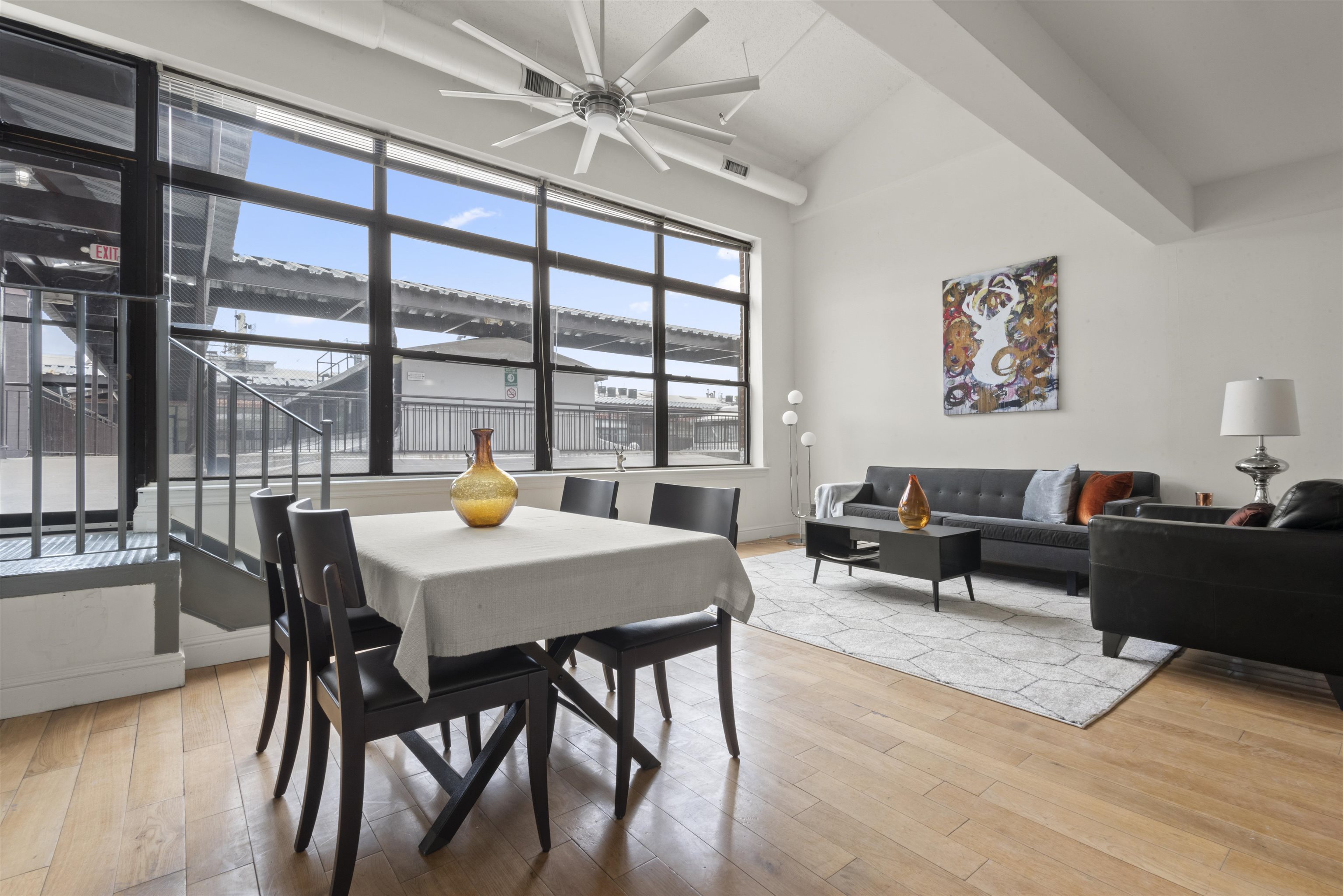 Welcome to this impressive 3-bedroom, 2-bathroom condo located at the iconic Foundry Lofts building in the Bergen-Lafayette section of Jersey City. This spacious 1,563-square-foot industrial loft duplex offers a blend of modern luxury and convenience, making it an ideal urban retreat. As you enter through your private entrance, you’ll be greeted by the 16′ high ceilings and abundant natural light pouring in through the East-facing oversized windows. The open floor plan features hardwood floors throughout, creating a seamless flow between living spaces. This condo’s first floor consists of 2 bedrooms, a newly renovated full bathroom, an open-concept living/dining area and in-unit laundry. The contemporary kitchen is complete with a breakfast bar, KitchenAid stainless steel appliances, and new tiled backsplash. As you ascend to the 2nd floor you will be impressed by the enormous 23’x14′ primary bedroom, dual skylights and 2 closets. Adjacent to the bedroom is a newly renovated full bathroom for added convenience. Comfort is assured with central heating and cooling systems and 2 newly installed industrial ceiling fans, creating a pleasant atmosphere year-round. The condo also includes a washer and dryer in-unit, adding to the convenience of daily living. Enjoy the luxury of an assigned parking spot in a secured lot, which is included with the condo, making city living hassle-free. The building features a common outdoor courtyard and garden, ideal for relaxation and fresh air. There is a 24-hour desk attendant, and the building’s gym is perfect for your fitness needs. The on-site bike room is an added convenience. This condo offers an exceptional opportunity to experience all that Jersey City has to offer, with the added convenience of the local coffee shops, diverse dining, and a Liberty Science Center light rail train station one block away. Experience the best of Jersey City living in this beautiful condo, where style and functionality come together to create an exceptional home. This CONDO qualifies for 95% financing available with no PMI for FIRST-TIME home buyers. 95% financing with PMI for NON-first-time home buyers.