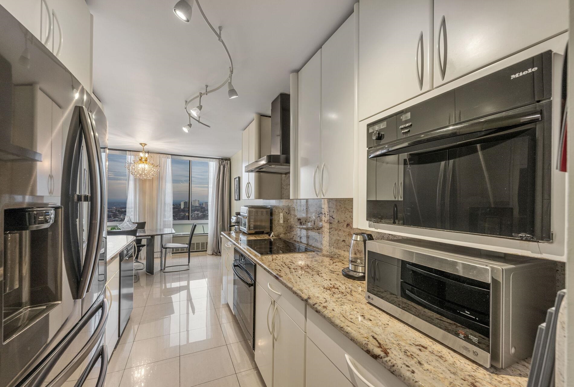 LUXURY Hi -RISE in most desirable New Jersey Gold Coast location. Beautiful, all renovated Corner DeLUXE 3 BDR/3BTH, 2000 sqft with spectacular, breathtaking panoramic views. Flooded with natural light with an open and spacious layout – this modern and elegant unit features: all hardwood flrs,gourmet eat-in kitchen with granite counters , Stainless Steel High End appliances ( Boch and Miele) and porcelain floors; italian tile and marble baths, new doors, crown moldings, tremendous closet space with same floor extra storage; large walk-in pantry; master suite with with 2 big custom Cedar walk-in closets and a spa like master bath. Generous and open layout of this condo creates a great space for entertainment. Building amenenities feature: 24hrConcierge & Security, outdoor pool, tennis courts,Health Club, playground, Community Room. NYC transport at door. Walking distance to shops,restauramts and schools. Garage Parking $75 one spot and $ 135 Tandem.