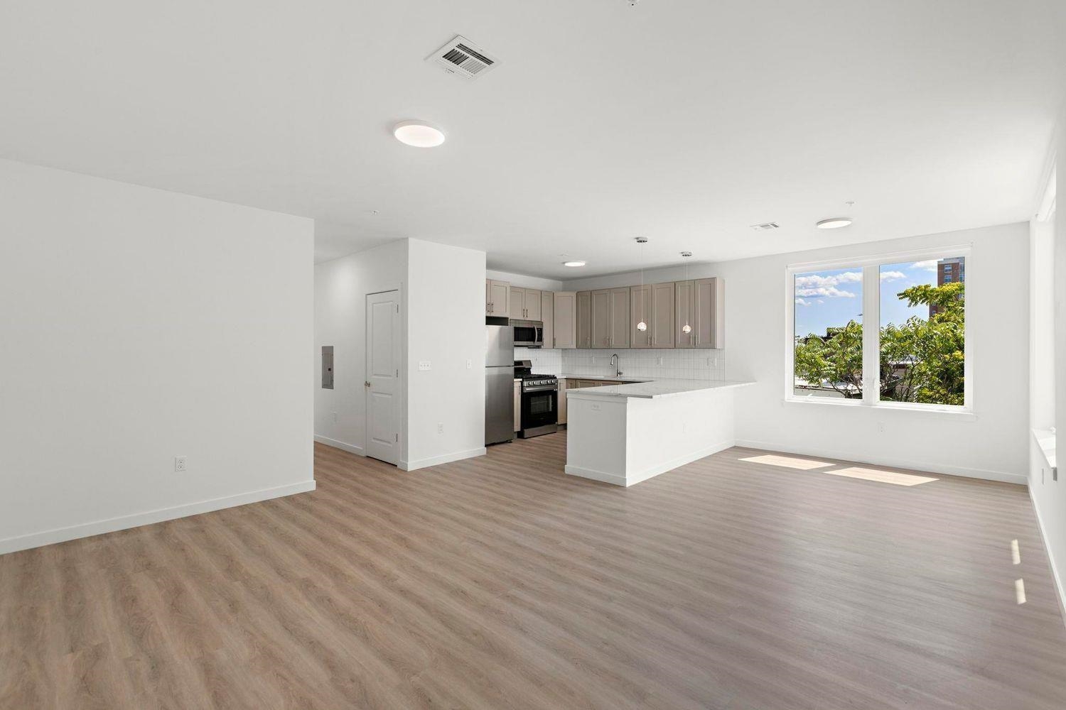 Welcome 306 Bergen Ave – a new construction 18-unit elevator building with modern finishes. This two bedroom unit is complete with amazing features including wide-plank flooring, high ceilings, central AC, large windows allowing for excellent natural light, in-unit full size washer/dryer and ample closet space. The kitchen is well equipped with quartz countertops including a large peninsula, stainless steel appliance package w/ dishwasher, gas range/oven, refrigerator and microwave. The building is ideally located just over a block to the nearest Light Rail station and within a couple of blocks of bus stops, Dunkin Donuts, McDonalds and other neighborhood restaurants and cafe’s. Parking available on site for an additional fee. Pets welcome under 40 pounds. 2 Pet maximum w/ pet fee.