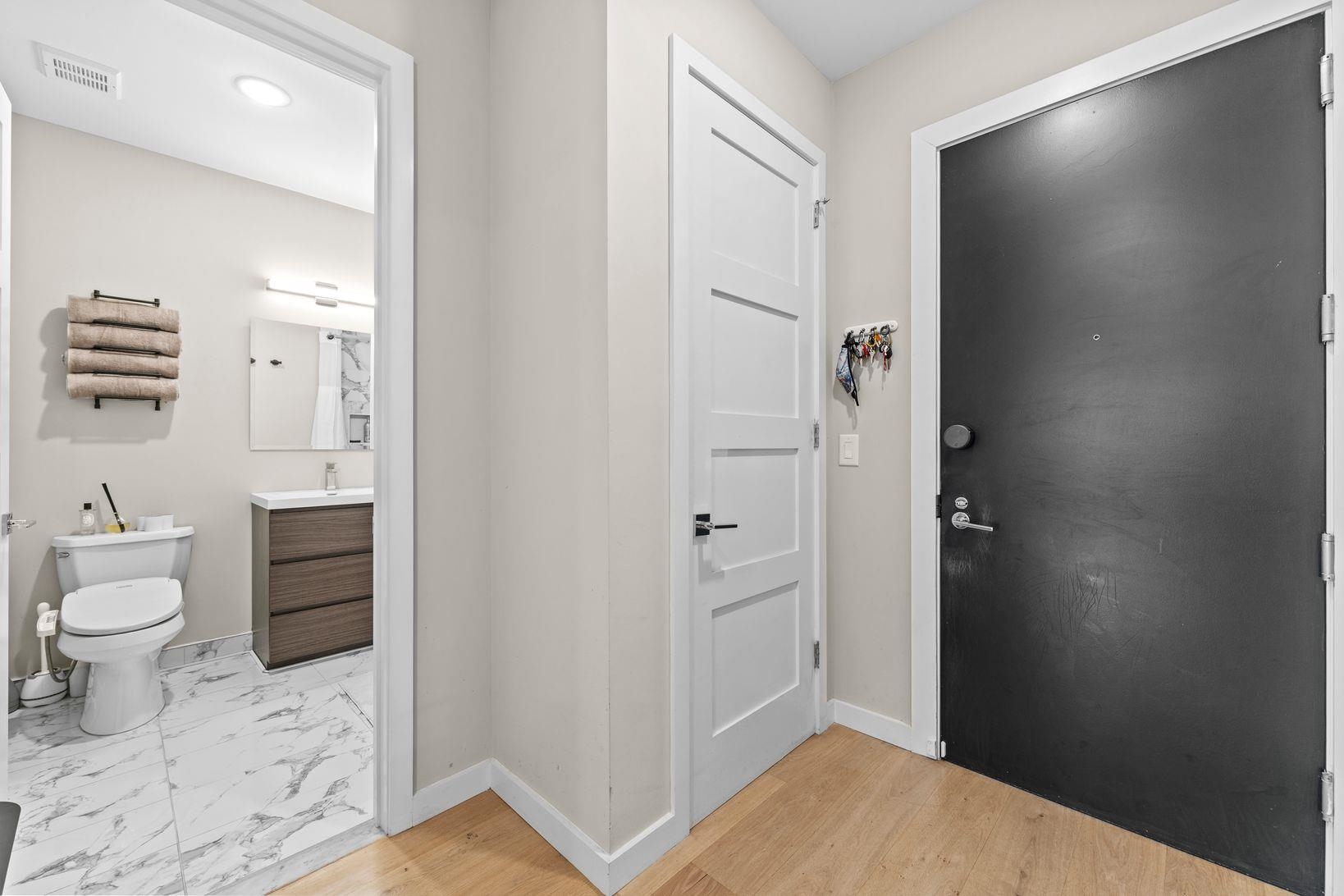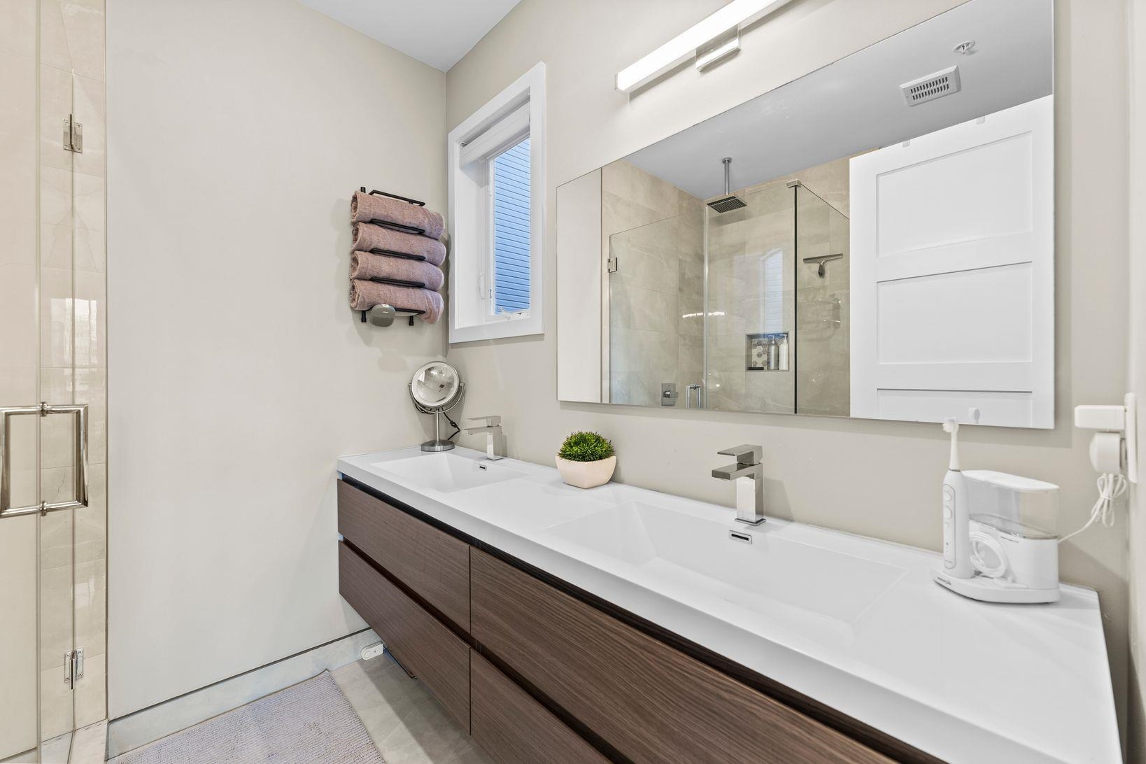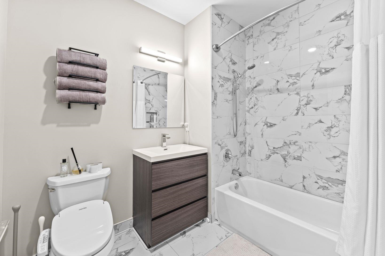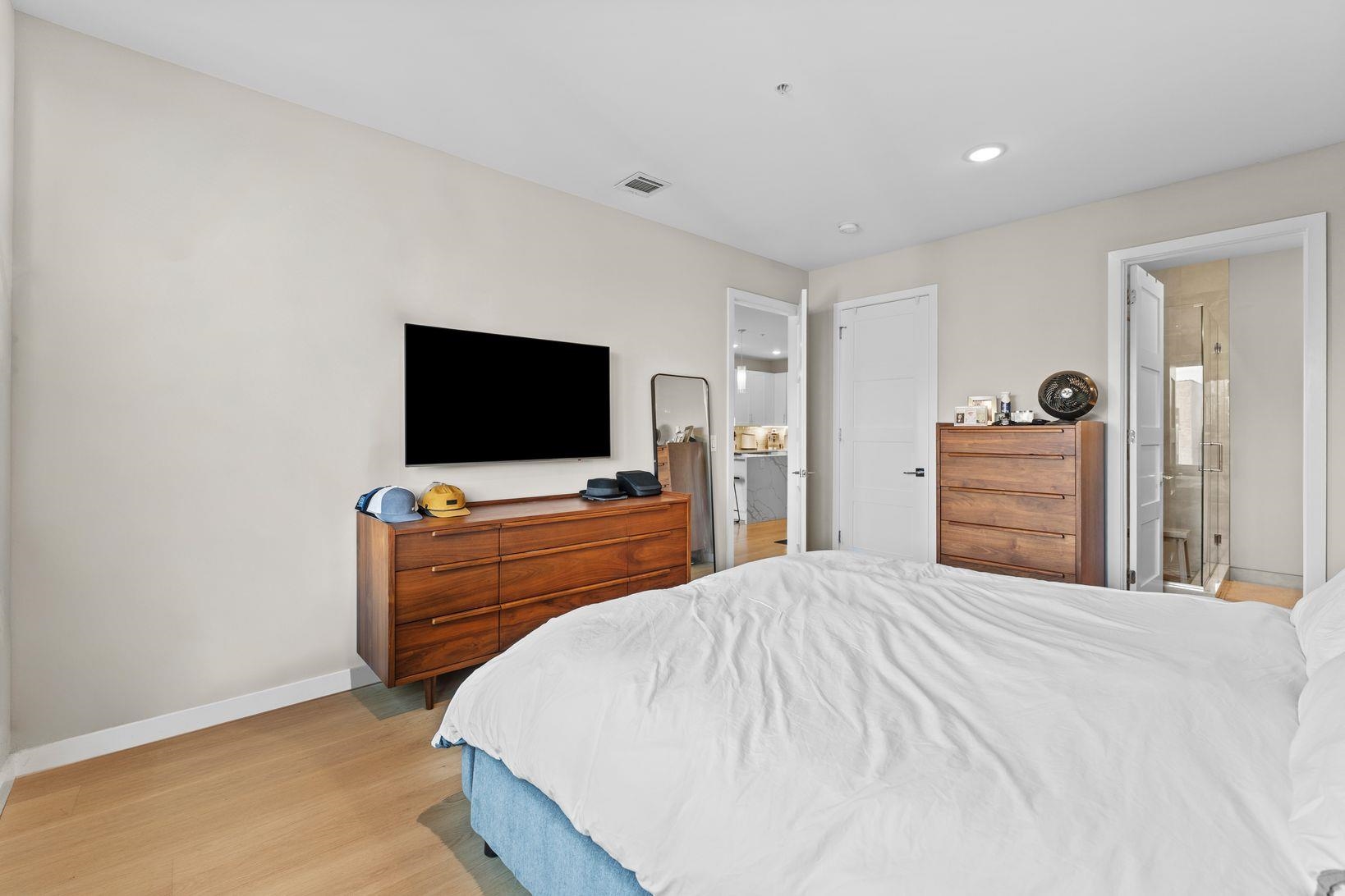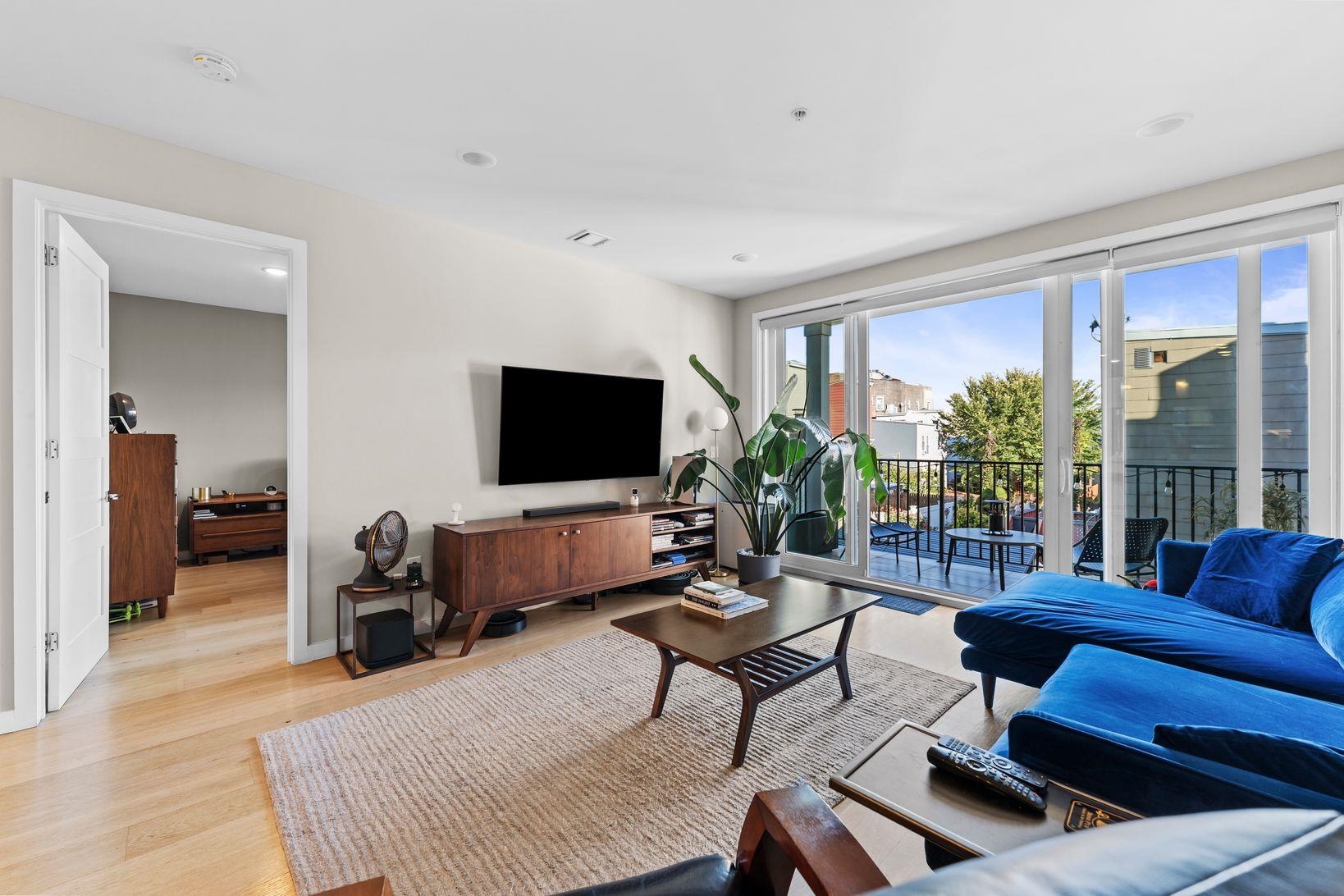 Bright & spacious 2 bedroom, 2 bathroom condo in modern 2019 constructed boutique condo building which features garage parking, elevator access and a large shared yard & patio. This second floor unit features luxury finishes throughout with wide-plank wood flooring, designer kitchen & bathrooms, central AC, in-unit laundry, Ring security cam & system, large windows, a large private balcony and more! Large open living room has plenty of room for a dining table and opens up to the kitchen, which features quartz countertops, stainless steel appliances, and a beautiful waterfall peninsula, offering plenty of counter space. Primary bedroom includes an en suite with a double vanity, glass enclosed shower and a rain shower head. Second bedroom is spacious and includes a walk-in closet with an infrared sauna. Situated on the border of Hoboken and Jersey City Heights, the neighborhood is known for its rich cultural heritage, vibrant arts scene, walkable streets, local shops, restaurants, parks, and sweeping views of the Manhattan skyline from atop the Hudson Palisades. Washington Park’s multi-million dollar renovation includes 10 tennis courts, 2 pickleball courts, basketball courts, a large playground, a splash pad, dog park, picnic benches, walking trails and more! Commuters will love the quick access to New York City: NJ Transit buses provide frequent service to Port Authority in 20 – 30 minutes. You’re also just a couple of blocks to the 9th St Light Rail, which can get you to the PATH train or to downtown Hoboken / Jersey City. For drivers, Route 495 and the Lincoln Tunnel make car commutes into Manhattan a breeze. Whether you’re seeking urban convenience, cultural vibrancy, or an affordable alternative to Manhattan / Hoboken living without sacrificing space or comfort, this home delivers with style, location, and unbeatable access to everything the area has to offer.