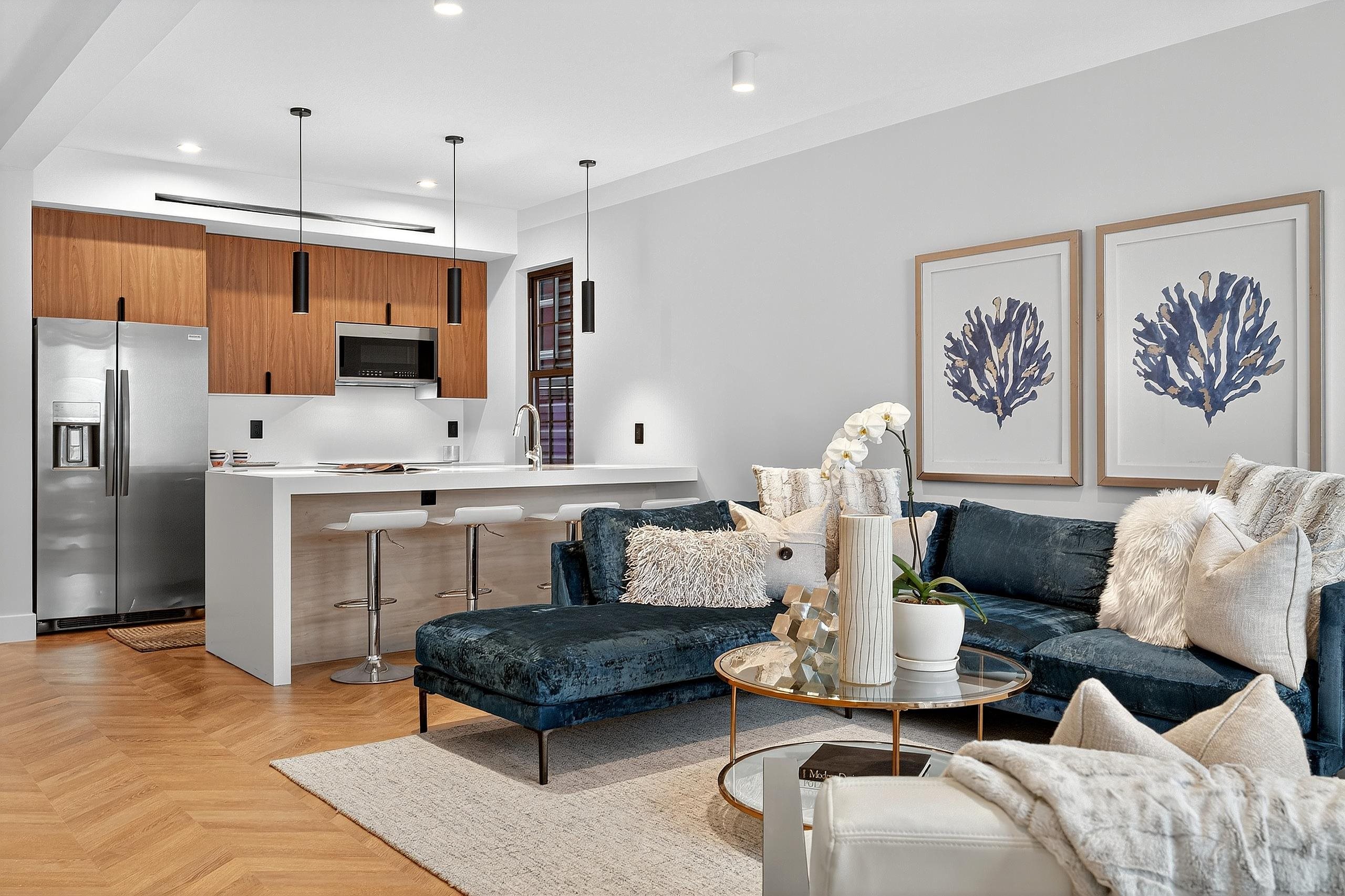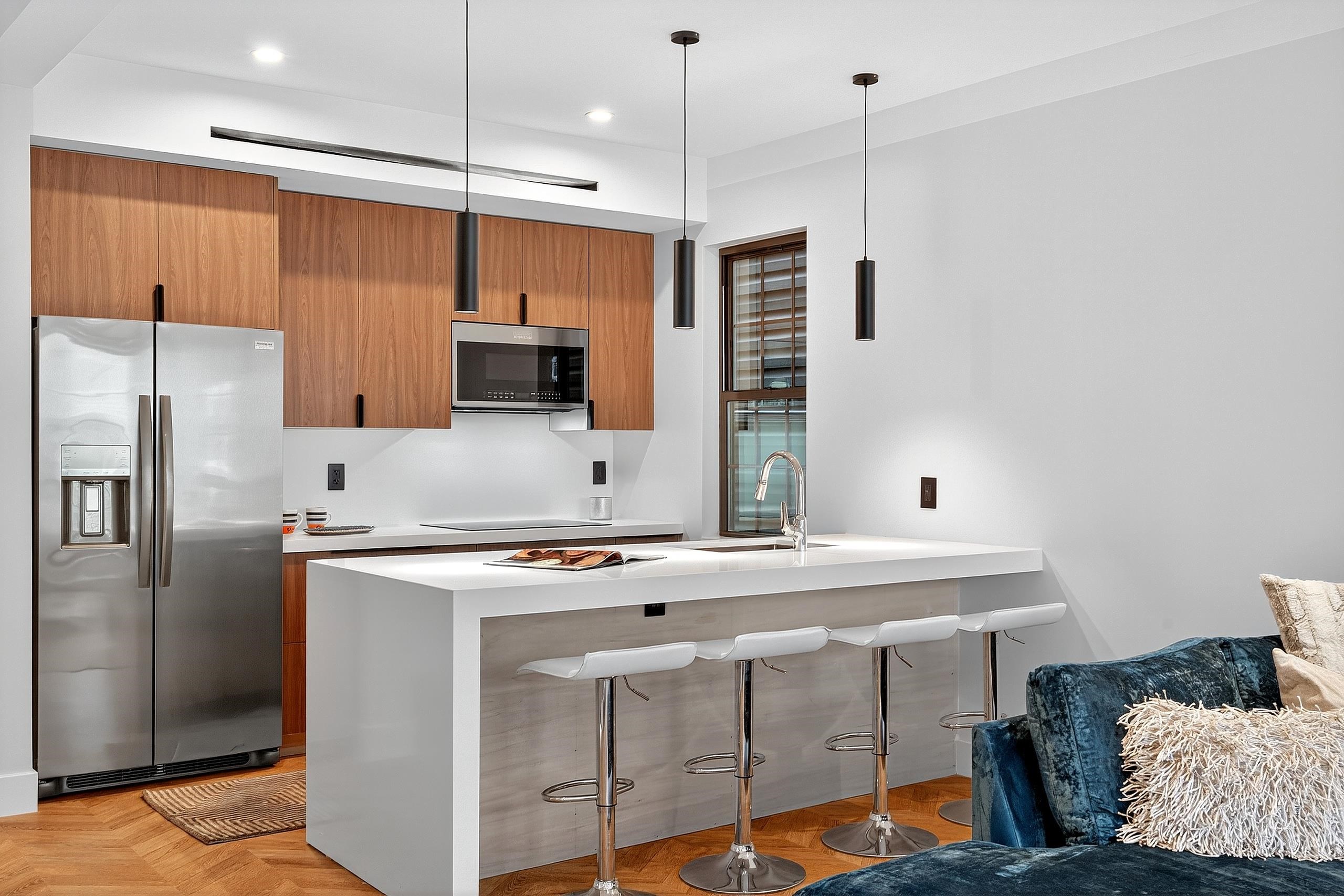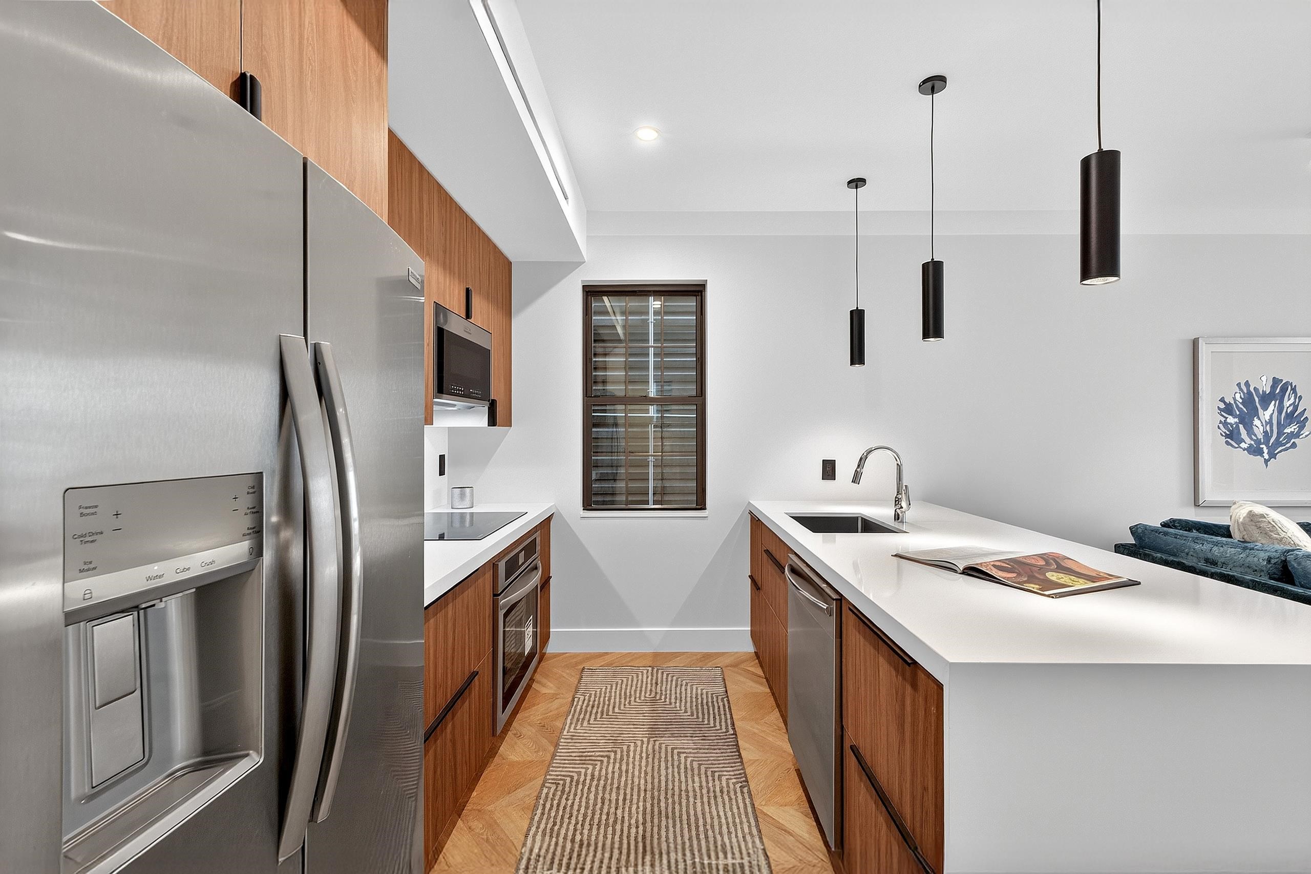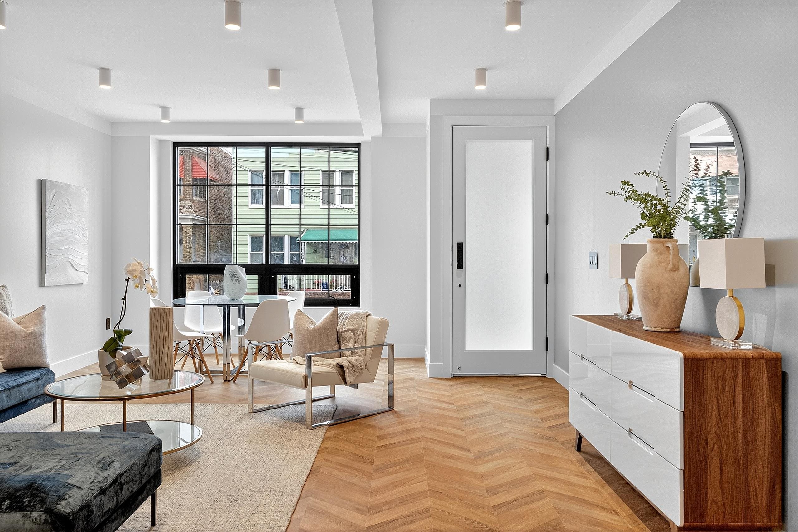 Experience the modern luxury in this expansive completely custom new construction residence. Spanning 3 bedrooms, 3.5 baths, and a bonus room, Unit #1 is a duplex home at 31 Bayview Ave. which offers exceptional space for refined living. The open-concept living, dining, and kitchen areas are thoughtfully designed for both comfort and style, featuring Frigidaire Gallery appliances, an 8-foot quartz island with waterfall edge, custom cabinetry and premium finishes throughout with names like Hansgrohe & Kohler. Private outdoor enjoyment awaits on the exclusive terrace, ideal for entertaining or relaxing in a serene urban retreat. Constructed with superior materials—including glulam and steel beams, closed-cell spray foam insulation, and sound-dampened walls—the home ensures lasting comfort and quiet. Smart features include Ethernet cabling for cameras and Wi-Fi, Legrand smart switches, LED lighting, and multi-zone HVAC climate control. Bathrooms are elegantly appointed with Kohler, Hansgrohe, and Porcelanosa fixtures, and finished with Porcelanosa porcelain and ceramic tile. The custom craftsmanship continues through the home with the timeless character of reclaimed 19th-century Washburn brick and timber, custom built ins throughout, custom cabinetry, exposed brick & tons of additional character. One parking spot helps to complete this picture perfect home. Located in Bergen-Lafayette, this home offers the best of urban living with its vibrant community and easy access to a wide range of amenities, including dining, shopping, and entertainment options. Plus the Massive Canal Crossing Charter School Campus will offer a convent and highly rated school option right in the neighborhood! Enjoy the charm and convenience of this neighborhood, while still being within reach of everything Jersey City has to offer.