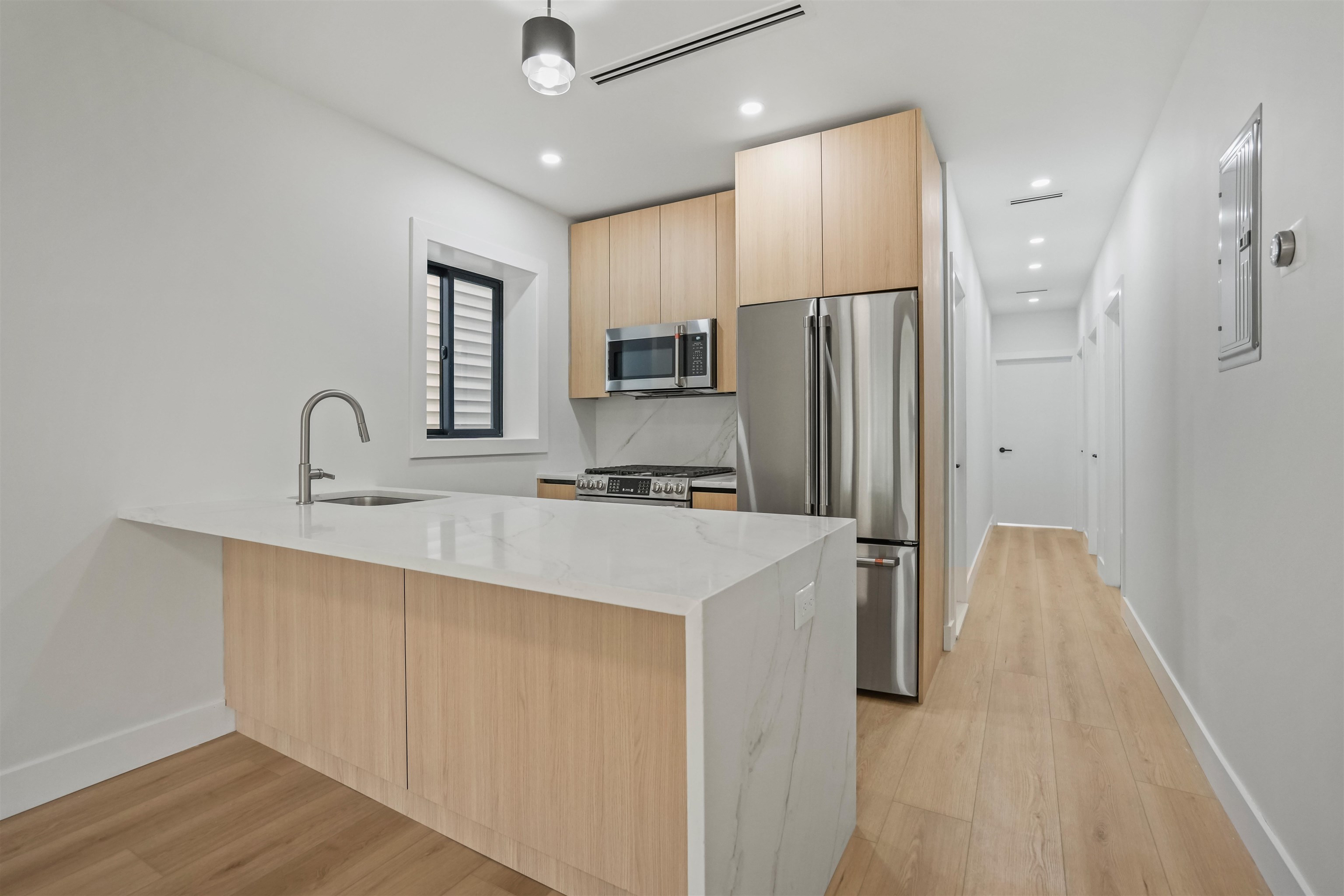 Welcome to this stunning 3-bedroom, 2-bathroom apartment in Bayonne, completely renovated from top to bottom with high-end finishes. Inside, you’ll find beautiful new floors, brand-new quartz countertops, and top-of-the-line appliances in the kitchen. With the master suite conveniently located on the main level and large windows in every room filling the home with natural sunlight. Enjoy the convenience of laundry in unit and backyard access. Multiple Hudson-Bergen Light Rail stops, including at 34th and 45th Street make commuting to Jersey City and Manhattan easy, and just steps off Broadway with restaurants, shopping, and more at your door.