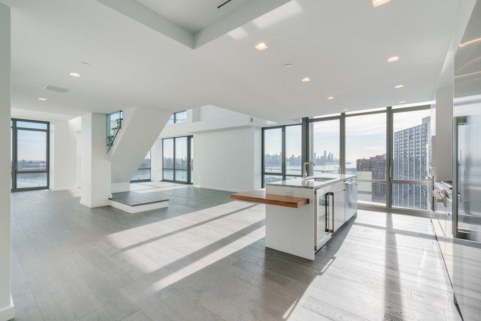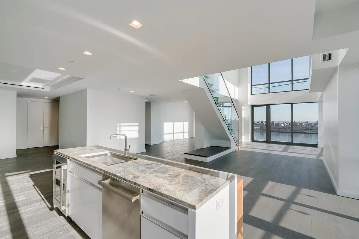 Spectacular Penthouse Duplex with Panoramic Manhattan Views at One Park Condos Experience unmatched sophistication and sweeping south/east-facing views of Midtown Manhattan from this extraordinary 4-bedroom, 3-bath penthouse duplex at One Park Condos, one of North Jersey’s premier full-service buildings. Spanning two elegant levels, this residence showcases two spacious primary en-suites, an open-concept layout, and 7” white oak engineered hardwood floors complemented by custom millwork and designer finishes. Floor-to-ceiling windows and a wrap-around private balcony bathe the home in natural light, offering a seamless connection to the iconic skyline—perfect for tranquil mornings or glittering city nights. The chef-inspired kitchen features Thermador Pro Series stainless steel appliances, polished Cielo Quartzite countertops and backsplash, and custom white lacquer cabinetry with under-cabinet lighting. Motorized window treatments add effortless comfort, while spa-like baths create a true sanctuary. Residents enjoy access to over 25,000 square feet of resort-style amenities, including a 24/7 concierge, indoor pool, state-of-the-art fitness center, and more—delivering an unparalleled lifestyle of luxury and convenience. With a tenant in place through the lease term, this exceptional penthouse offers both premium living and a strong investment opportunity in one of the most desirable addresses along the Hudson River.