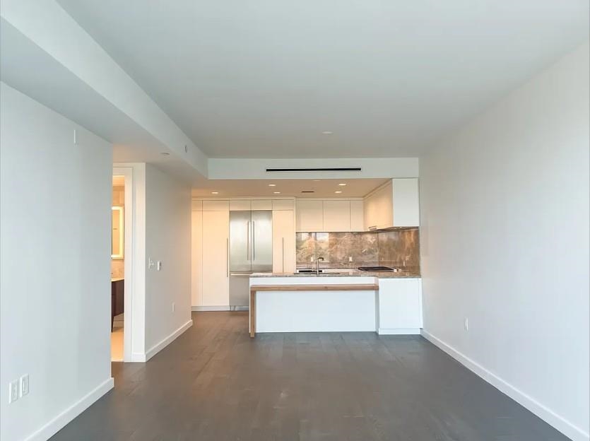 Enjoy elevated living at One Park in this 1,284-square-foot two-bedroom, two-bath residence featuring a private balcony and one assigned parking space. Designed with both comfort and style in mind, the home offers a bright, open layout highlighted by floor-to-ceiling windows that bring in abundant natural light. The modern kitchen is equipped with a premium Thermador appliance package, complemented by quartzite countertops and backsplash, along with a streamlined breakfast bar ideal for everyday meals or hosting guests. The primary bedroom serves as a peaceful escape, featuring a spa-style bathroom with a freestanding soaking tub and refined porcelain finishes. The generously sized second bedroom easily accommodates a king-size bed, making it well-suited for guests, a home office, or additional living flexibility. Residents of One Park have access to an impressive 25,000+ square feet of resort-style amenities, including 24-hour concierge service, valet parking, an indoor swimming pool, fully equipped fitness center, yoga studio, sauna, squash and basketball courts, a rooftop terrace with BBQ stations, private theater, resident lounge, guest suites, bicycle storage, and more.