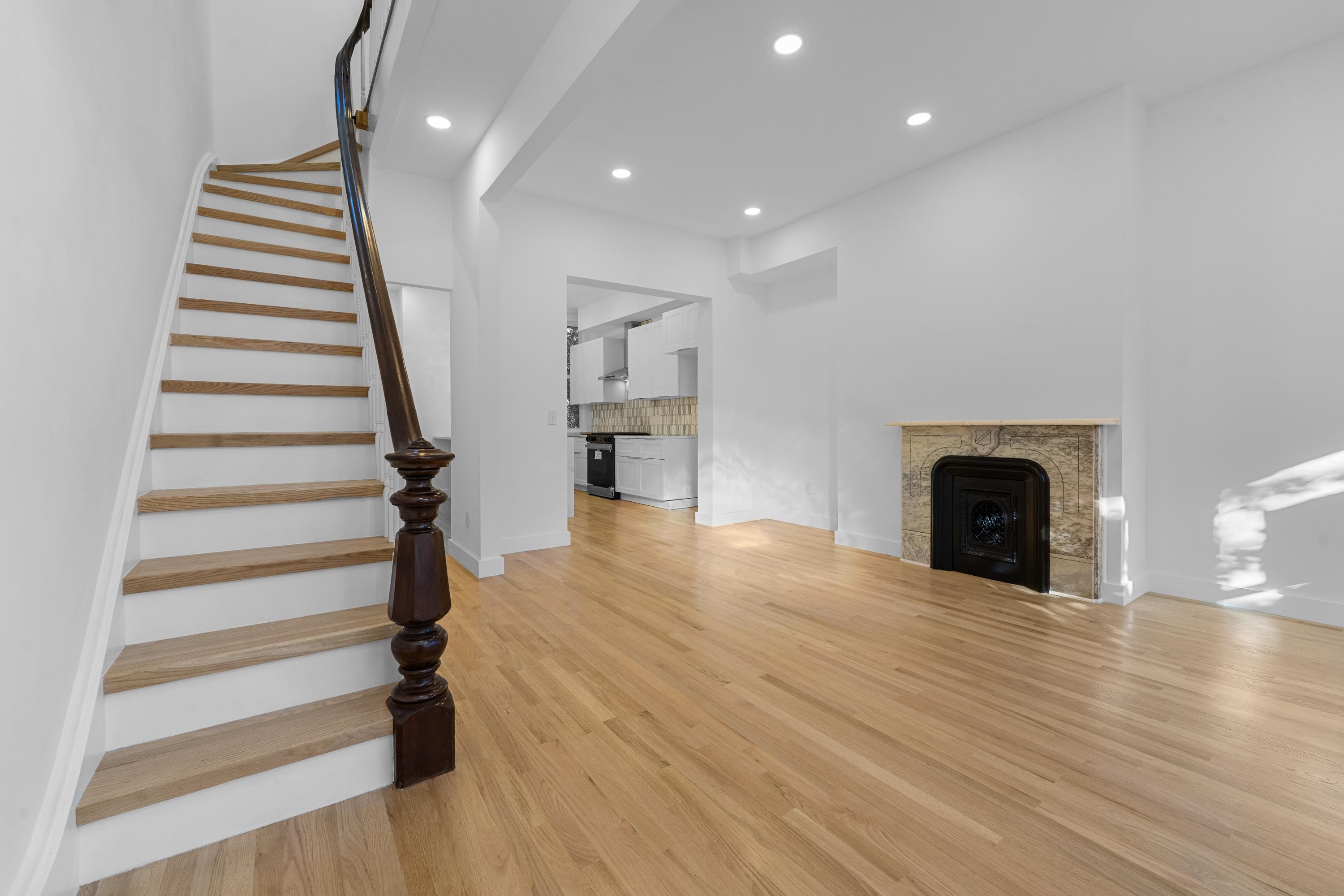 Move right in to this fully renovated 3-bedroom, 2.5-bathroom home where modern updates complement original charm. Nearly everything is new including a new roof, siding, windows, doors, floors, electrical, plumbing, kitchens, and bathrooms! Behind the vibrant front door, you’ll find 10-foot ceilings, hardwood floors, and preserved details like the gorgeous staircase and fireplace surround. The modern kitchen features an oversized island, gas range and hood, and gorgeous finishes. French doors lead to your low maintenance, private backyard. The second floor features three generously sized bedrooms and the main bathroom complete with a skylight. The walk-out basement (front and rear entrances) offer two additional spacious rooms and a full bath – the possibilities for the basement are endless! Located around the corner from the elementary school, two blocks from shopping, and close to the light rail for an easy NYC commute.