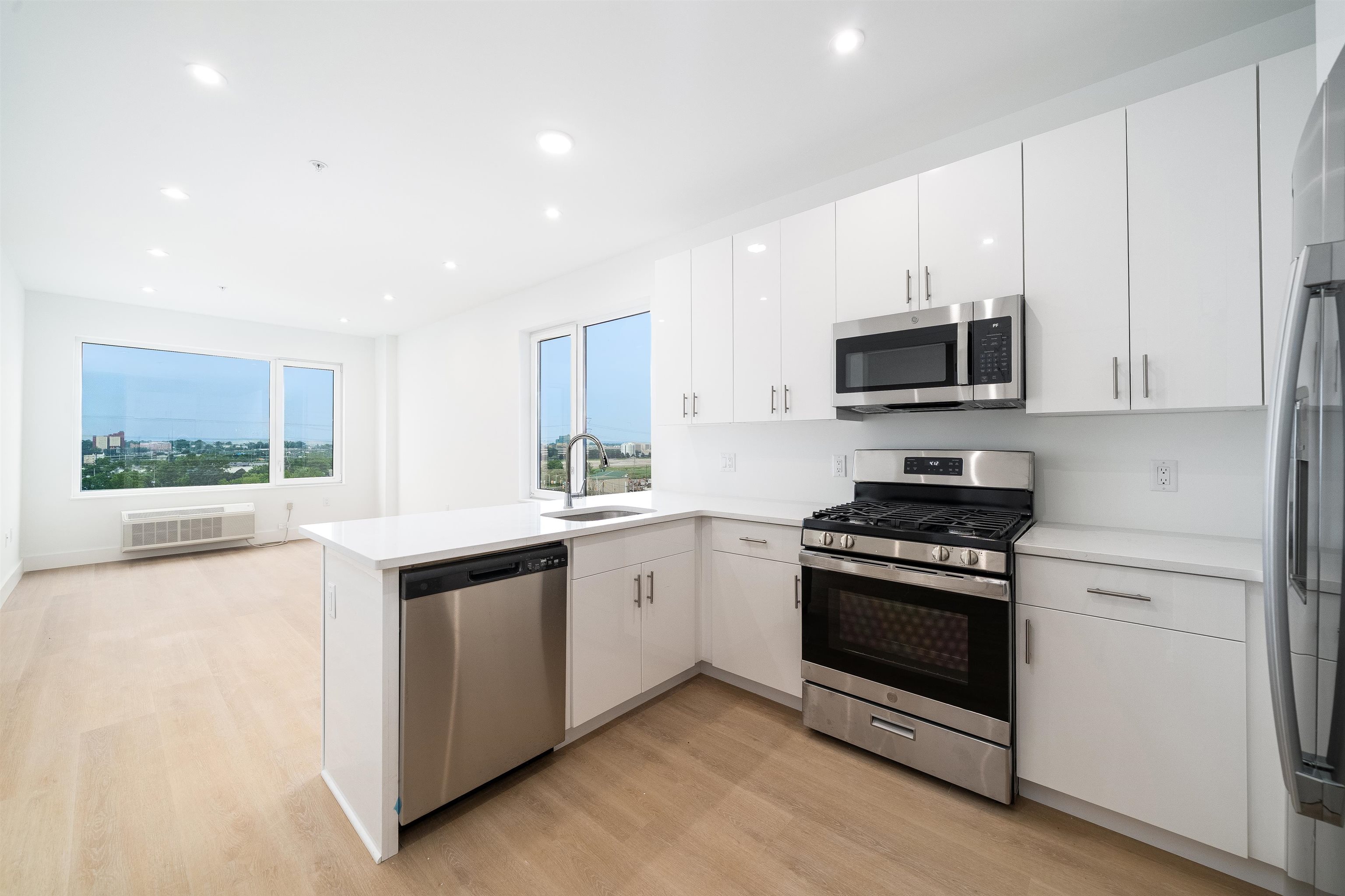 Welcome to a brand-new luxury residence in North Bergen— this community features studio, one-bedrooms and two-bedroom layouts. Select homes feature private patios, creating a seamless blend of indoor-outdoor living. Offering exceptionally spacious and thoughtfully designed floor plans, 3309 Liberty Ave. surpasses the competition. Residents enjoy the convenience and security of keyless smart access, natural wood LVT floors enhance both style and durability. Oversized windows invite abundant natural light, creating bright and airy living spaces. The chef’s kitchen, available in select layouts, boasts an island and state-of-the-art appliances, including a refrigerator, gas range, microwave and dishwasher in every unit. Each residence also includes a separate Samsung washer and dryer for effortless daily living along with an instant on hot water. Luxurious spa-style bathrooms elevate the experience with vessel sinks, custom cabinetry, and showerhead. To ensure personalized comfort year-round, every room is equipped with remote-controlled AC units. Fitness options in the gym. Attached garage and on-site parking (1 car included). For those who value fitness and wellness, a fully-equipped gym is accessible in the building. Situated on a prime lot, this residence ensures tranquility while being just 15 minutes away from the bustling city. Commuting is a breeze, with major highways like Route 3, I-95, and Routes 1 & 9 less than 10 minutes away, making this location ideal for both drivers and those utilizing public transportation. Experience the perfect blend of modern luxury and unbeatable convenience at this spectacular home.