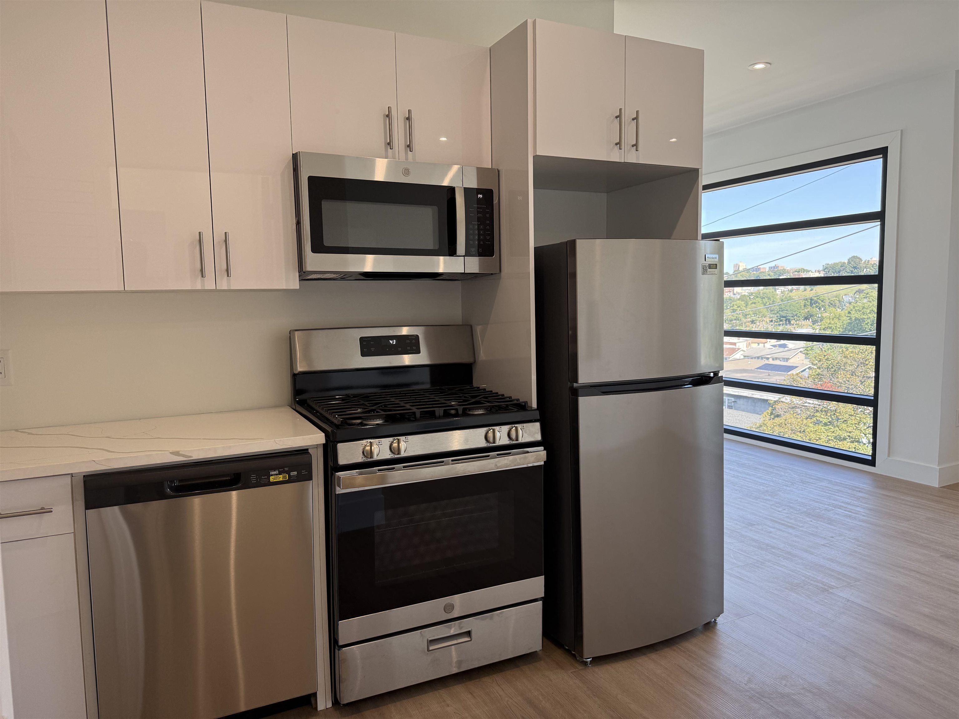 Welcome to a brand-new luxury residence in North Bergen— this community features studio, one-bedrooms and two-bedroom layouts. Select homes feature private patios, creating a seamless blend of indoor-outdoor living. Offering exceptionally spacious and thoughtfully designed floor plans, 3309 Liberty Ave. surpasses the competition. Residents enjoy the convenience and security of keyless smart access, natural wood LVT floors enhance both style and durability. Oversized windows invite abundant natural light, creating bright and airy living spaces. The chef’s kitchen, available in select layouts, boasts an island and state-of-the-art appliances, including a refrigerator, gas range, microwave and dishwasher in every unit. Each residence also includes a separate Samsung washer and dryer for effortless daily living along with an instant on hot water. Luxurious spa-style bathrooms elevate the experience with vessel sinks, custom cabinetry, and showerhead. To ensure personalized comfort year-round, every room is equipped with remote-controlled AC units. Fitness options in the gym. Attached garage and on-site parking available for rent. For those who value fitness and wellness, a fully-equipped gym is accessible in the building. Situated on a prime lot, this residence ensures tranquility while being just 15 minutes away from the bustling city. Commuting is a breeze, with major highways like Route 3, I-95, and Routes 1 & 9 less than 10 minutes away, making this location ideal for both drivers and those utilizing public transportation. Experience the perfect blend of modern luxury and unbeatable convenience at this spectacular home.