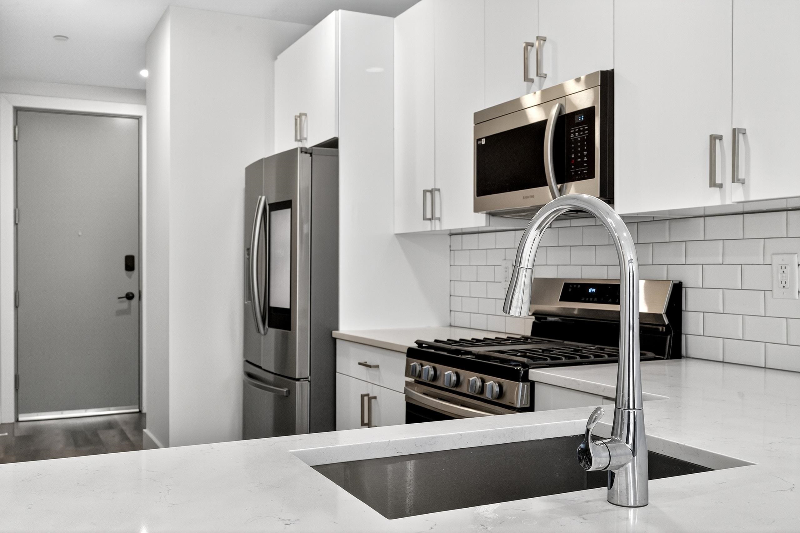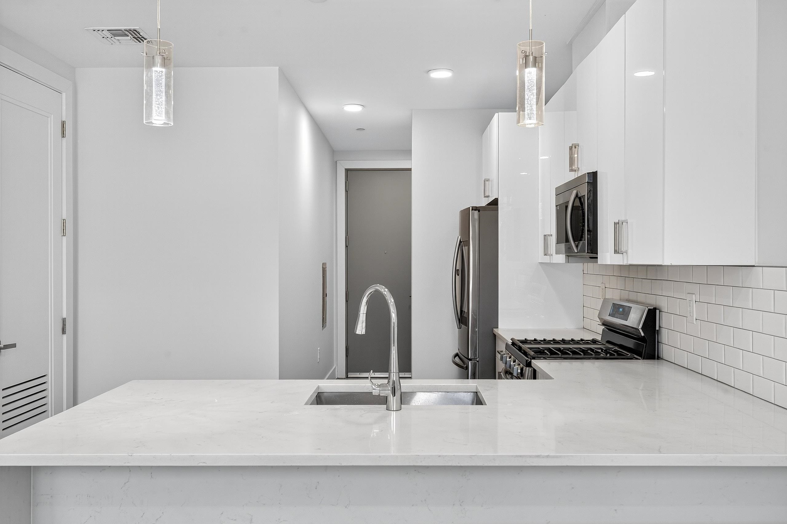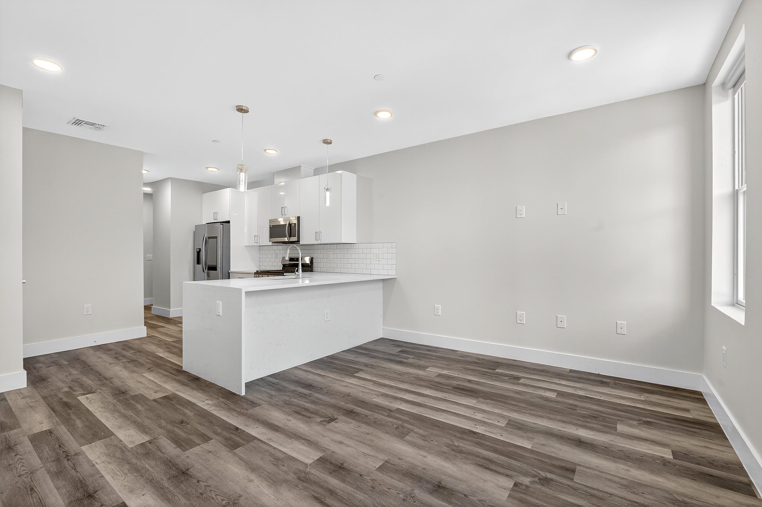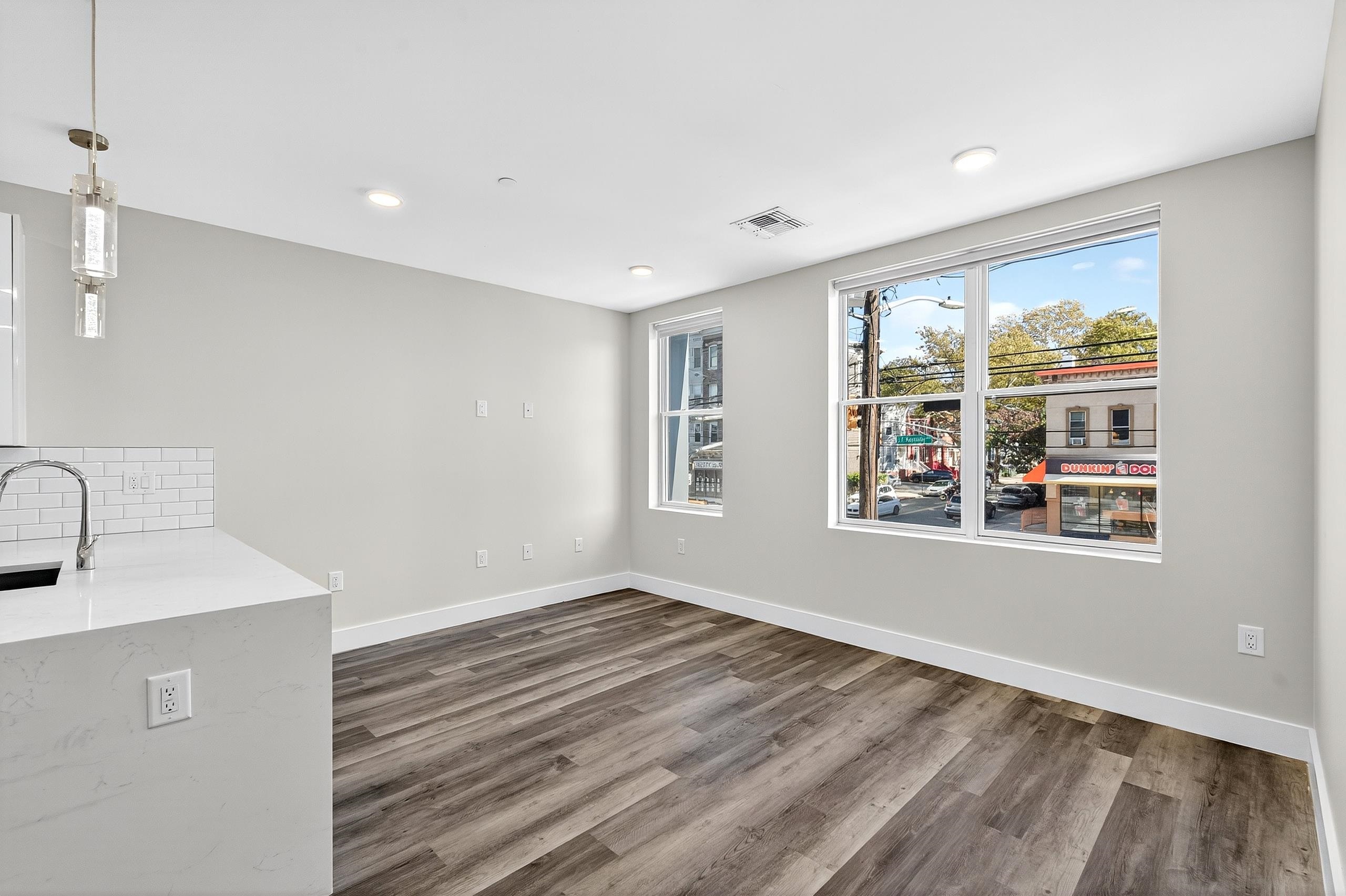 Step into the vibrant life of Hudson Heights with this stunning modern two-bedroom, one-bath apartment that perfectly balances style and convenience. Nestled in a pet-friendly, recently built community, this residence invites you to enjoy top-tier amenities without the extra cost—imagine three scenic rooftop decks, a secure entrance with an elevator, and perks like fitness center. The spacious layout boasts breathtaking views and a sleek interior featuring sleek floors, and a kitchen equipped with white quartz countertops, a chic tile backsplash, and smart fridge. With an in-unit washer and dryer, your day-to-day is made effortlessly smooth. Located just steps away from Leonard Gordon Park, bustling shops, eateries, and quick access to NYC via PATH and local bus stops, this apartment offers the perfect blend of tranquility and city pulse. Parking is available for those who need it, making this an ideal urban sanctuary ready to welcome you home.