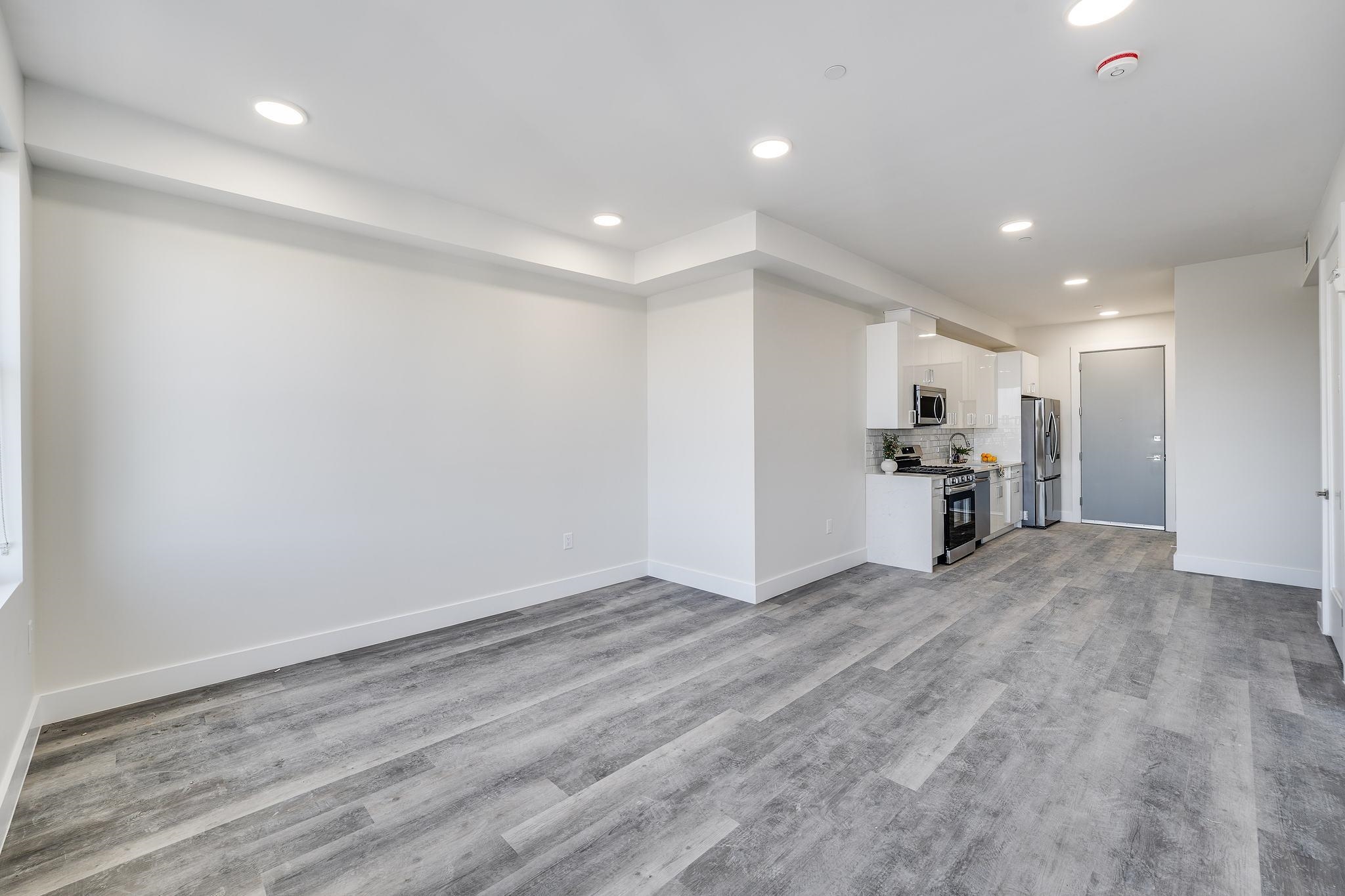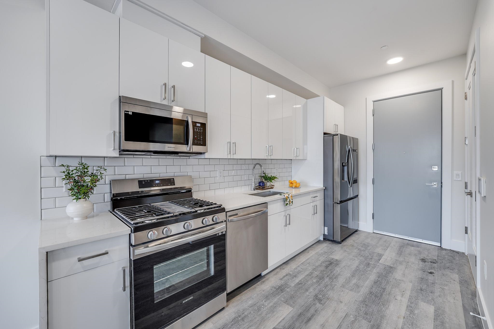 Explore Hudson Heights with a modern one bedroom, one bath apartment opportunity. This recent construction, pet-friendly building offers excellent amenities, like three common roof decks, elevator, secure entrance and eventual doorman, a package room, available parking and a coveted fitness center (coming soon), all with NO amenity fee and NO pet fees. Located in the Western Slope of The Heights, the ideal setting offers easy access to the main thoroughfare with shops and restaurants, Leonard Gordon Park, NYC transport and surrounding areas. This unique residence hosts a spacious layout with incredible views. The modern interior is finished with clean design and upgraded elements like Katella ash floors and a walk-in closet. Kitchens offer white quartz counters, tile backsplash, and Samsung stainless steel appliances. Stackable in-unit washer and dryers add to lifestyle and convenience. The location is a few blocks from the PATH and Hoboken, offering easy city access. Parking is available for an additional fee.